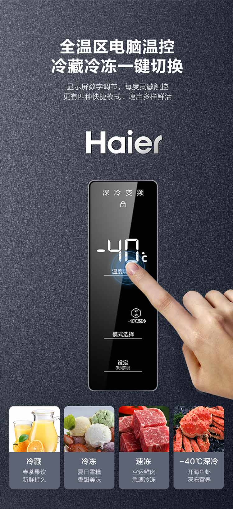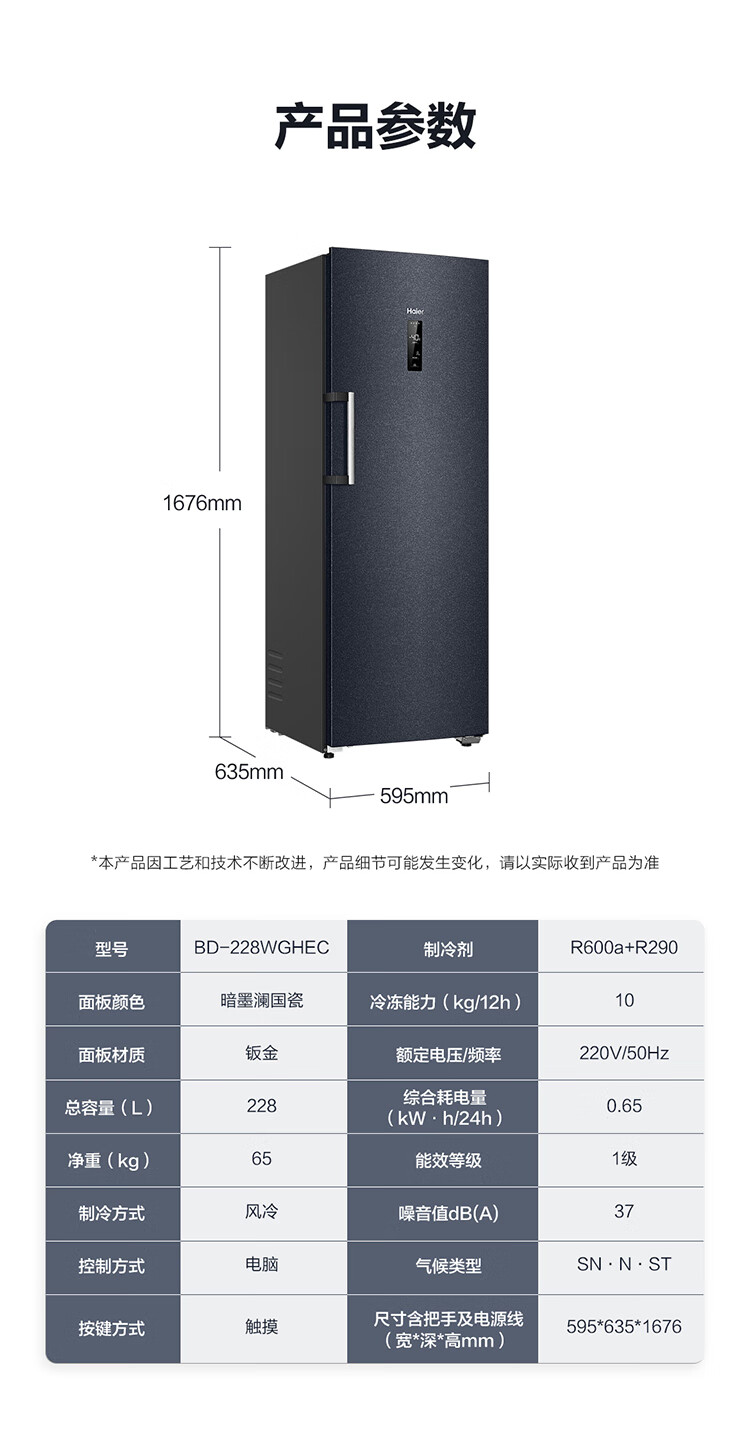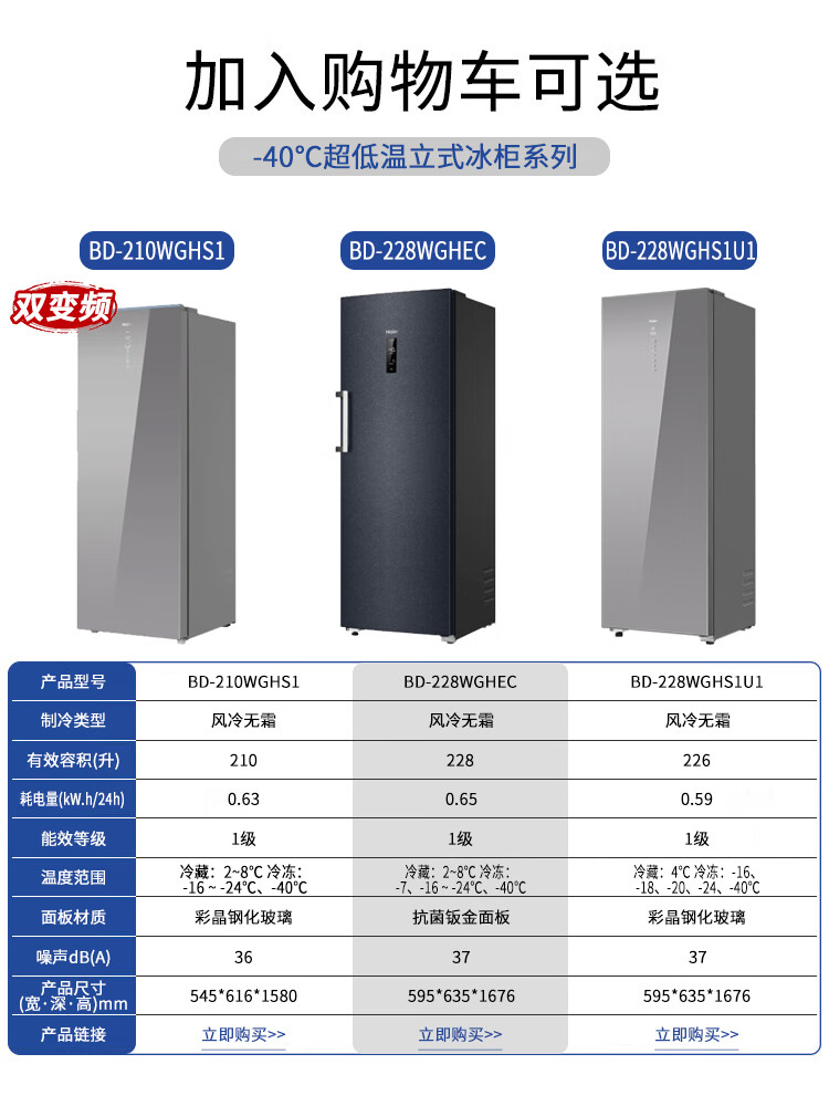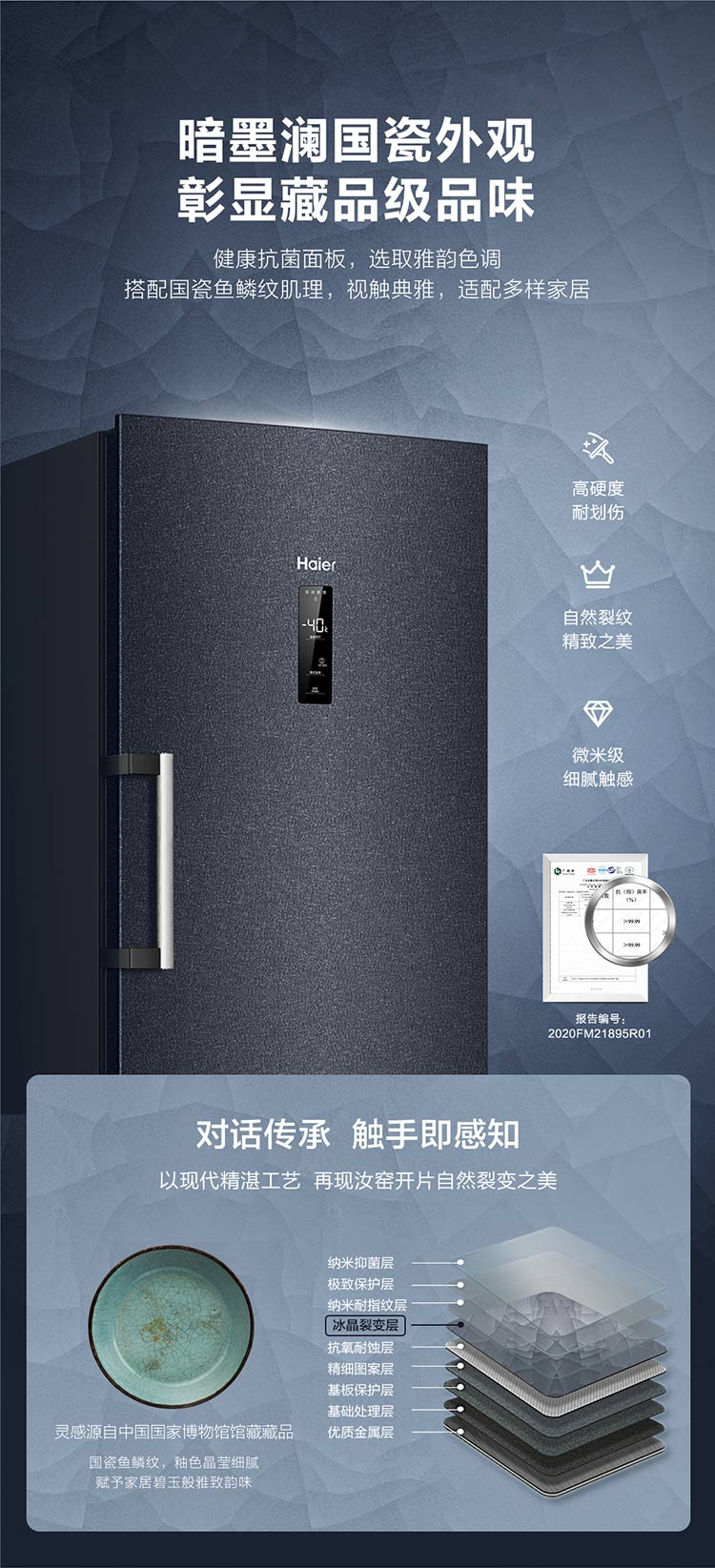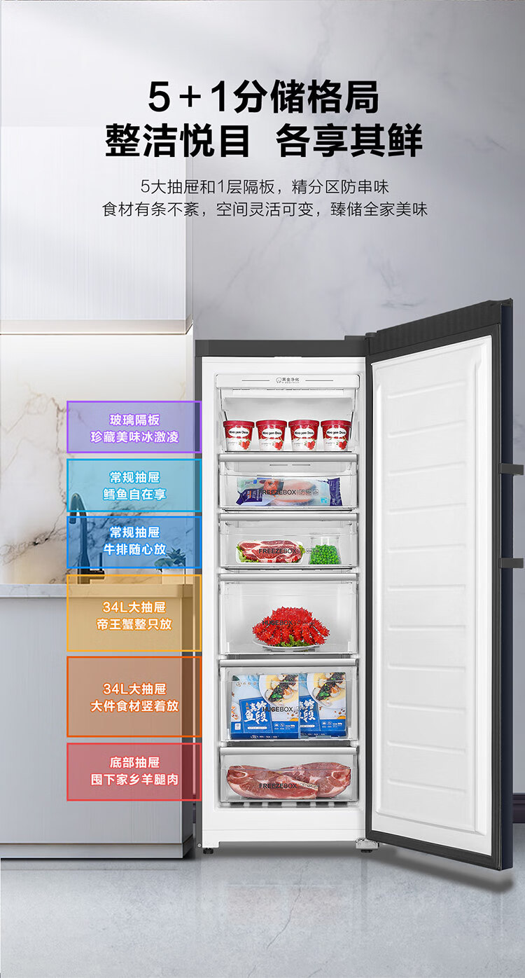 Haier 228-liter vertical freezer frost-free seafood deep-freezing quick-freezing refrigerator-40 household commercial frozen meat cabinet-40 degrees BD-228WGHS1U1 color crystal panel