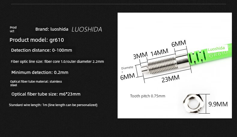 Yue Changsheng fiber optic sensor diffuse reflection switch M3M4M6 fiber amplifier line probe FRS310 PR310 GR310 M6 reflective fiber line length 1 meter GR610