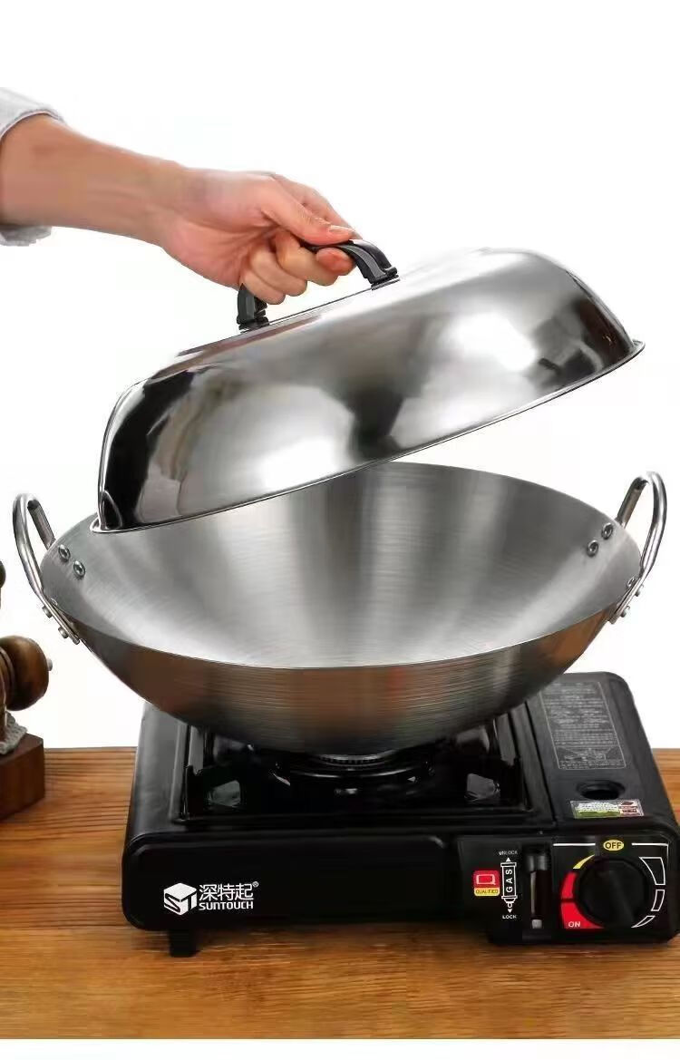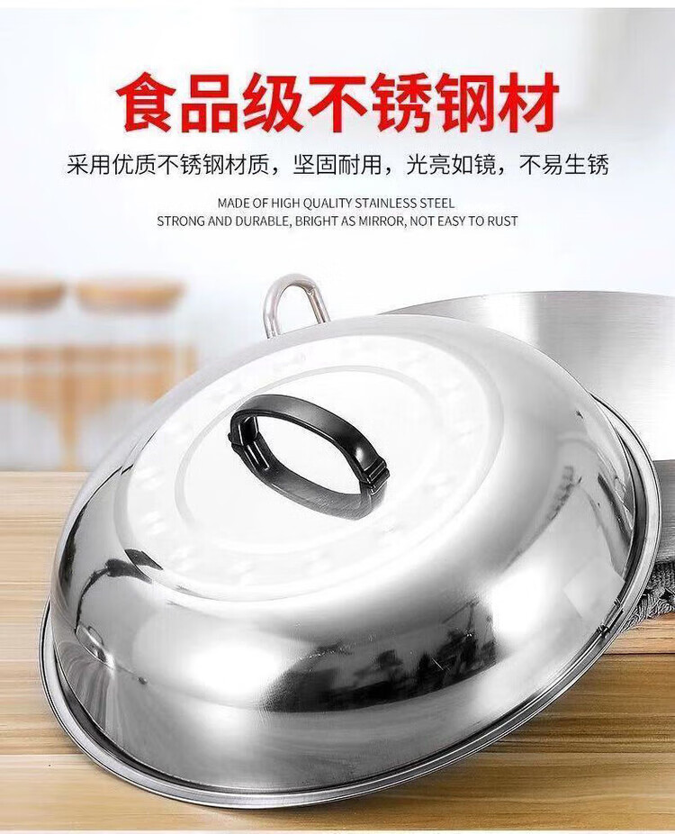 Hua Muxi thickened 304 stainless steel wok lid and heightened arched old-fashioned round lid wok lid iron pot lid stir-frying tripod lid 45cm thickened high lid