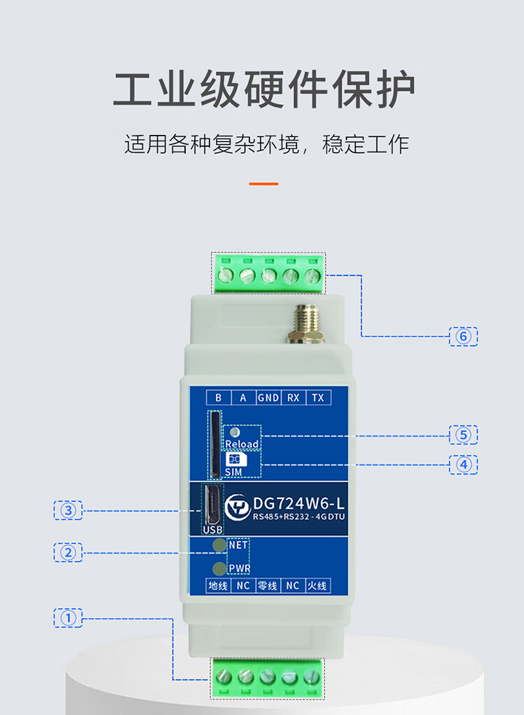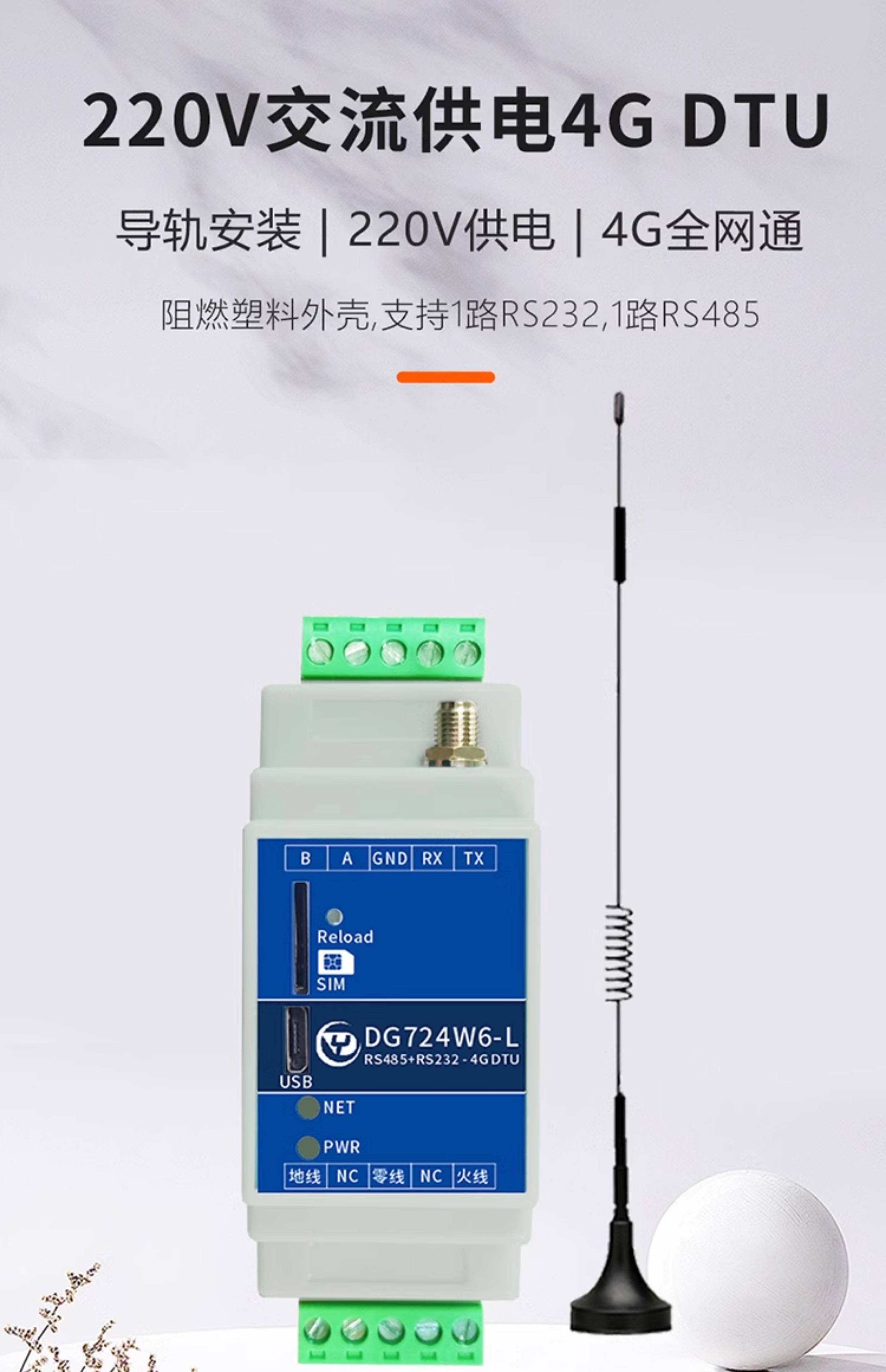 Yue Changsheng 220V AC rail-type 4G DTU module 232/485 data transparent transmission distribution box networking full network communication DG724W6_L-Package A free traffic 30M/month/year