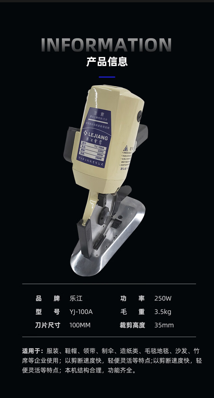 GCCW authentic Lejiang YJ100A round knife electric scissors hand push electric round knife cutting machine small cloth cutting machine Lejiang 1 100A