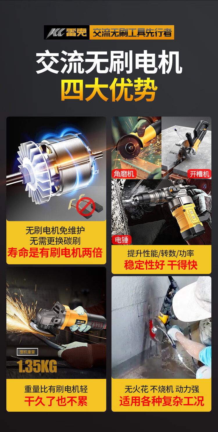 Lake brushless angle grinder 220V cutting machine household hand polishing machine polishing machine grinding machine hand grinding wheel brushless motor 830W side switch official standard