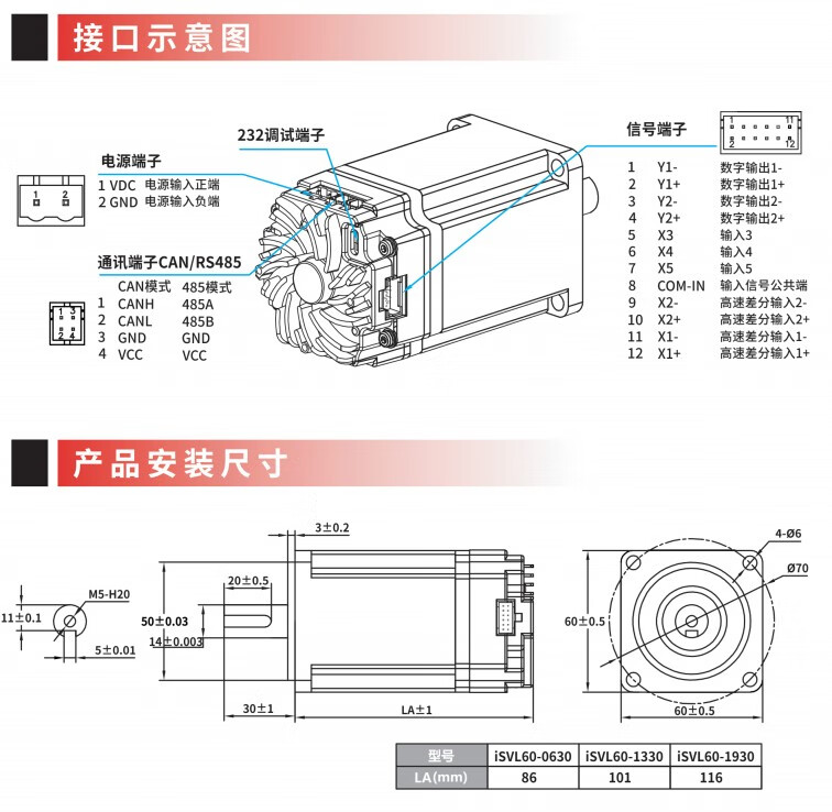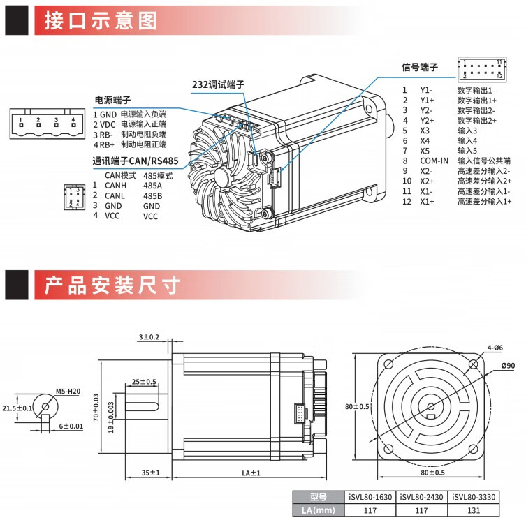 Yue Changsheng era superior 24V48V low voltage DC servo motor All pulse 485/CAN communication built-in driver debugging board pulse + CAN