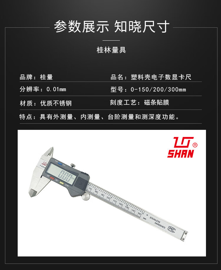 Yue Changsheng Guilin Measuring Tools Electronic Digital Caliper 0-150/200/300mm Plastic Shell High Precision 0.01 Vernier Caliper 0-200mm