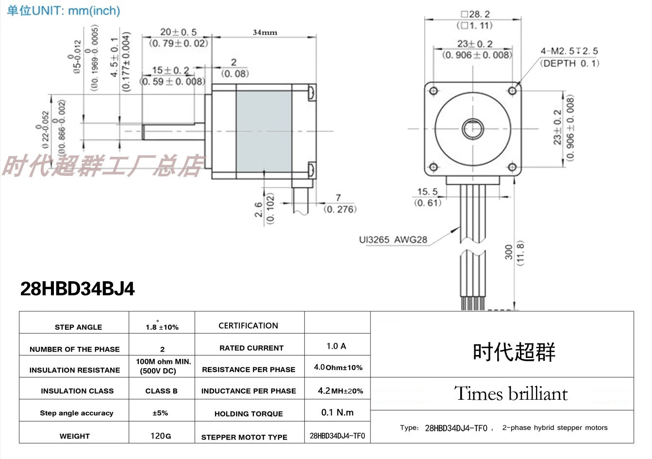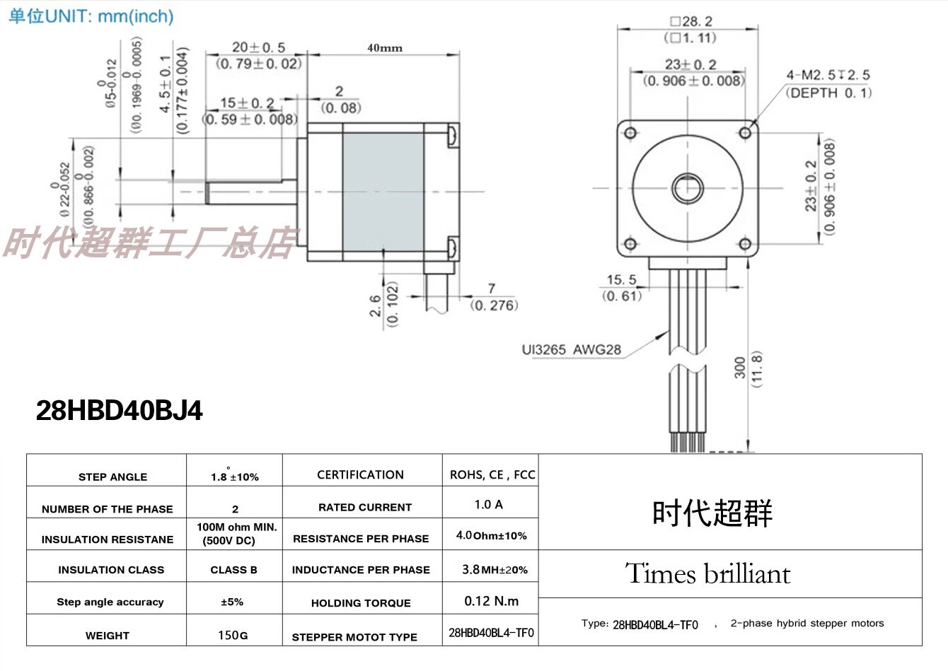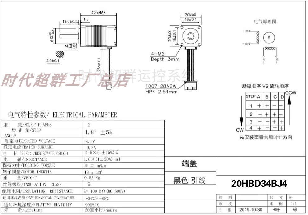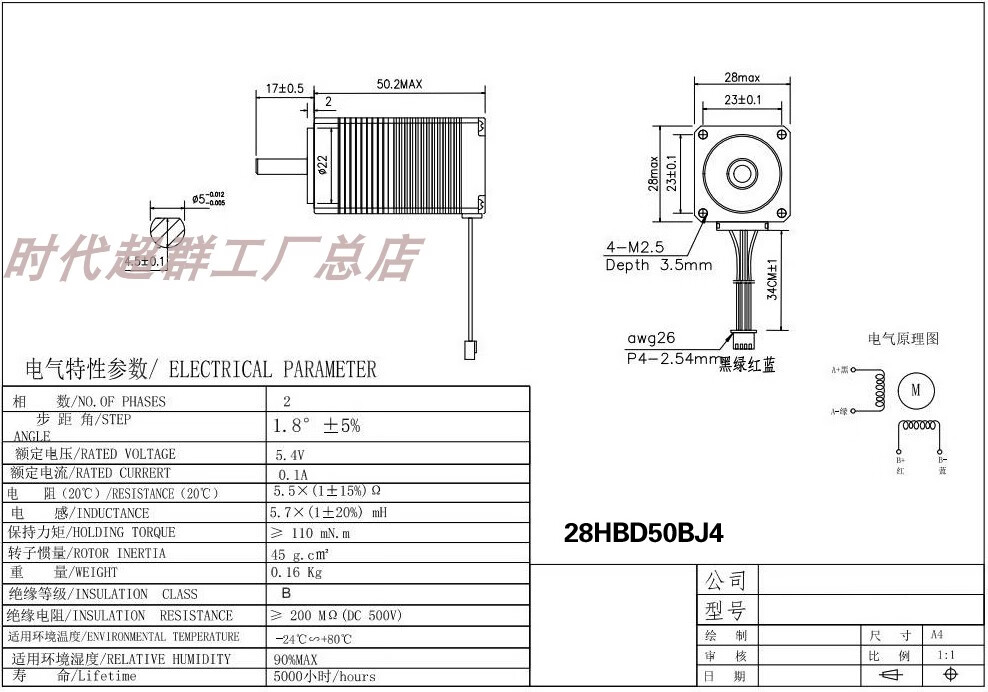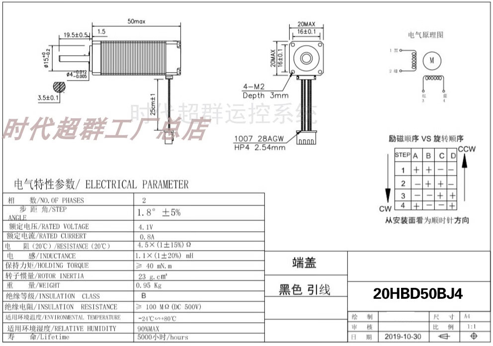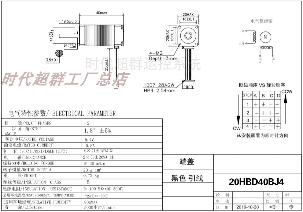Yue Changsheng two-phase four-wire 28/20BYG micro stepper motor 1.8 degree small motor body length 24/34/40/50MM 20 flange body length 4030mN.M