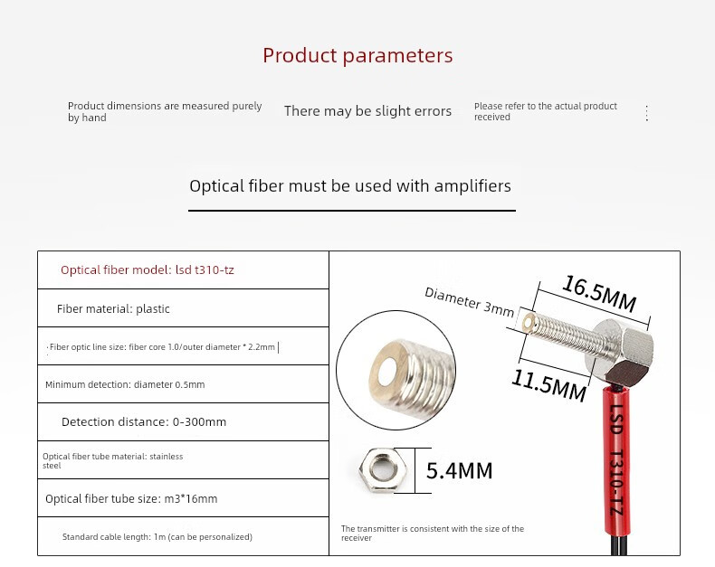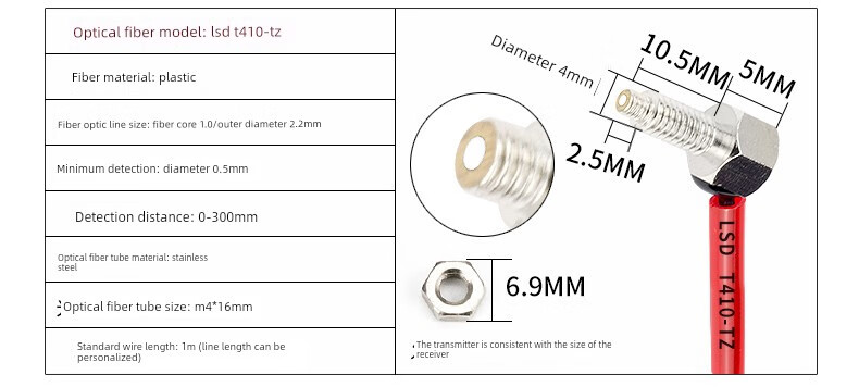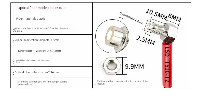 Yuechangsheng fiber optic sensor fiber amplifier through-beam probe T310-TZ/ T410-TZ/ T610-TZ manufacturer T610-TZM6 through-beam elbow line length 1 meter
