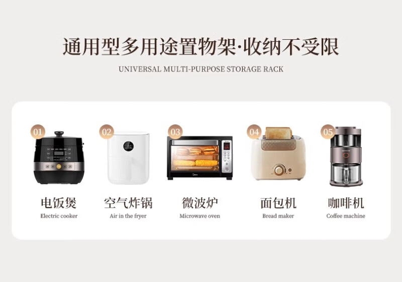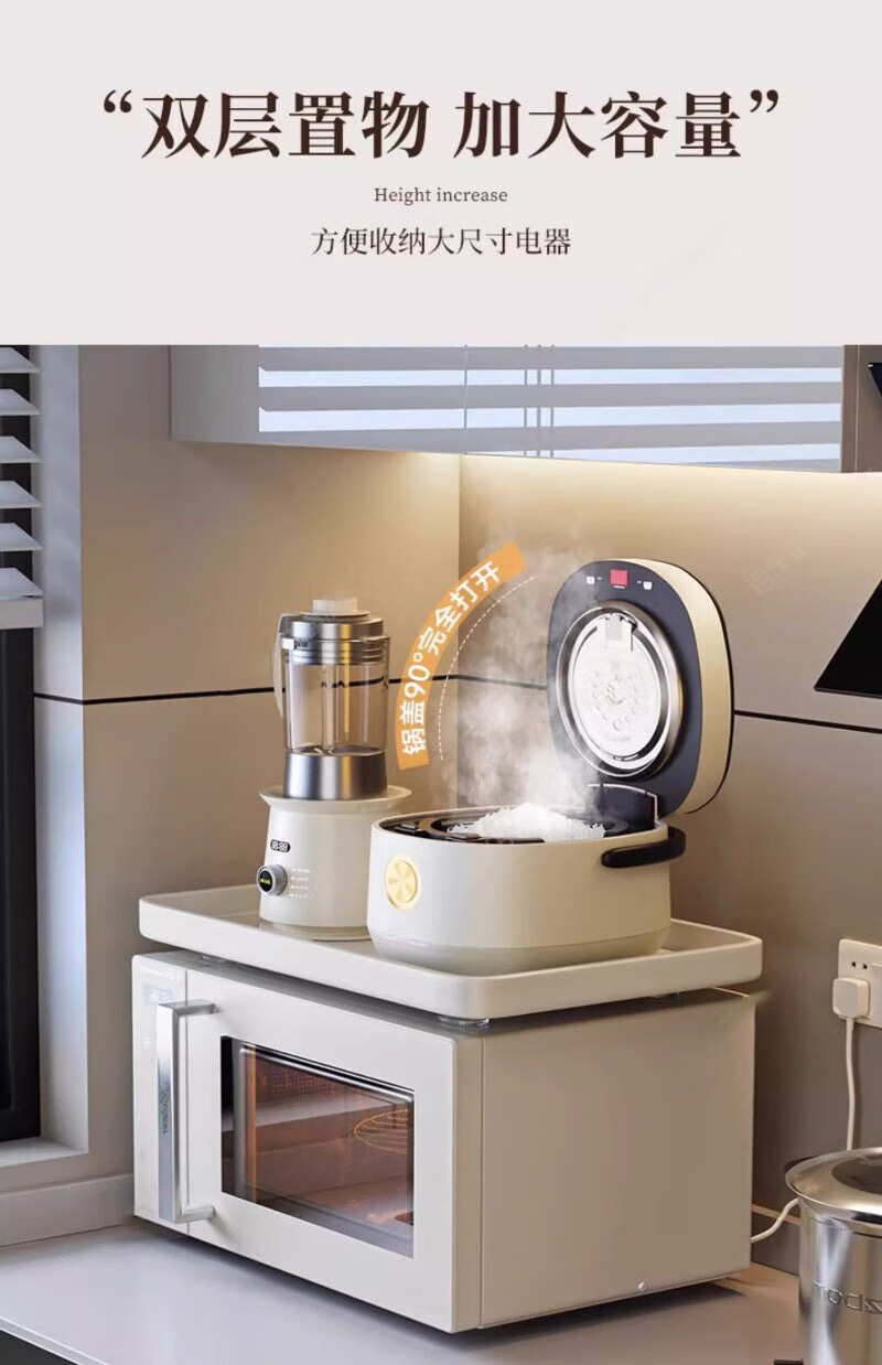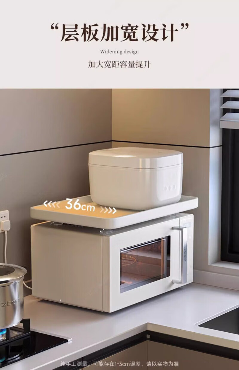 In addition to the kitchen, microwave oven layered board storage rack kitchen countertop seasoning storage multi-functional household rice cooker oven rack 45cm milk white free 4 suction cups