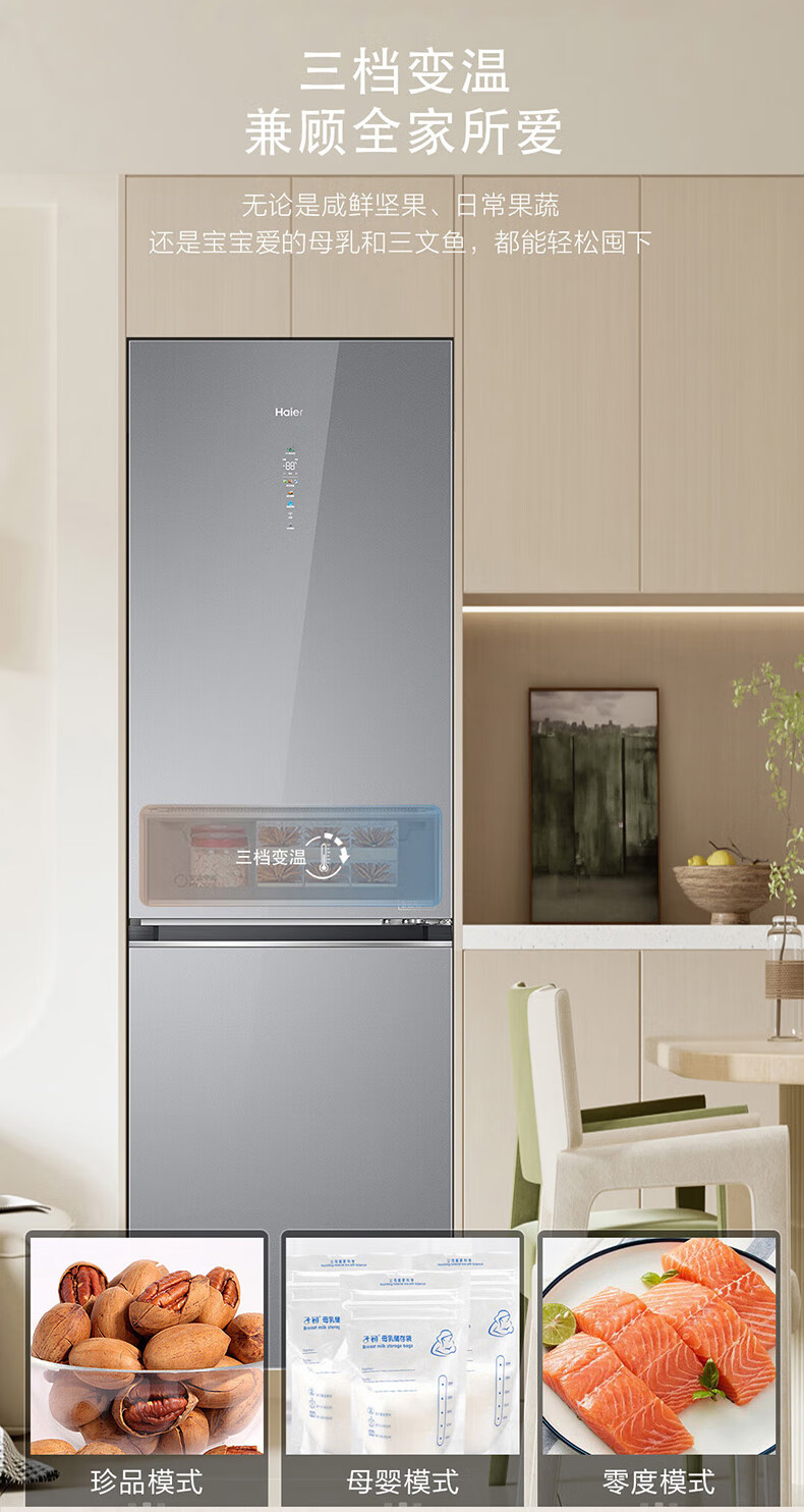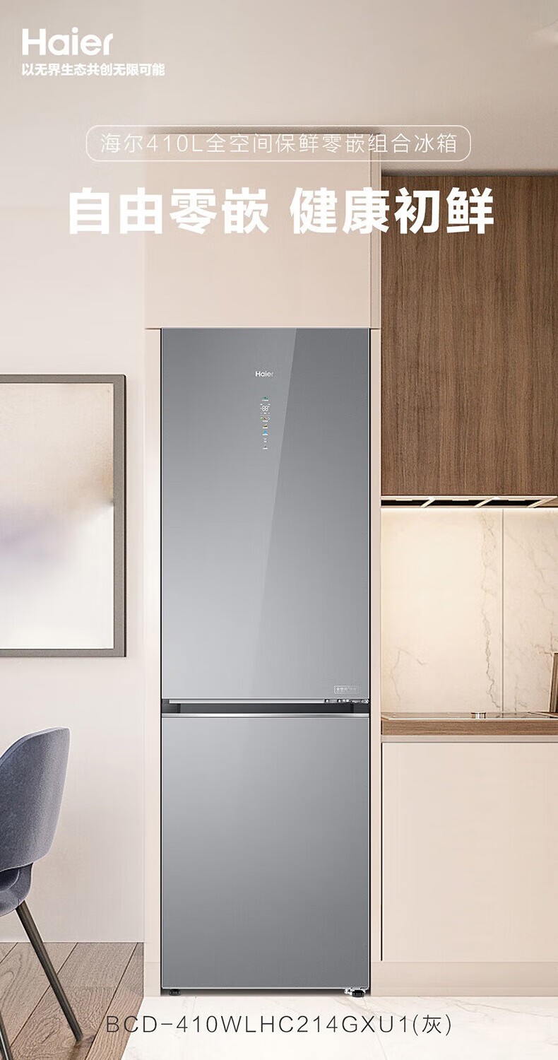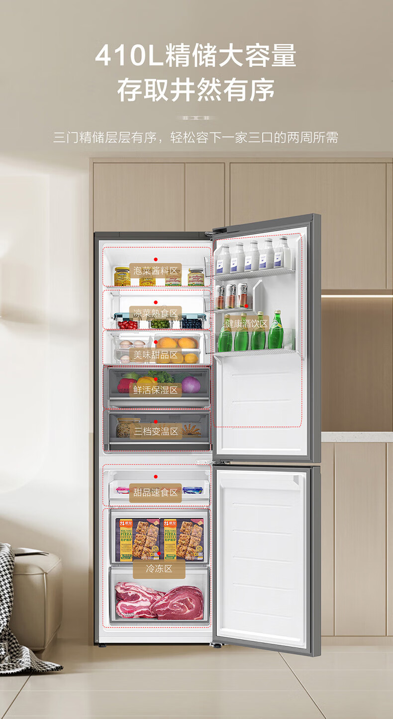 Haier large double-door full-space fresh-keeping refrigerator 410L large-capacity air-cooled double-door two-door refrigerator technology EPP ultra-clean system three-speed variable temperature 410-liter refrigerator