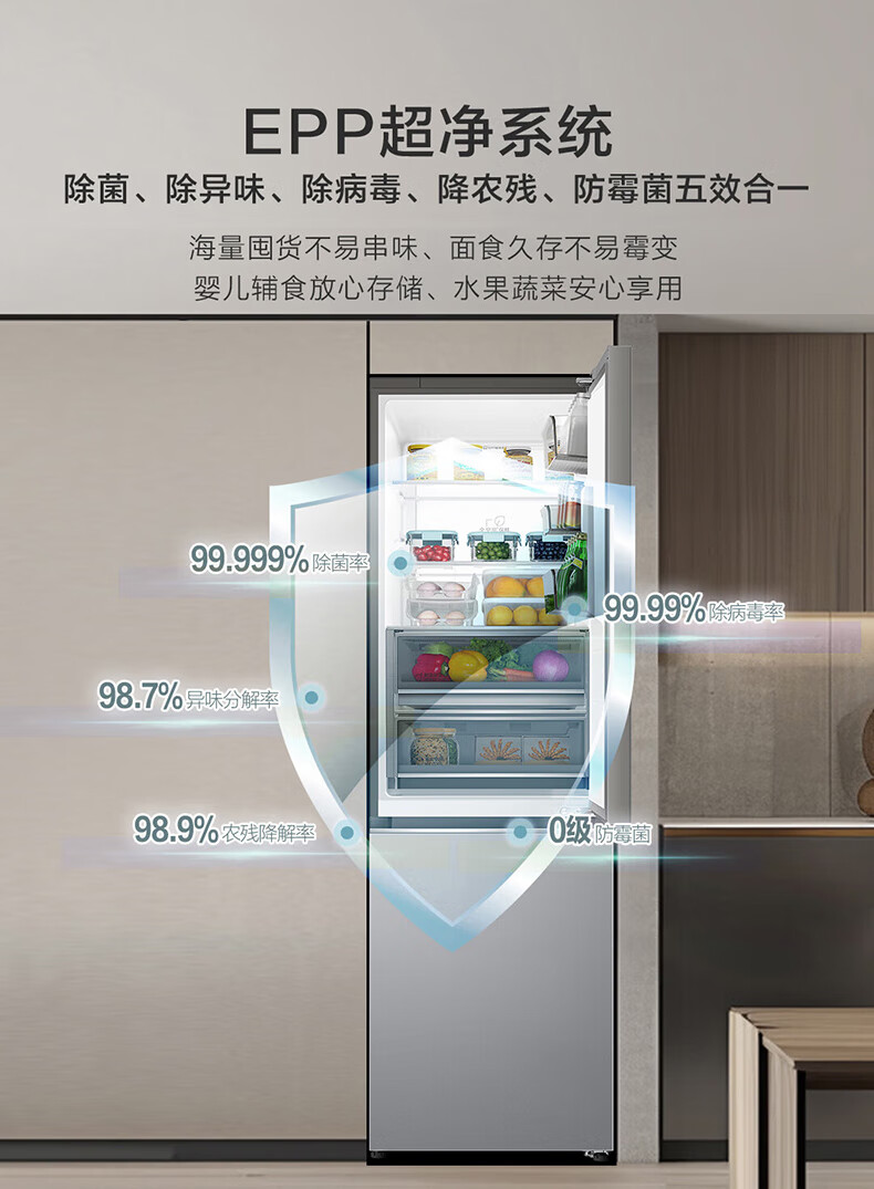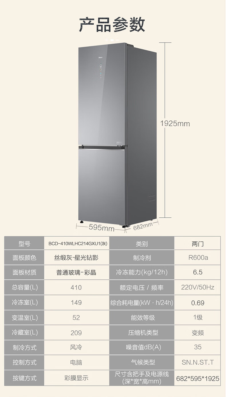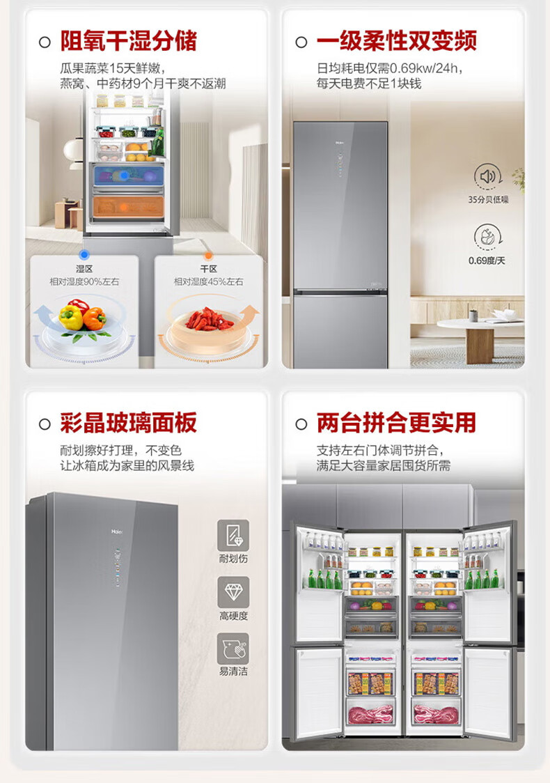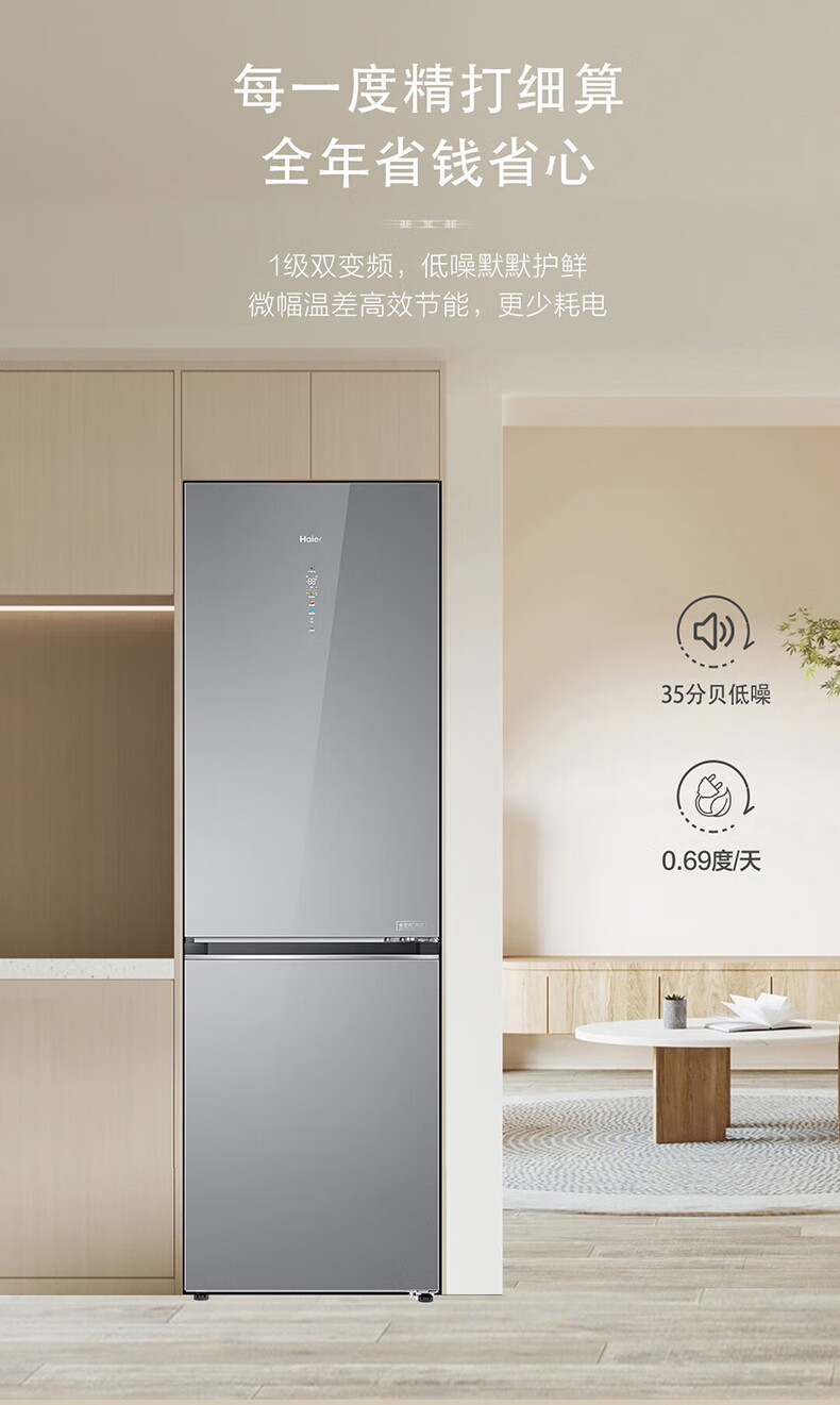 Haier large double-door full-space fresh-keeping refrigerator 410L large-capacity air-cooled double-door two-door refrigerator technology EPP ultra-clean system three-speed variable temperature 410-liter refrigerator