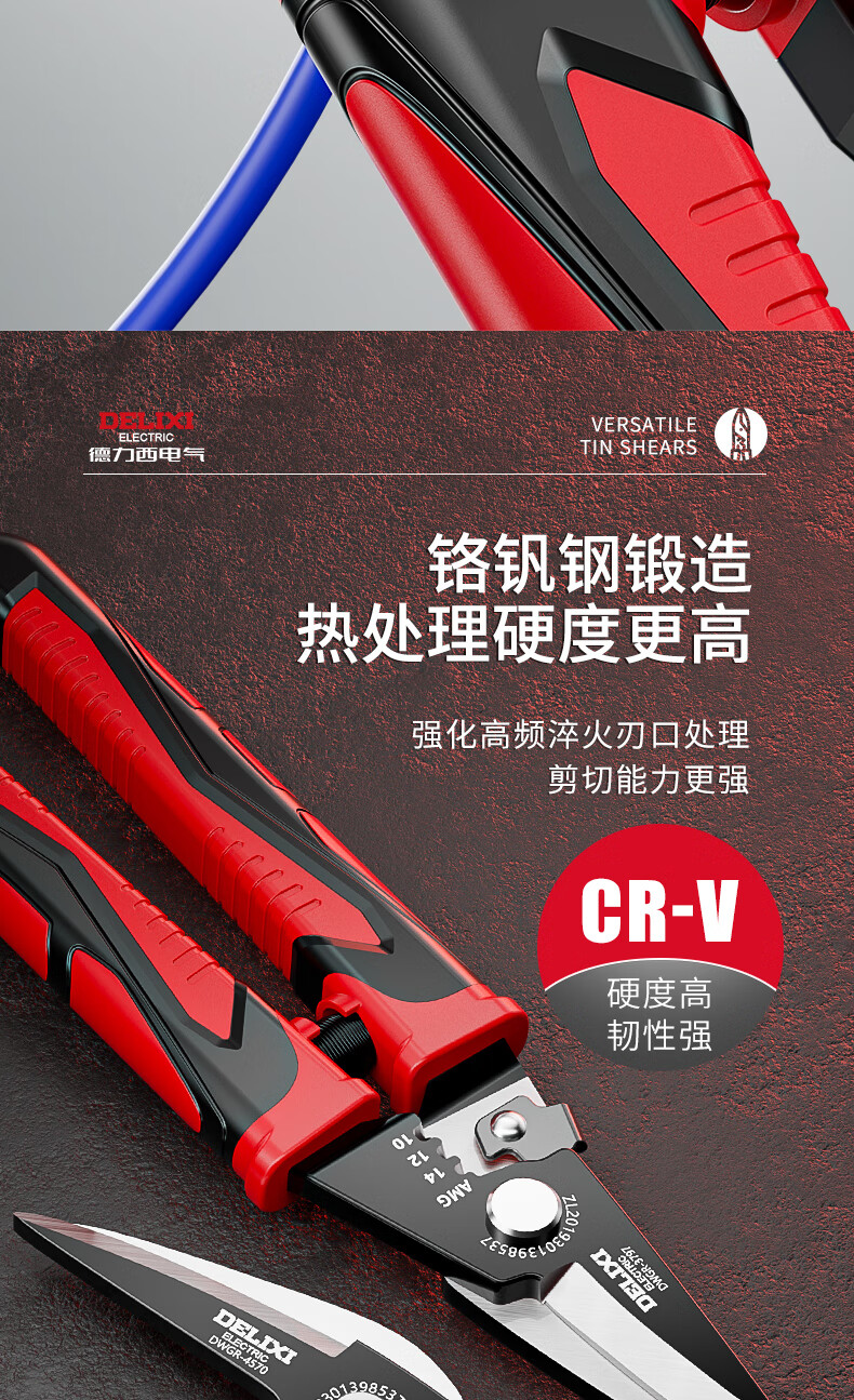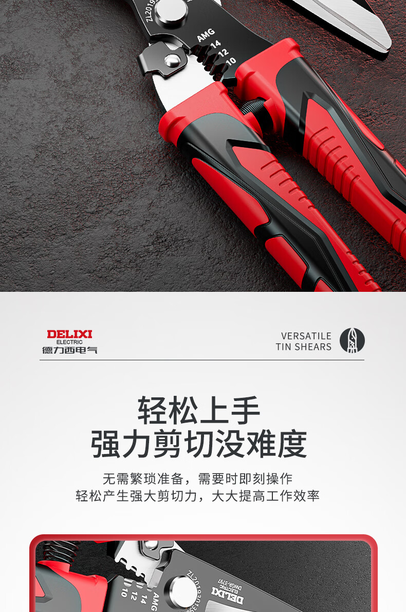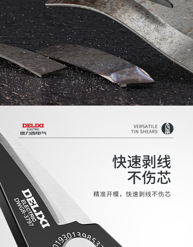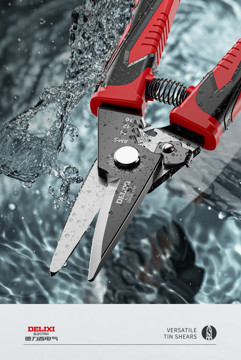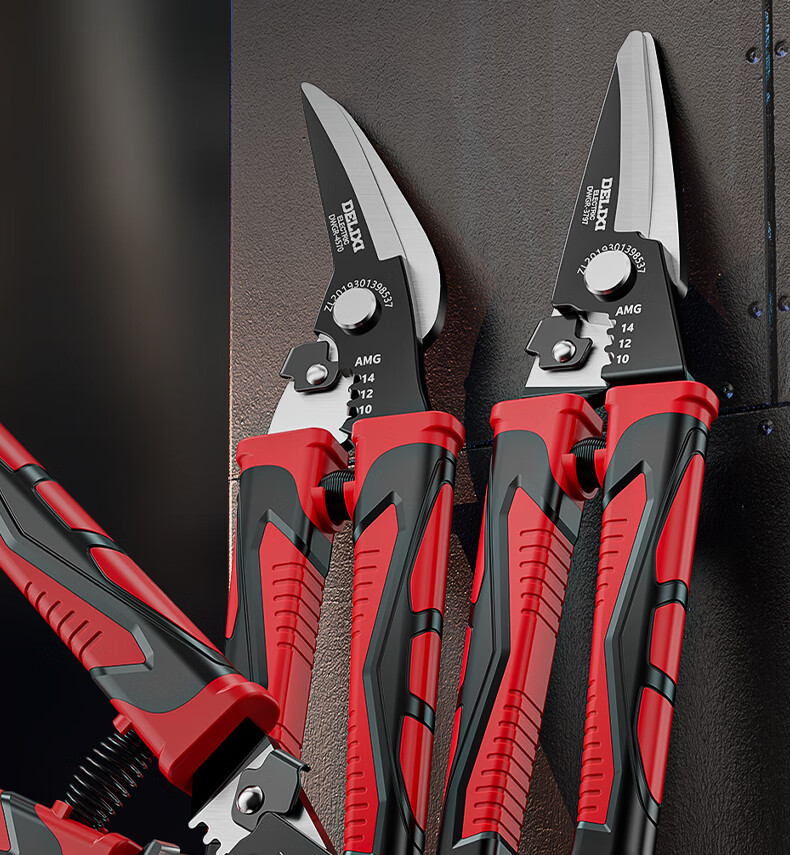 Delixi iron sheet scissors, wire trough shears, stainless steel aviation scissors, keel iron wire, color steel, multi-functional wire stripping and crimping pliers, wire stripping elbow iron sheet scissors (pack of 2)