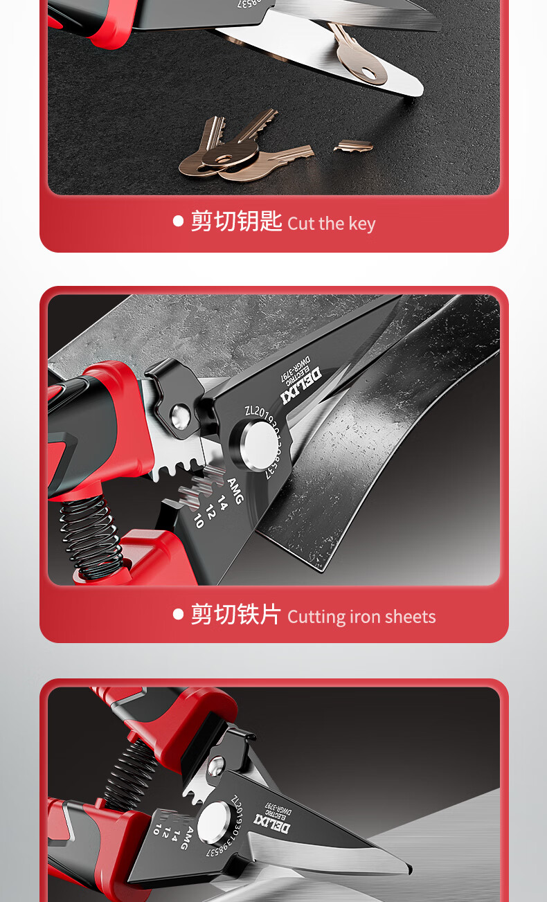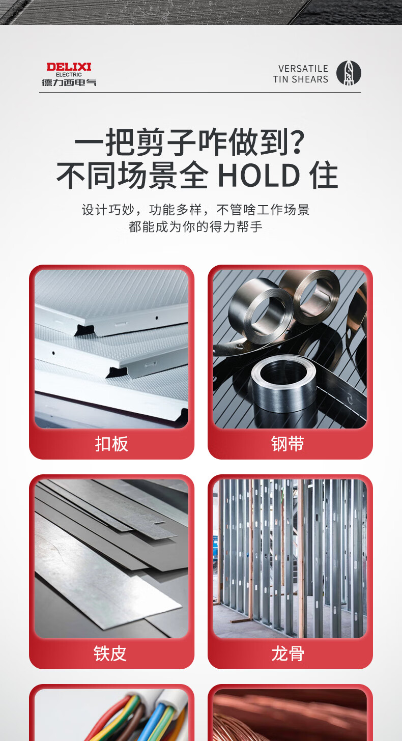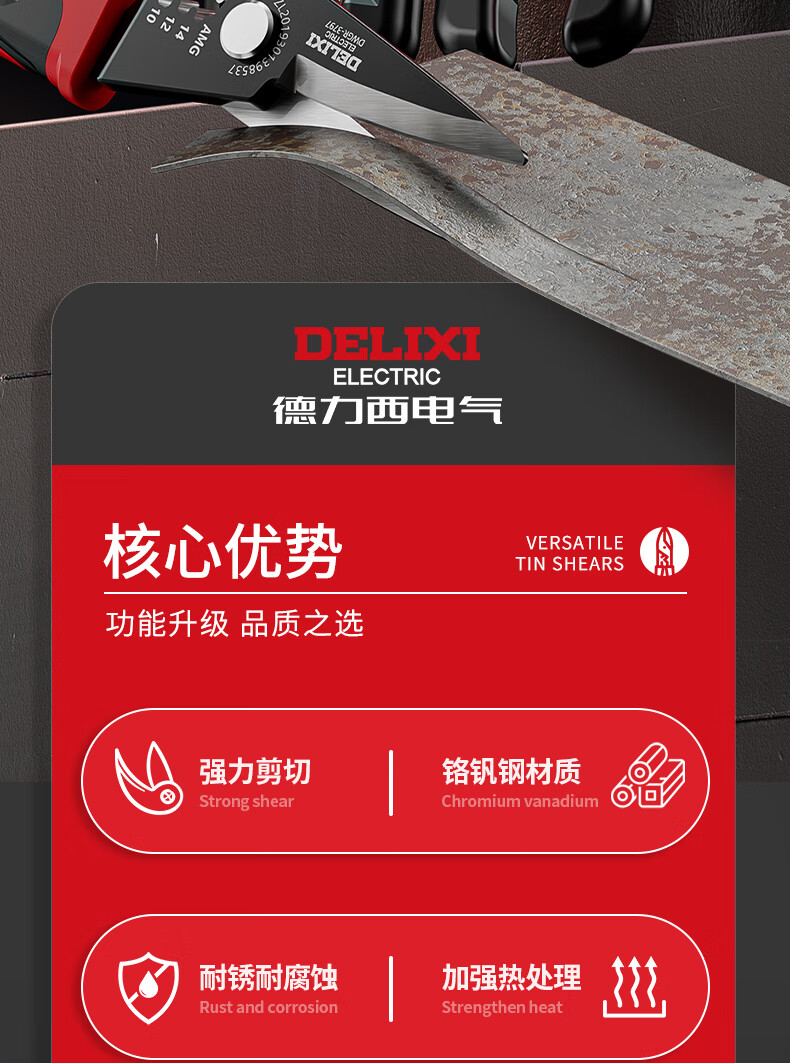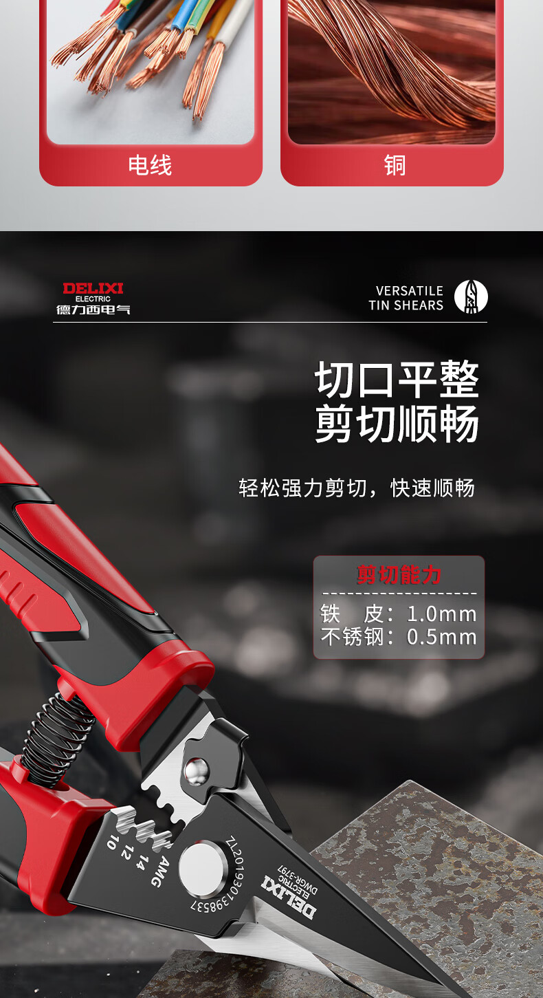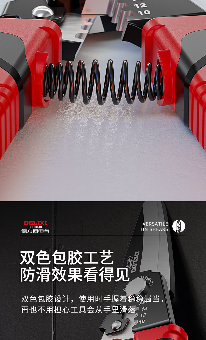 Delixi iron sheet scissors, wire trough shears, stainless steel aviation scissors, keel iron wire, color steel, multi-functional wire stripping and crimping pliers, wire stripping elbow iron sheet scissors (pack of 2)
