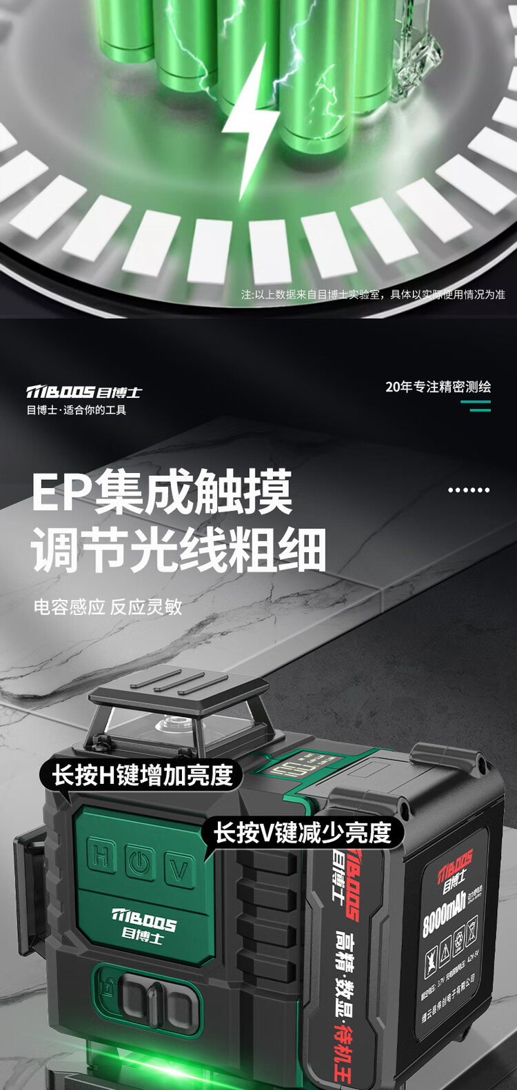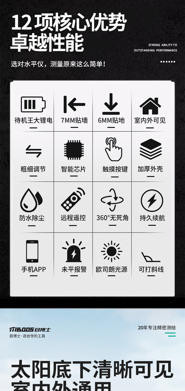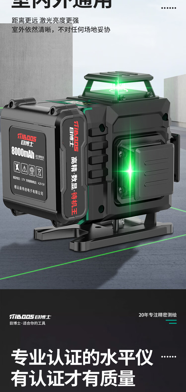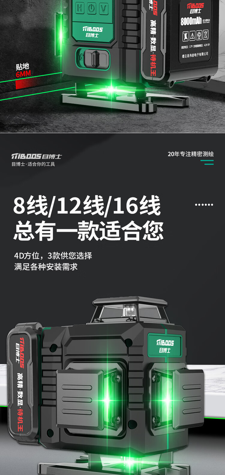 Dr. Eye Laser Level High-precision High-Light Thin Line 12-Line Outdoor Special Automatic Line Leveling Leveler High-definition Digital Display German Ultra-Bright Green Light 16-Line + Standby