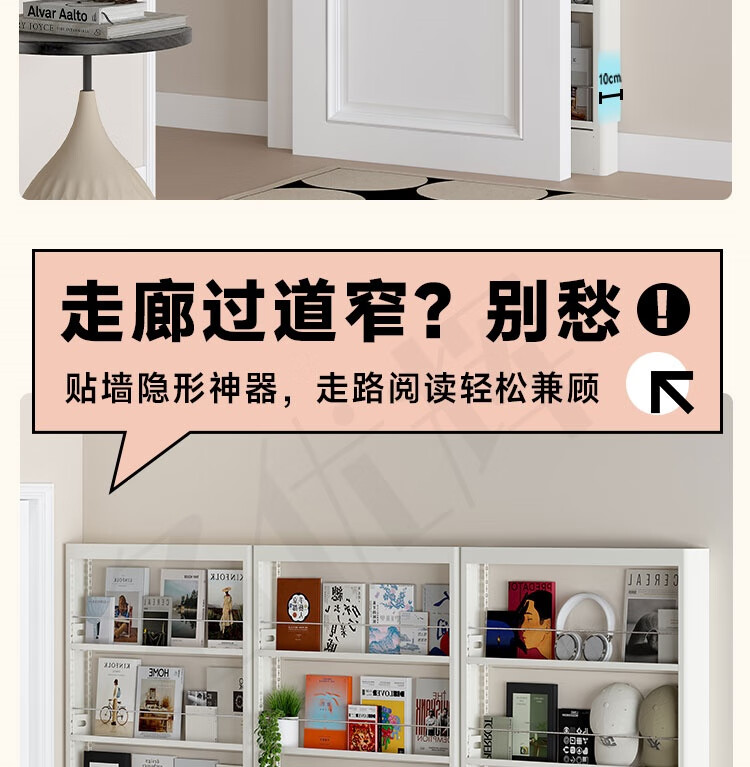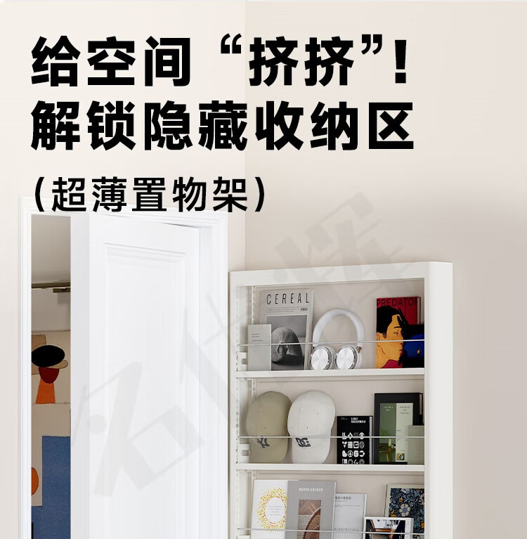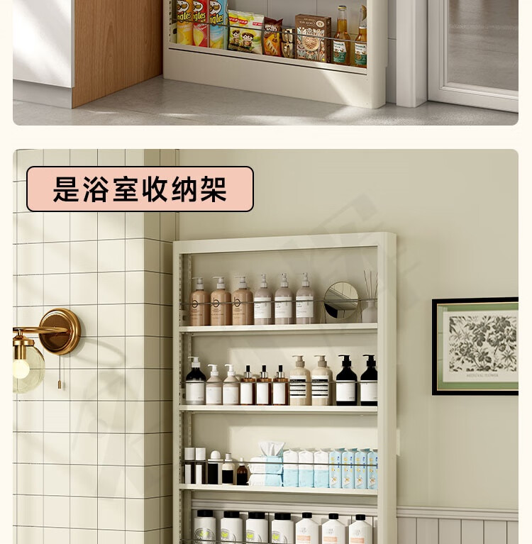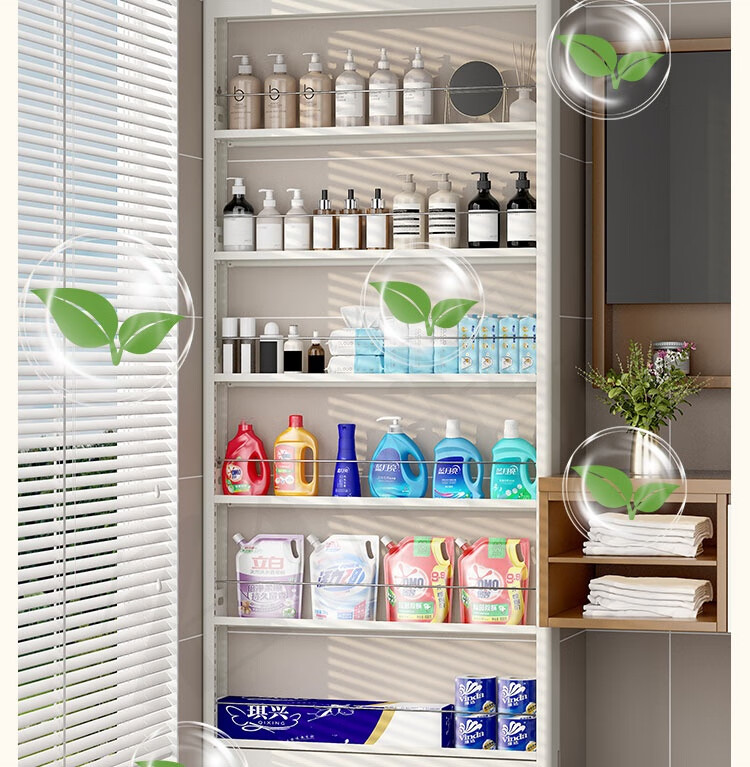 Mingyouhui bathroom door rear storage rack floor-standing bathroom ultra-thin storage rack sandwich storage rack bedroom ultra-narrow picture book shelf five layers length 50*width 10*height 180 door narrow style