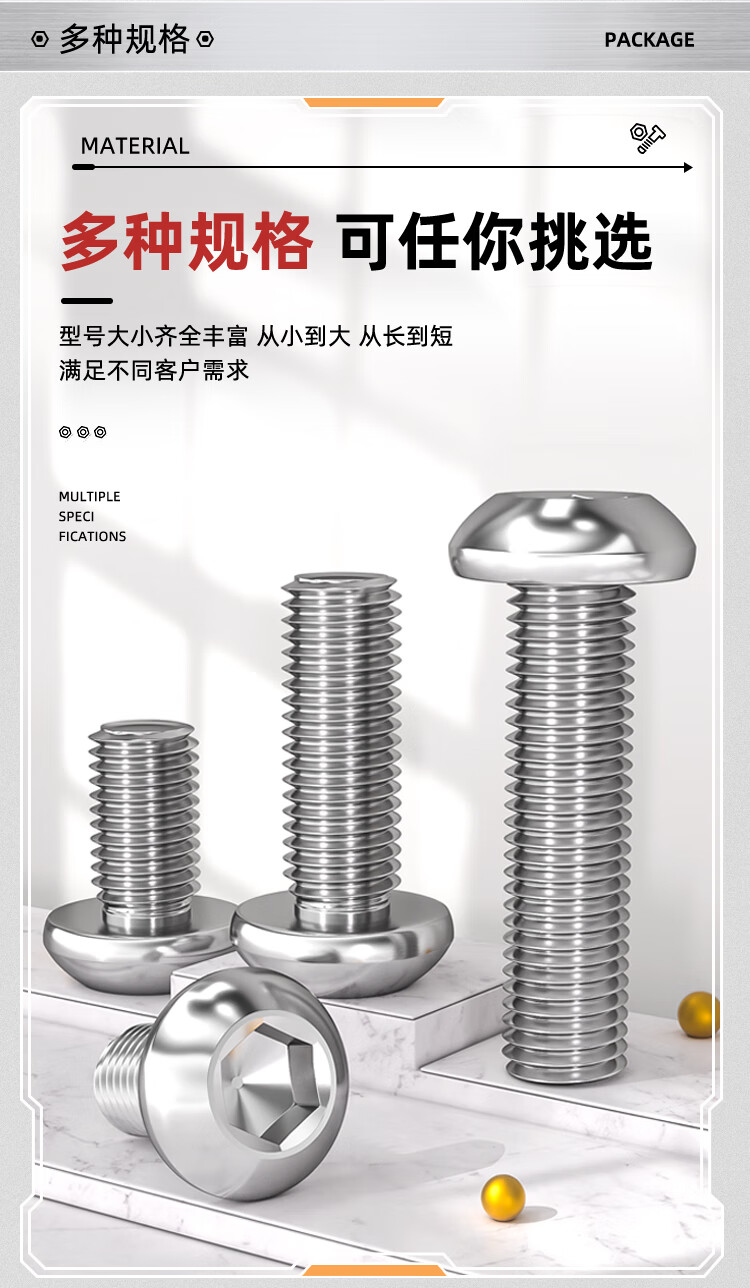 Tianzhuo Hardware 316 stainless steel round head pan head hexagonal screw half round cup screw mushroom bolt 3M4M5M6M8M10M12 M8*14-5 pcs