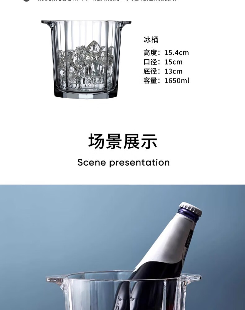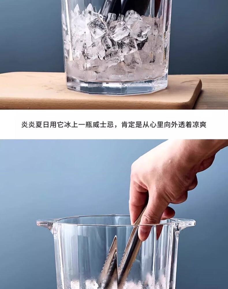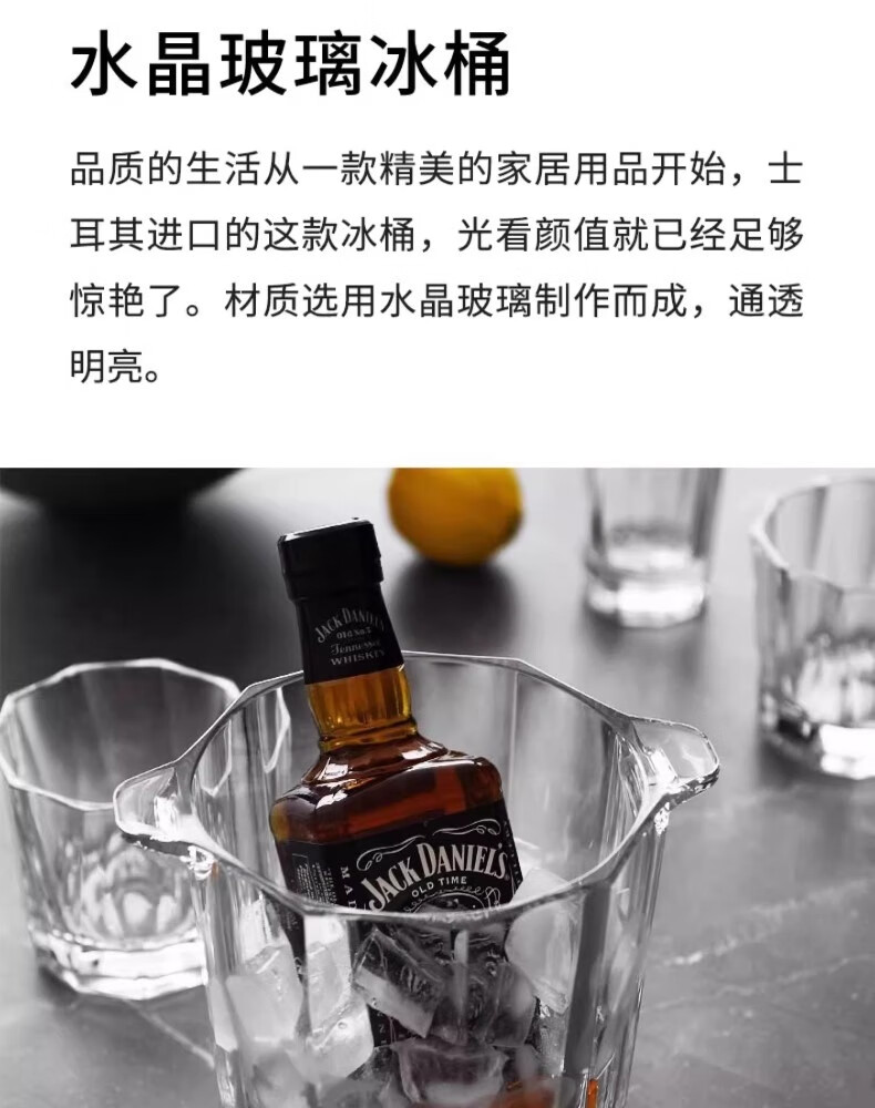 NUDE Turkey imported nude glass ice bucket champagne beer wine barrel refrigeration cooling household ice bucket ice bucket 1650ml single free ice clip
