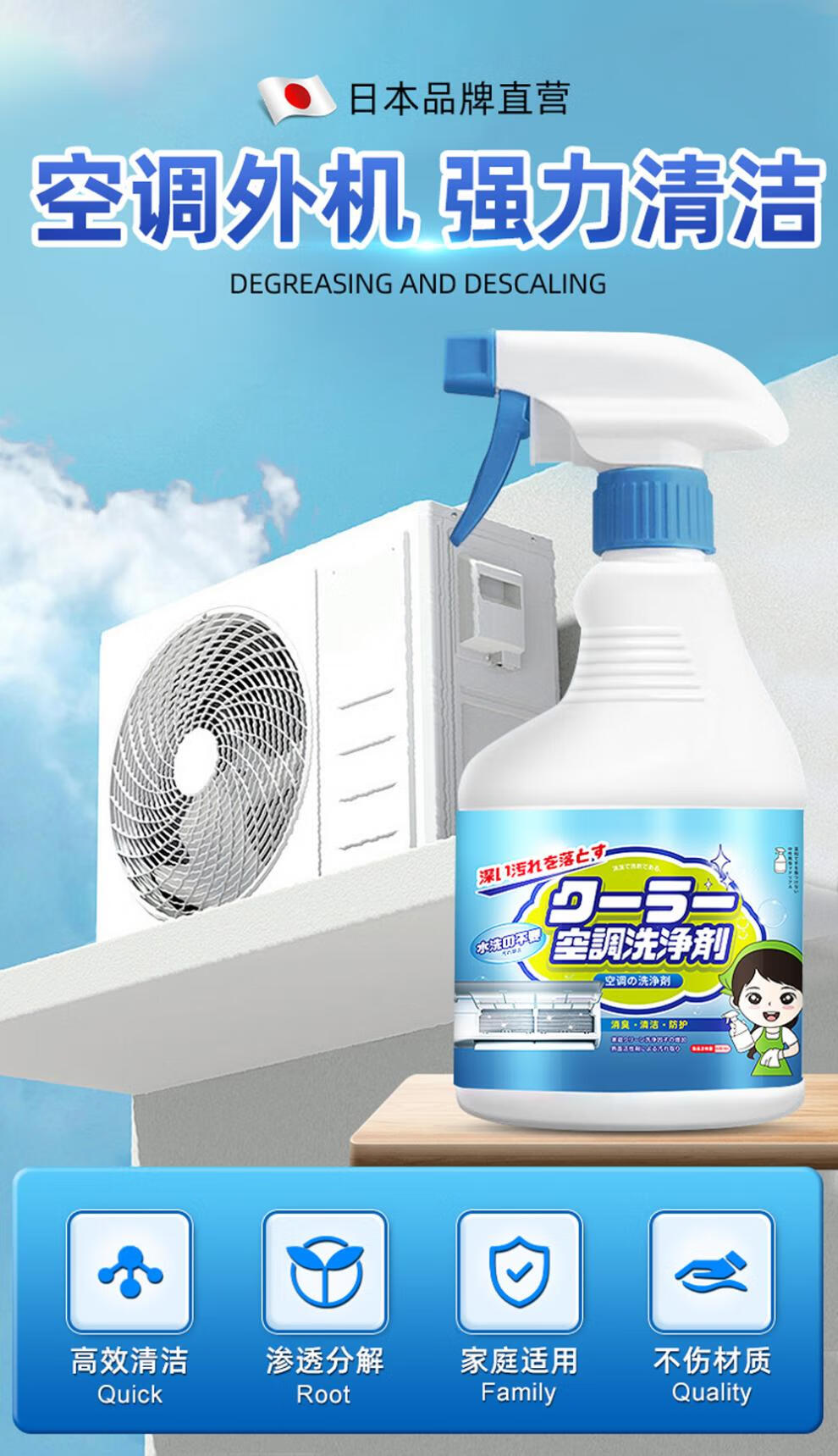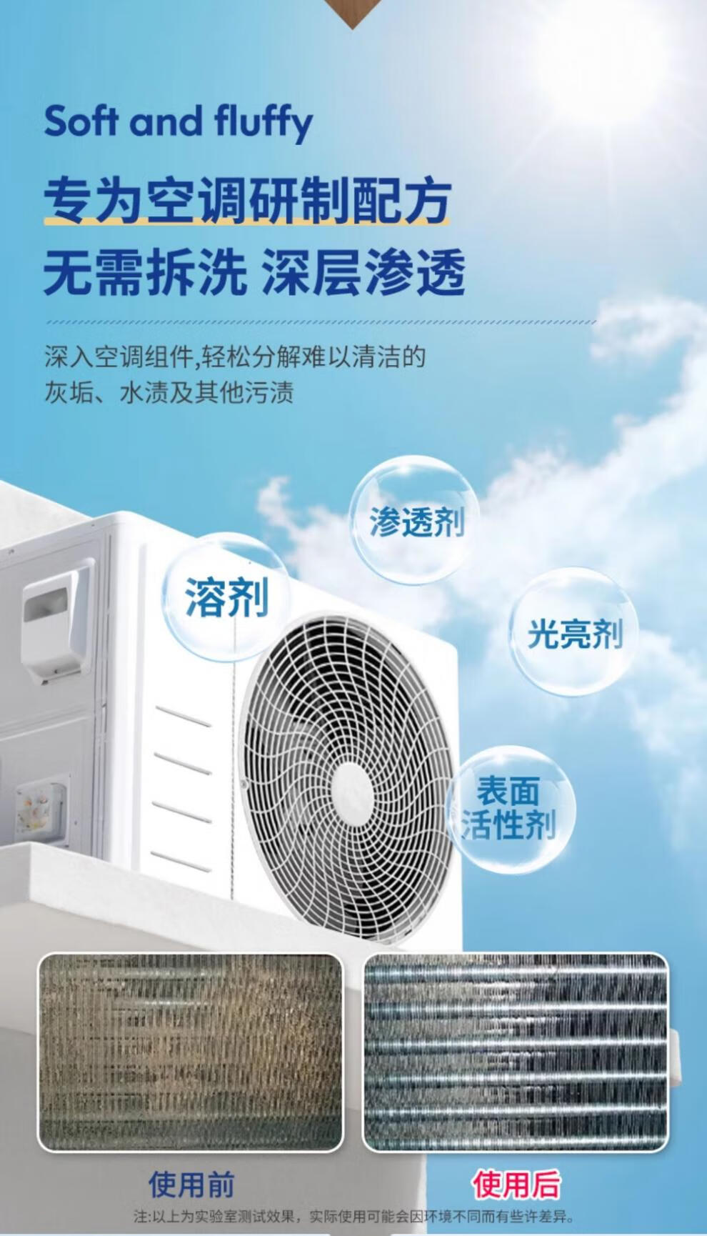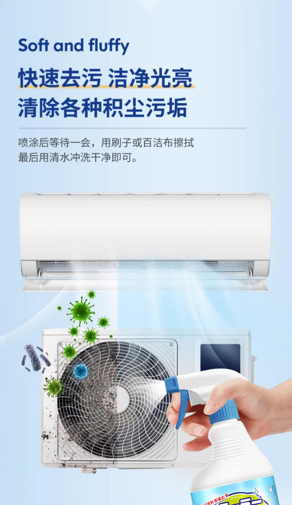 Cleaning agent for air conditioner outdoor unit powerful decontamination outdoor central air conditioner hanger radiator fin dust cleaner 1000ml
