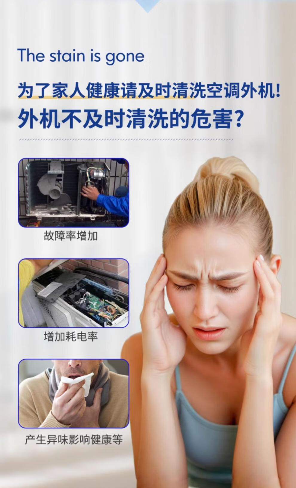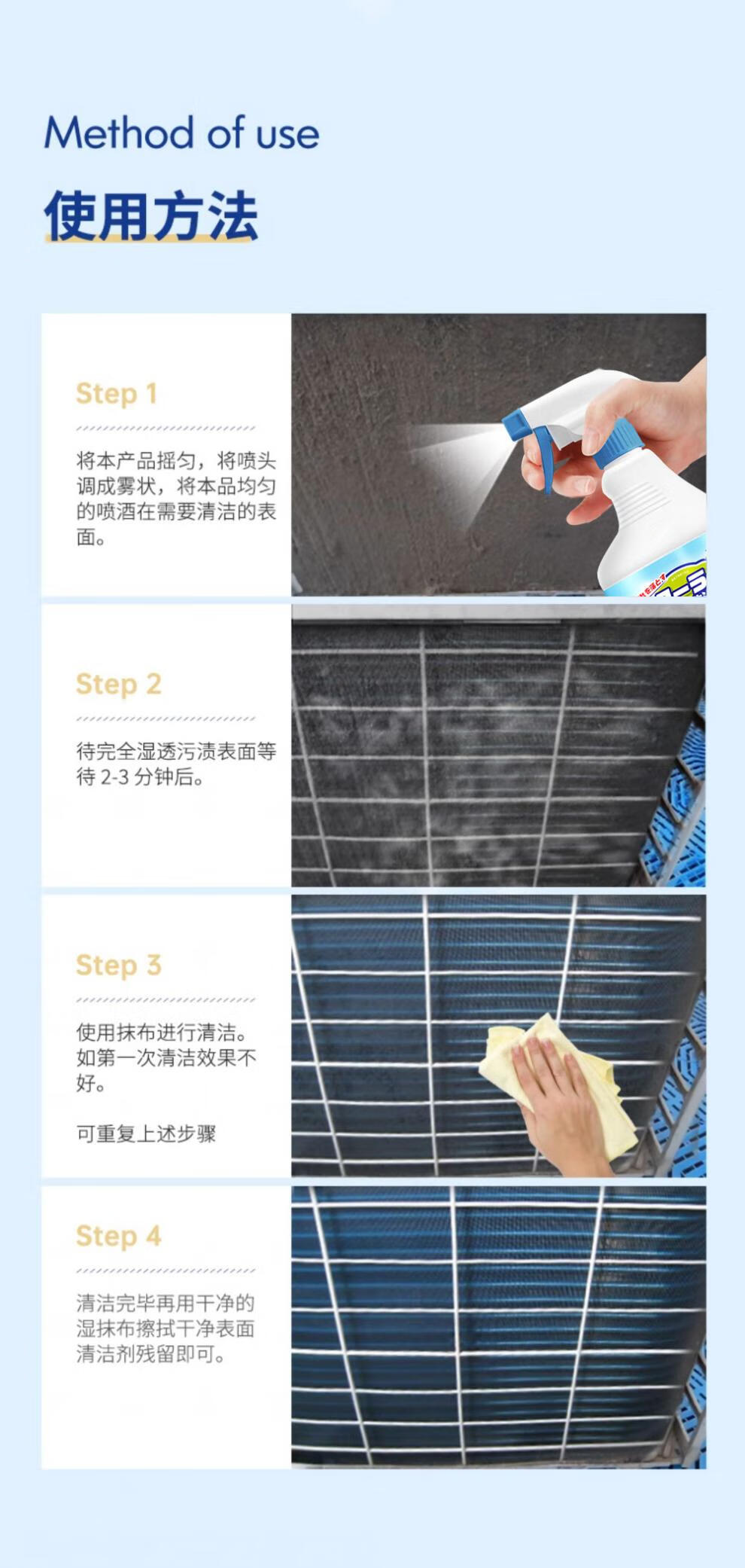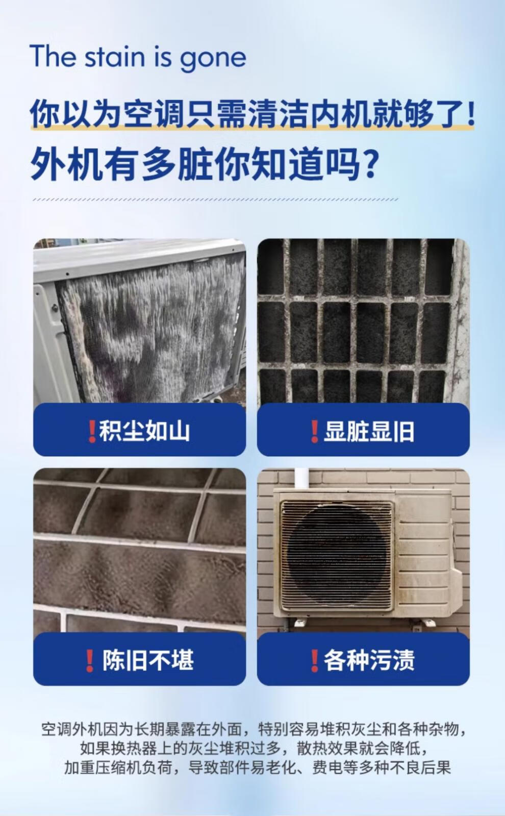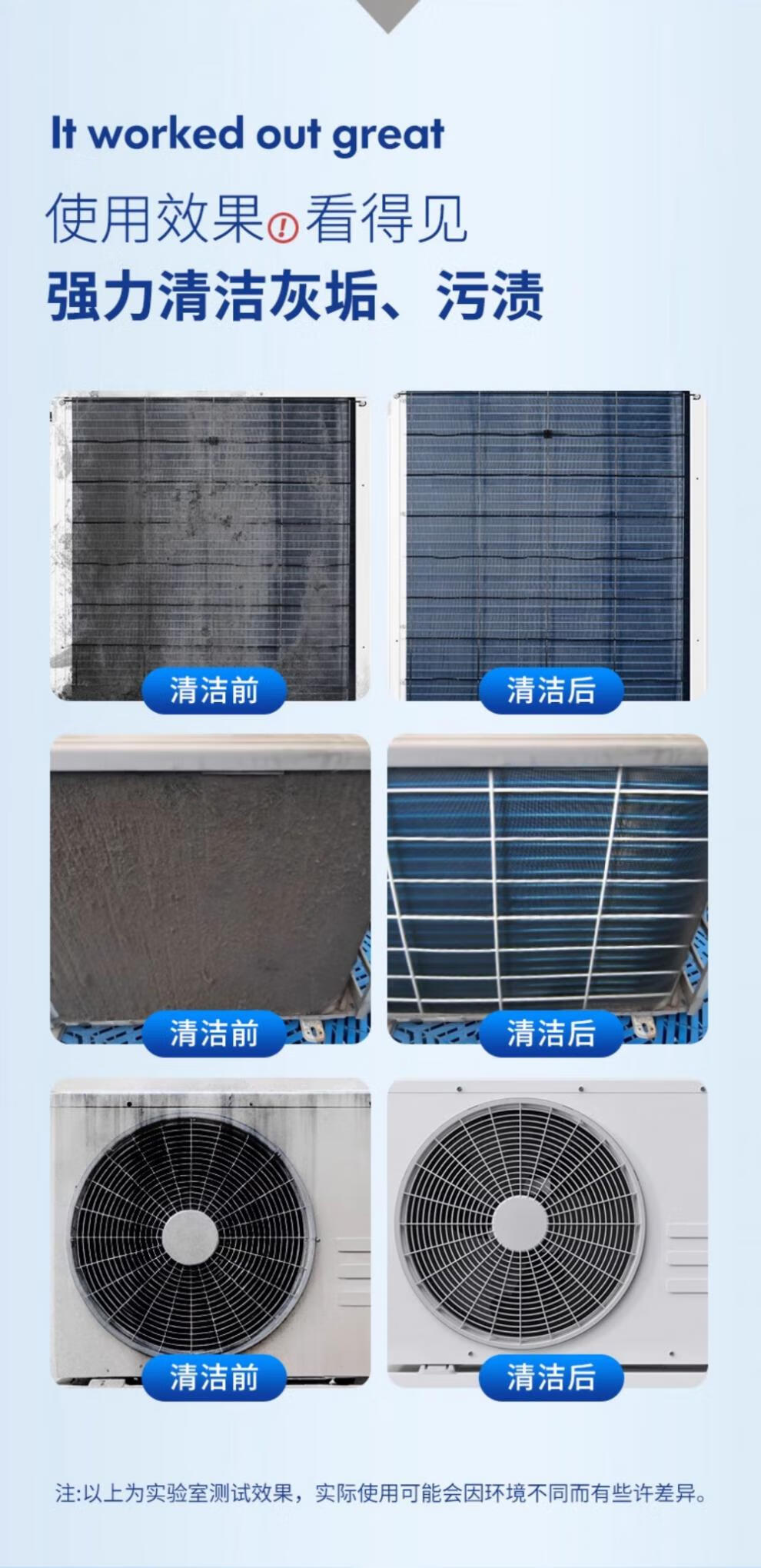 Cleaning agent for air conditioner outdoor unit powerful decontamination outdoor central air conditioner hanger radiator fin dust cleaner 1000ml