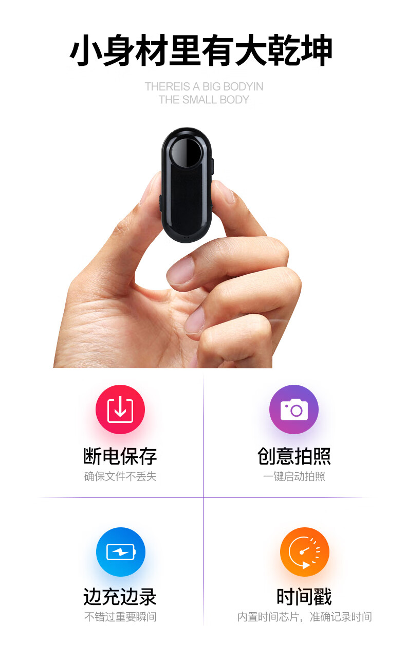 Alisten D2 thumb camera action camera HD portable audio and video recorder shooting video artifact back clip camera black 8G