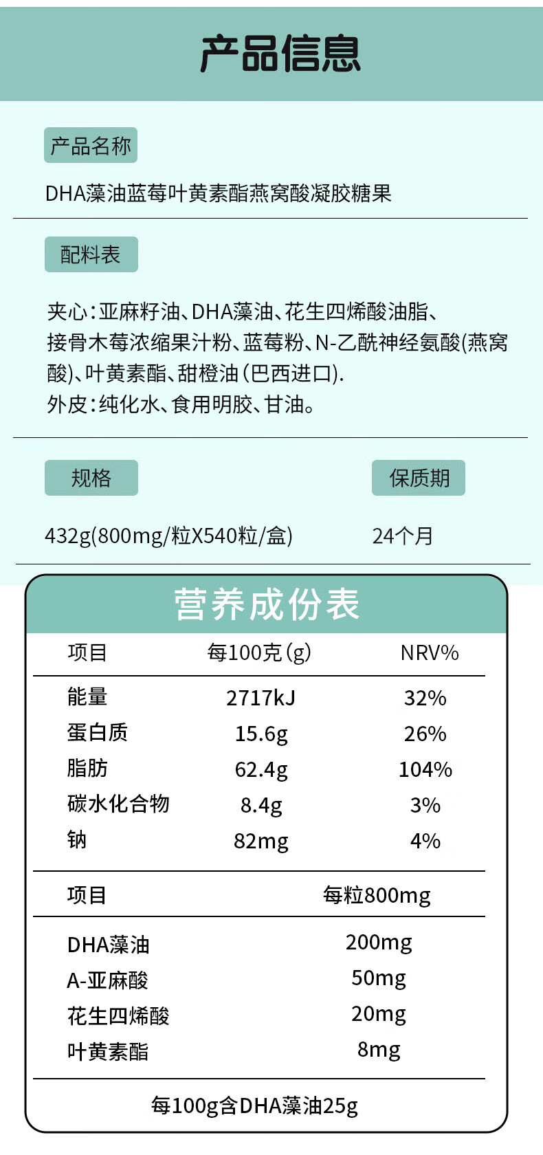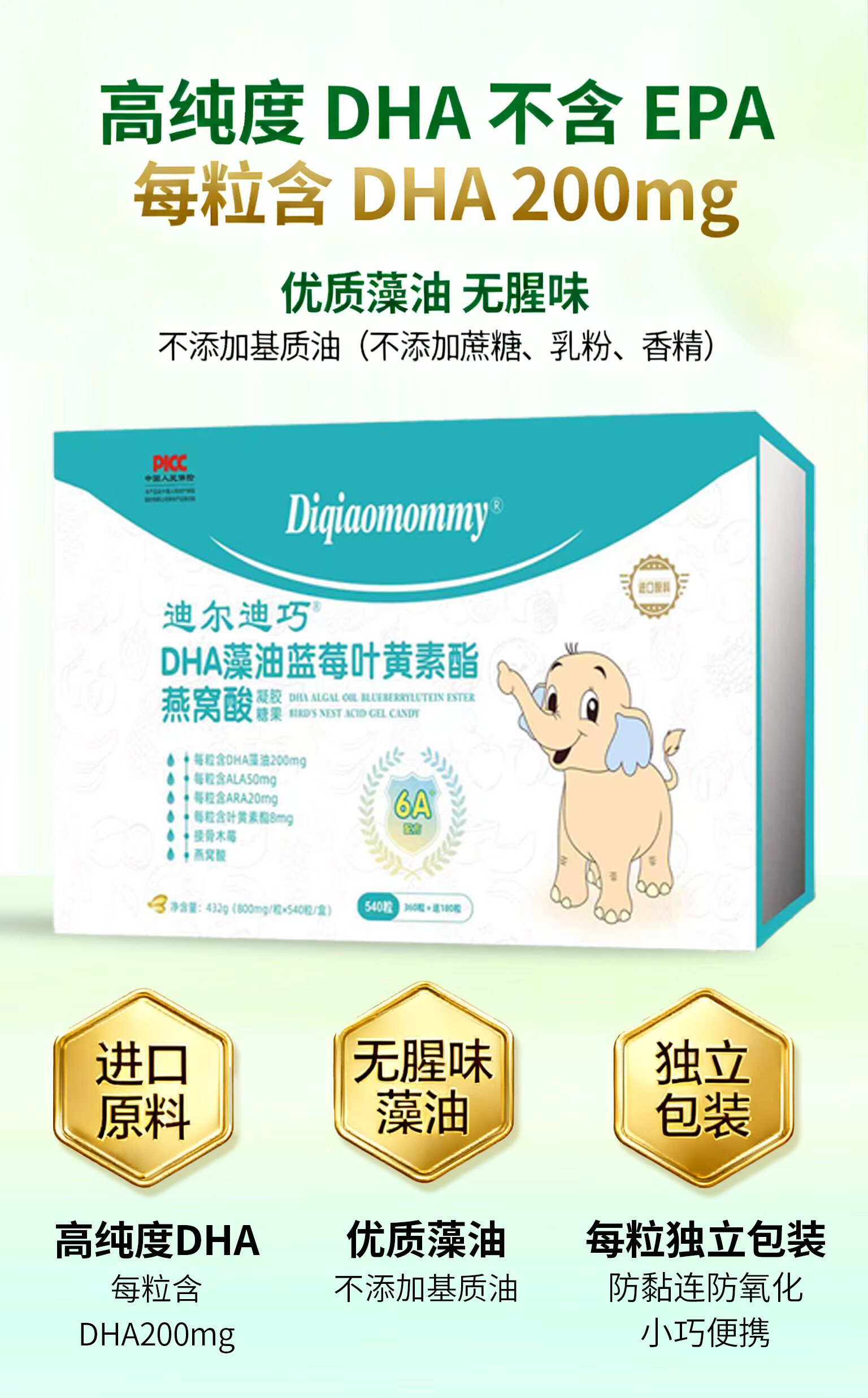 120 capsules/540 capsules DHA algae oil for children and pregnant women nutrition ARA retinal lutein DHA algae oil 120 capsules 1 box gift box