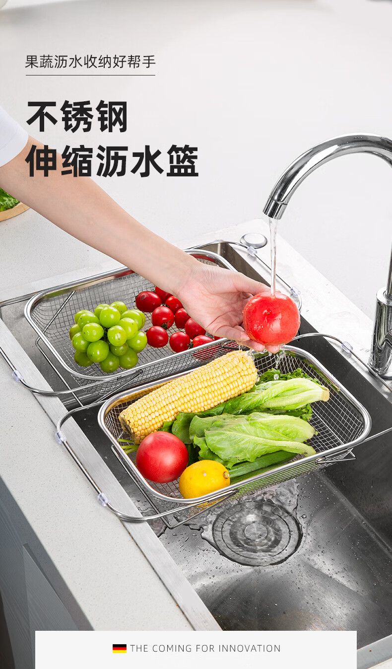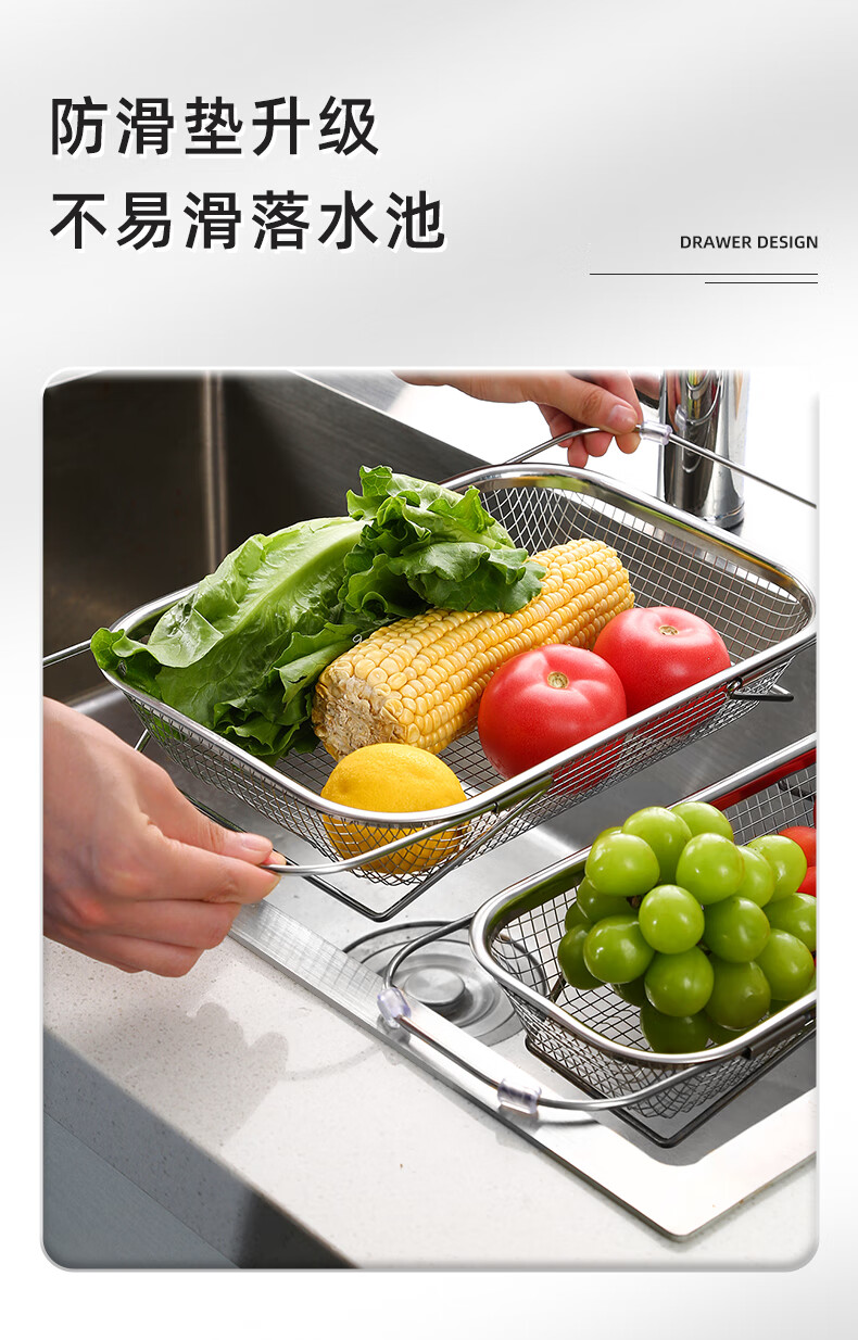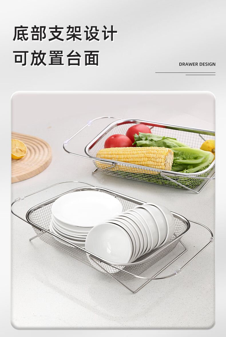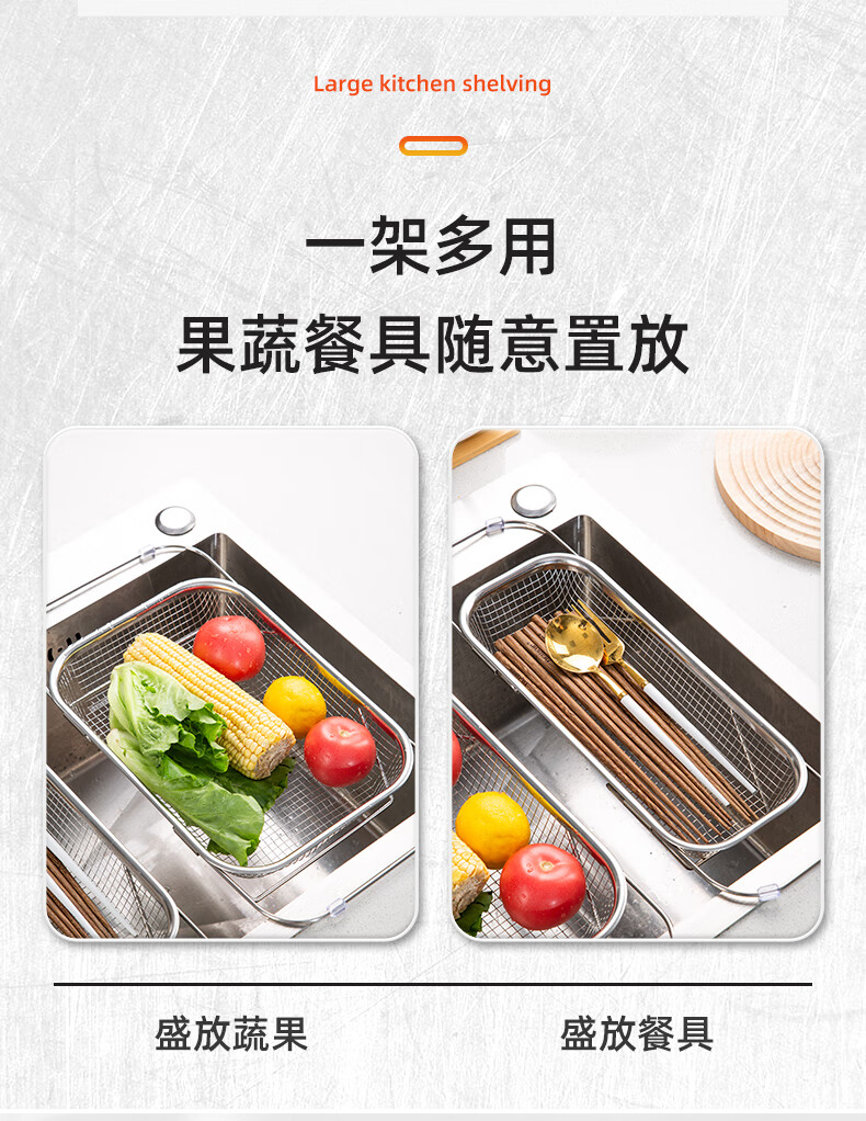 Newair stainless steel drain basket retractable kitchen sink drain rack household dishes and chopsticks single sink rack for washing fruits stainless steel standard drain basket