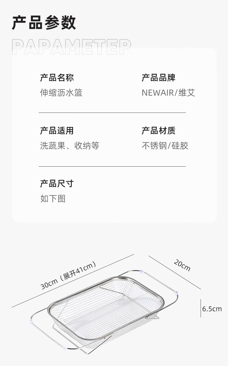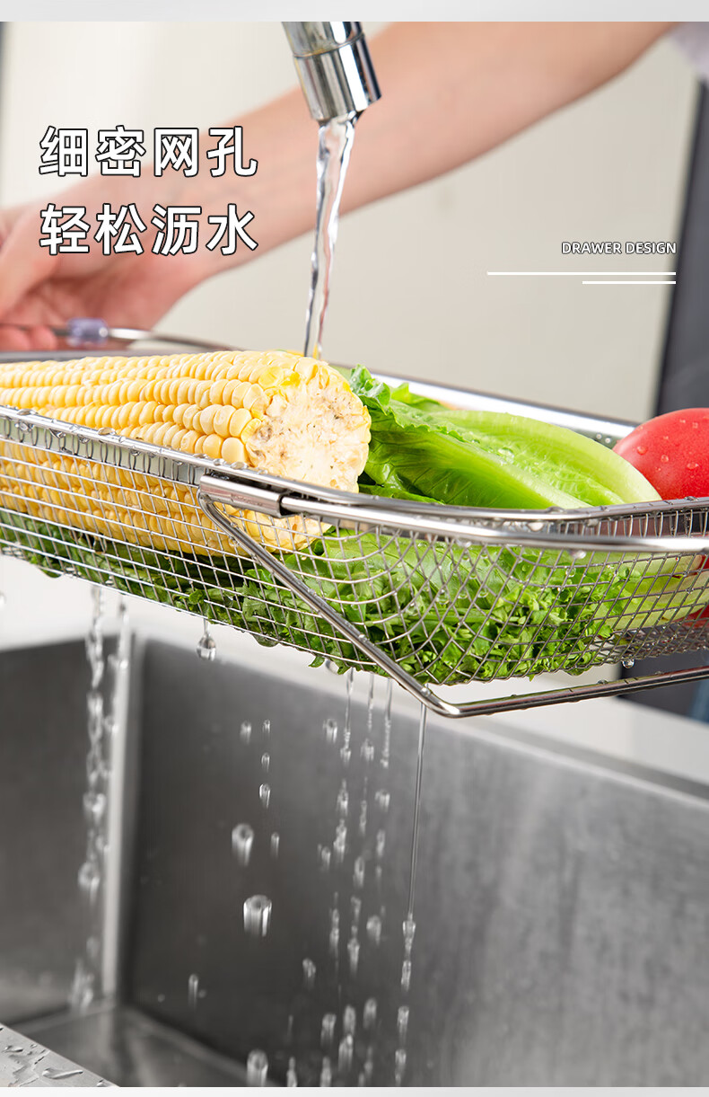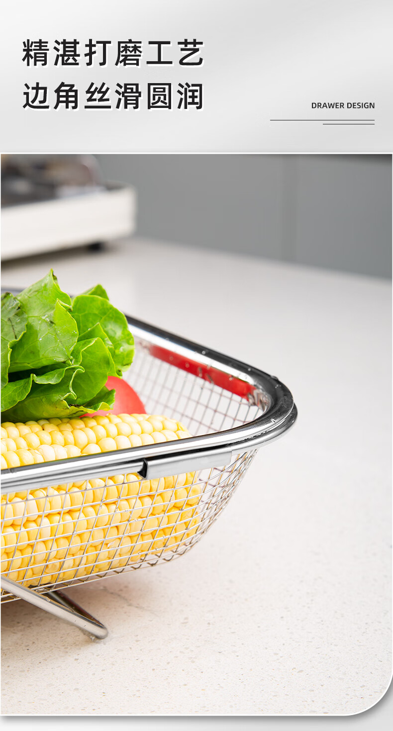 Newair stainless steel drain basket retractable kitchen sink drain rack household dishes and chopsticks single sink rack for washing fruits stainless steel standard drain basket