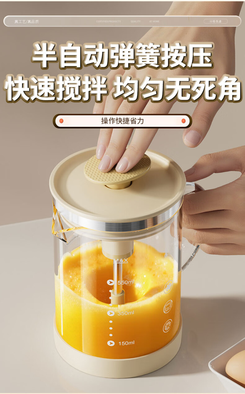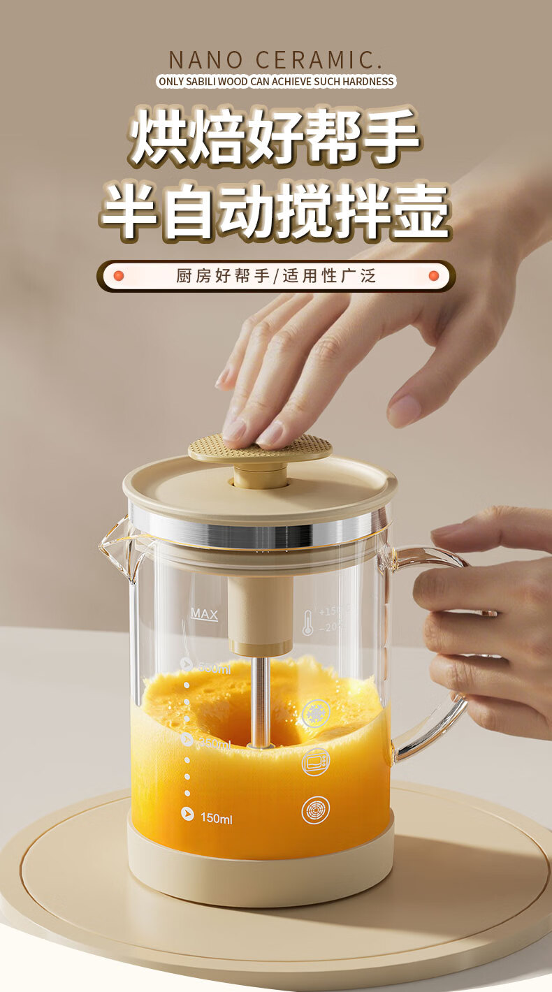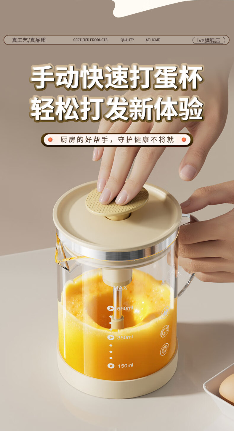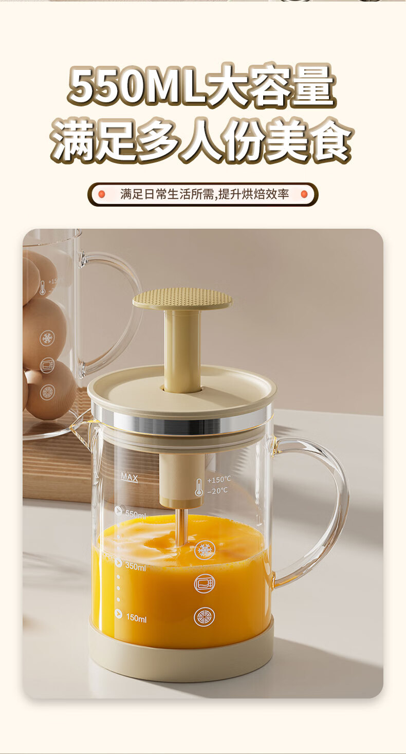 I VE multifunctional mixing kettle, household semi-automatic egg beater, high temperature resistant large capacity flour and egg mixing cup, 550ml semi-automatic mixing kettle
