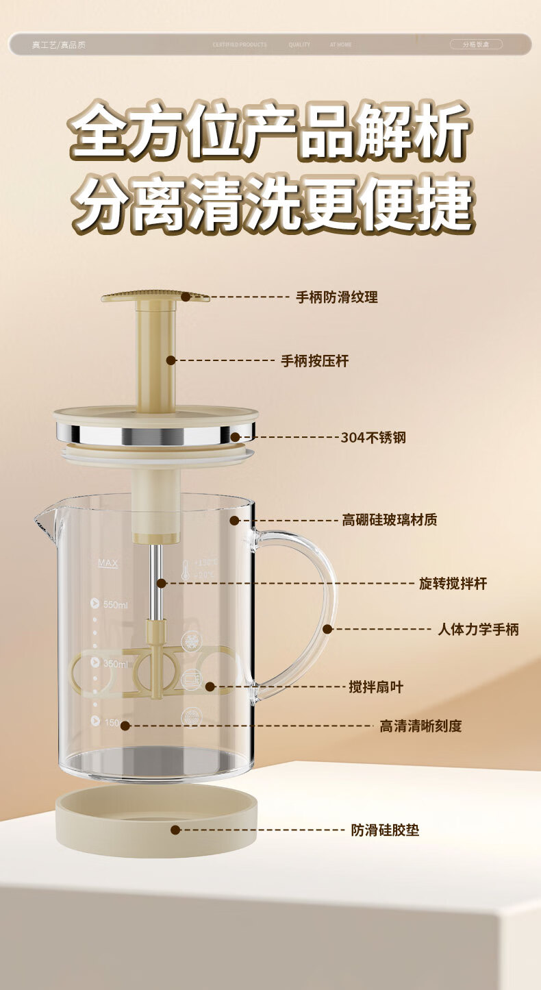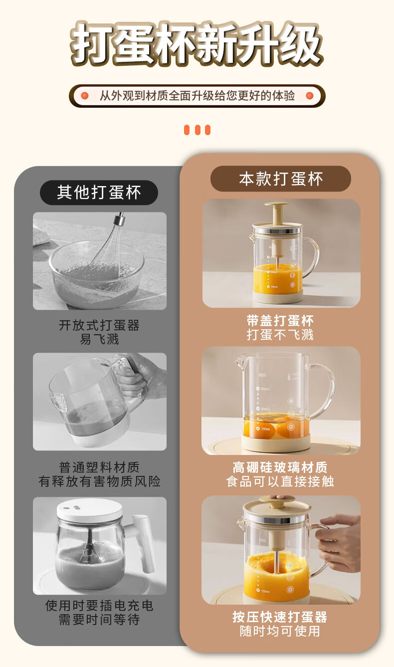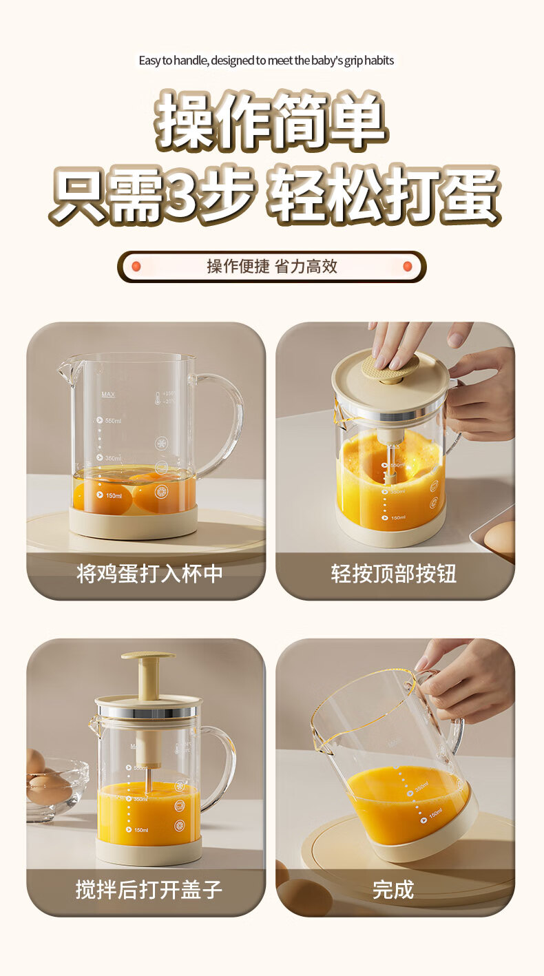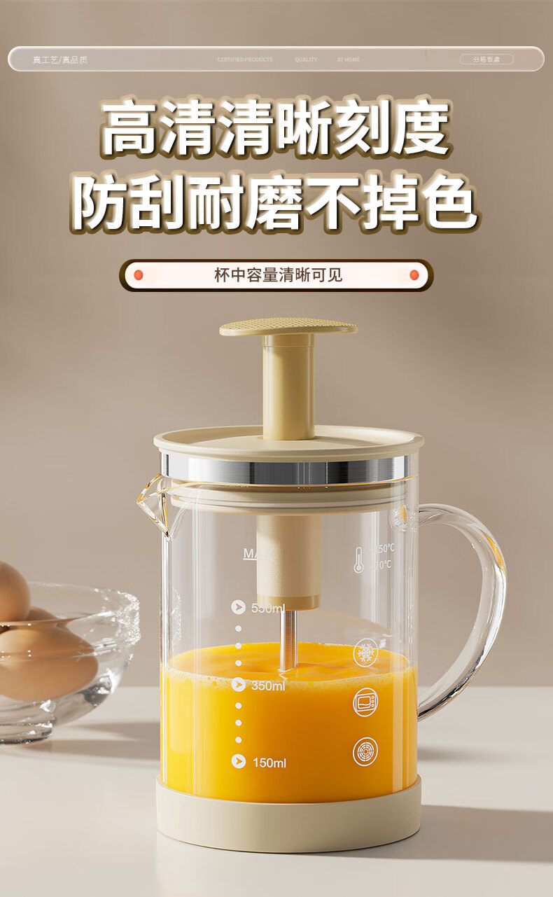 I VE multifunctional mixing kettle, household semi-automatic egg beater, high temperature resistant large capacity flour and egg mixing cup, 550ml semi-automatic mixing kettle