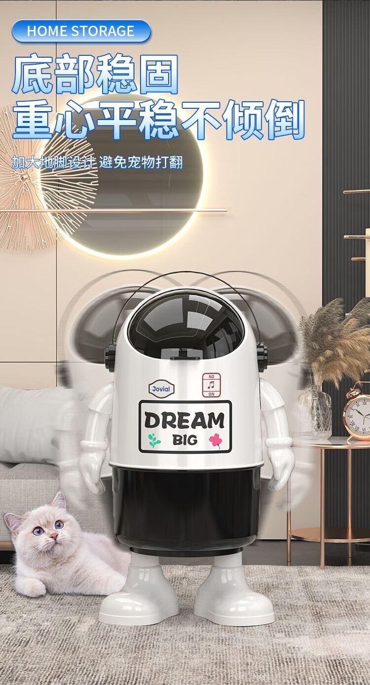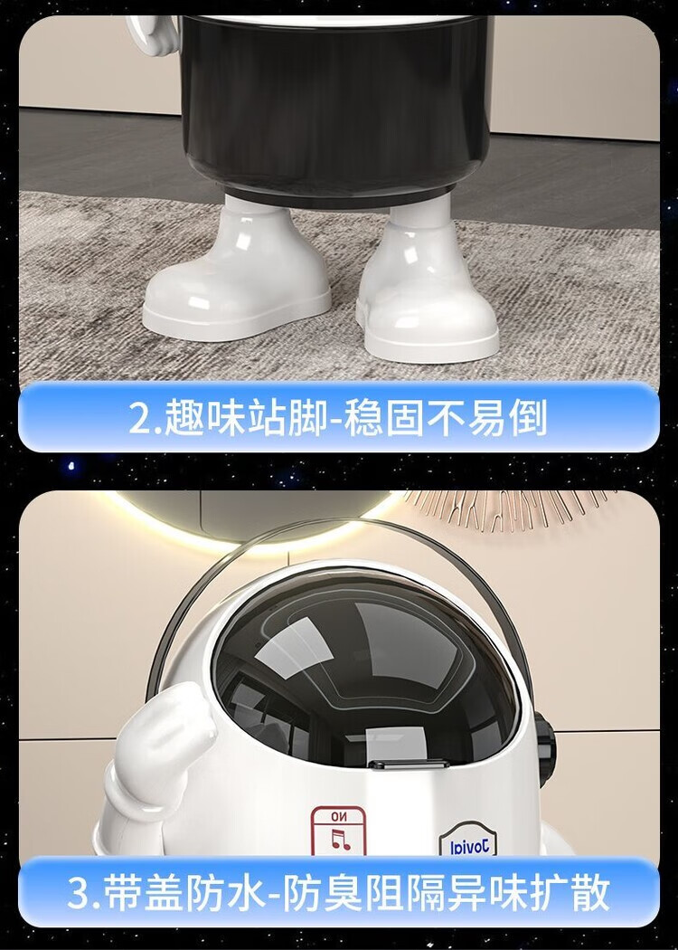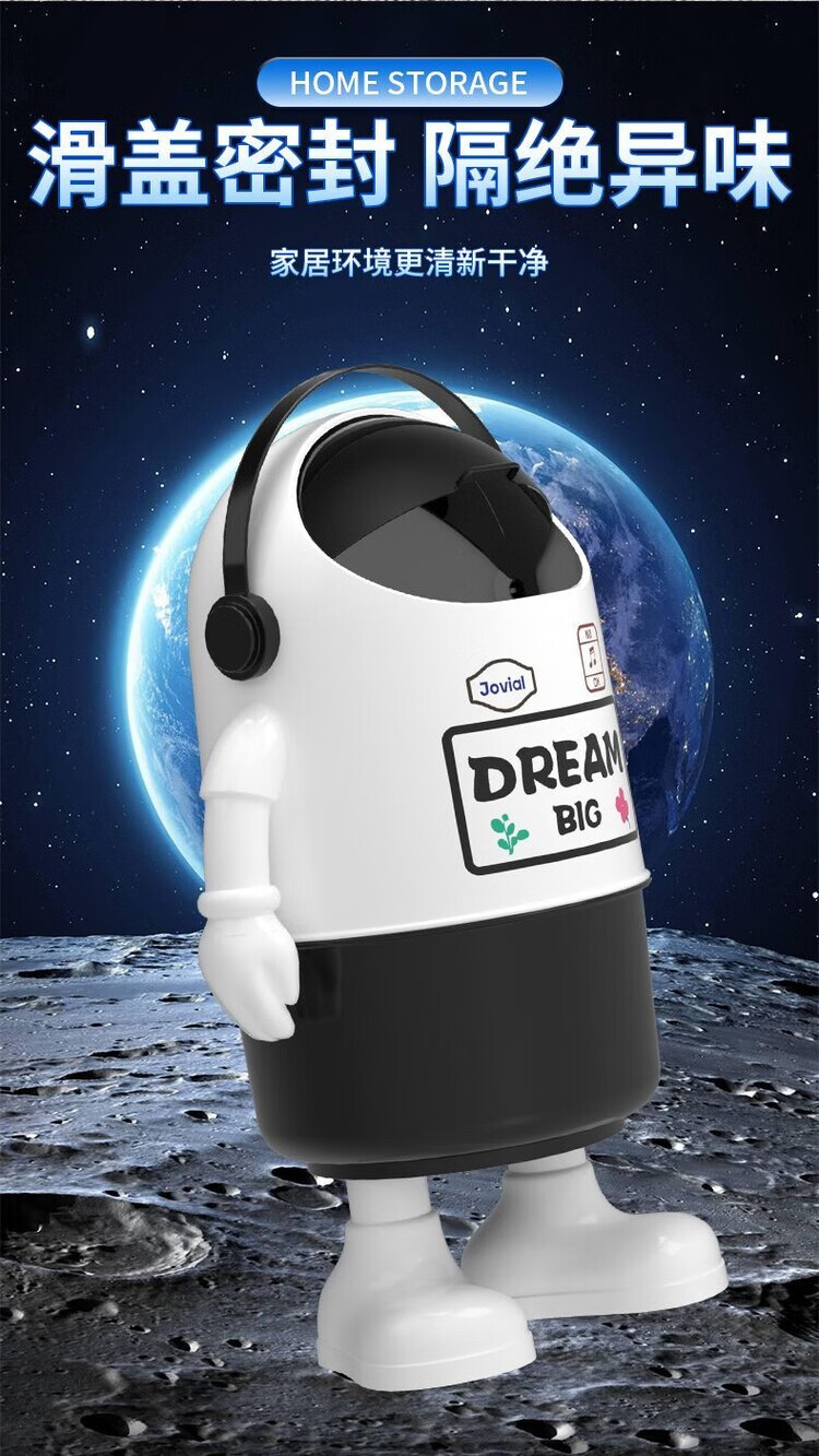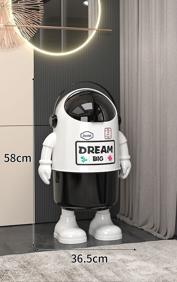 Large size trash can for home use 2025 new style living room, bedroom, bathroom, creative kitchen, cute, good-looking, large-capacity wastebasket, Astronaut-Dream-Black and white color combination, inner and outer double buckets