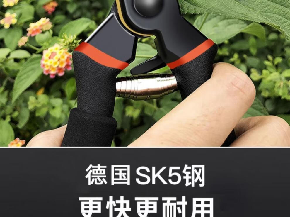 Shantou Lincun German precision pruning scissors, flower and tree scissors, pruning scissors, fruit tree scissors, gardening and home use, black diamond rubber-coated handle, 5th generation SK5 steel fine grinding