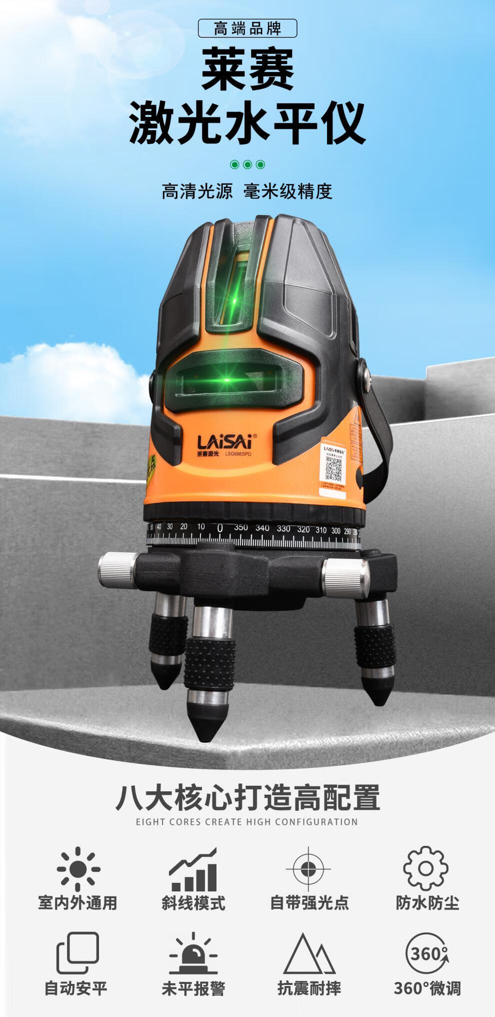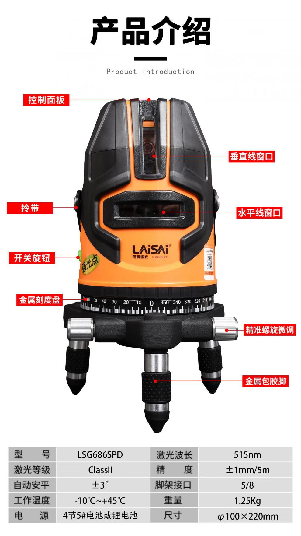 Laser laser level green light high-precision strong light thin line automatic line blue light green line leveler LSG671SD green light 2 lines standard