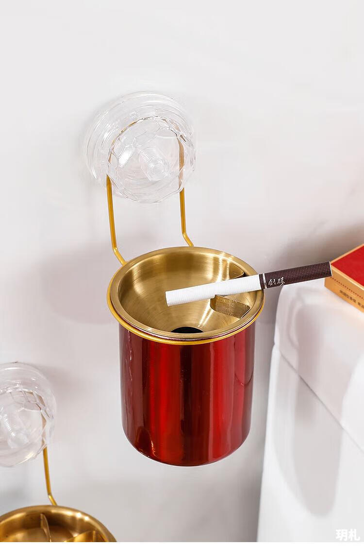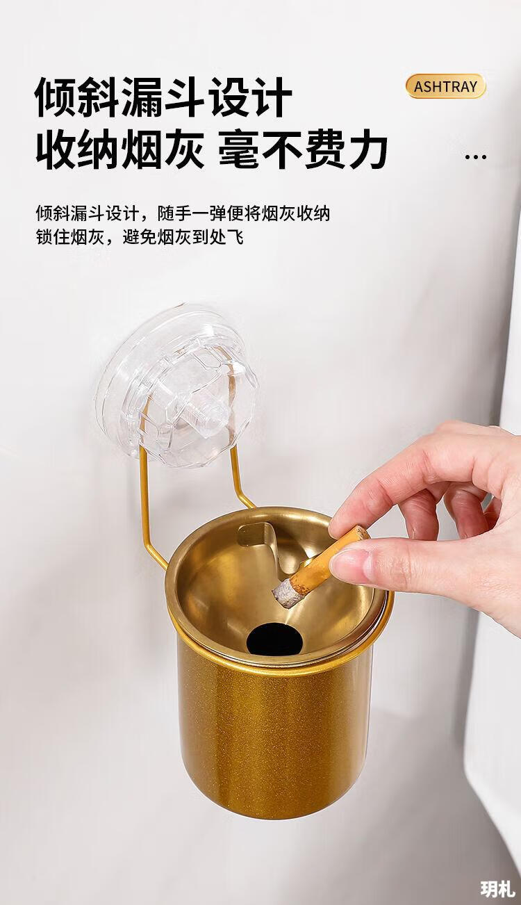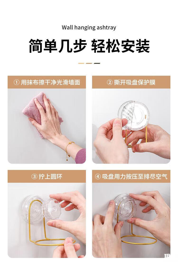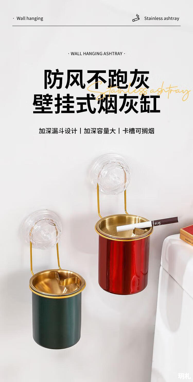 Suction cup ashtray wall-mounted household toilet bathroom ashtray suction cup creative trend simple anti-ash flying stainless steel no punching wall-mounted suction cup type-stainless steel ashtray natural color 1 pack
