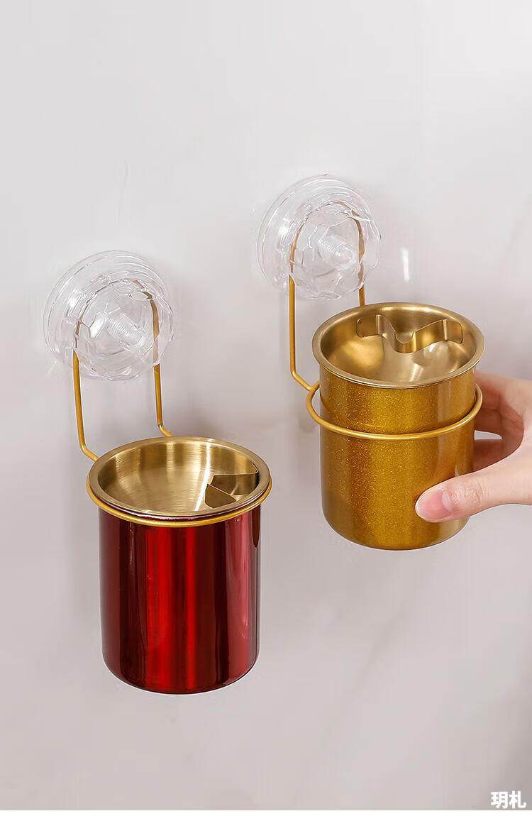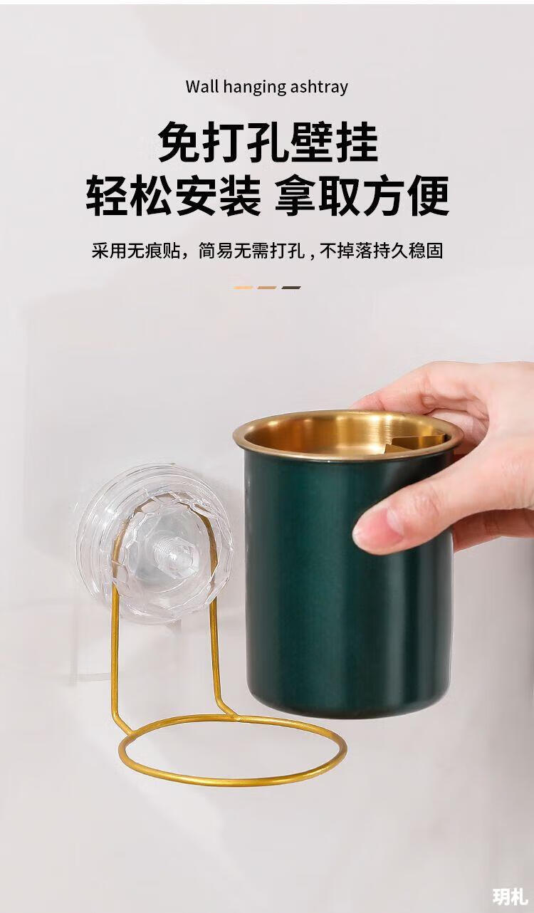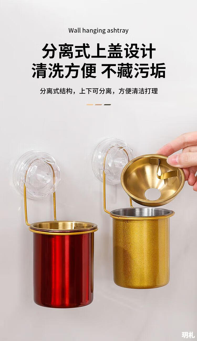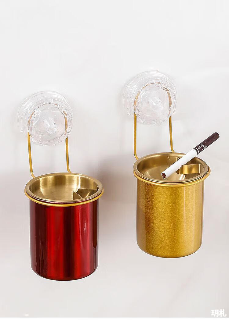 Suction cup ashtray wall-mounted household toilet bathroom ashtray suction cup creative trend simple anti-ash flying stainless steel no punching wall-mounted suction cup type-stainless steel ashtray natural color 1 pack