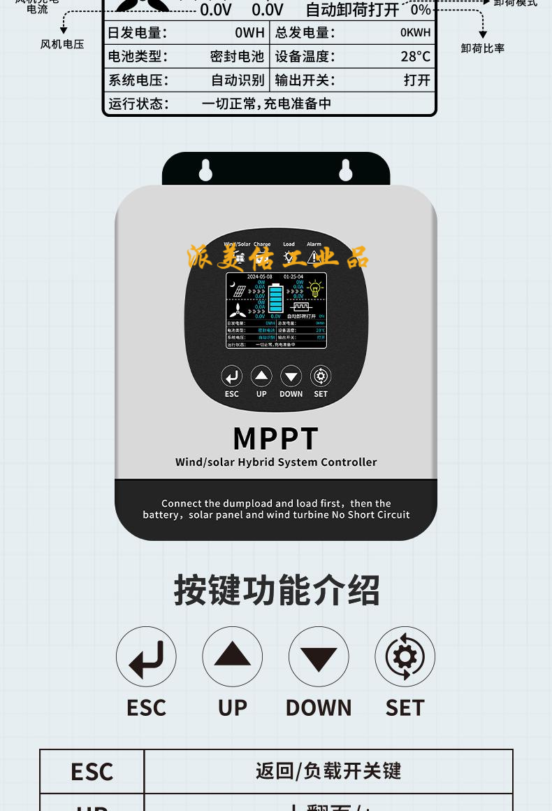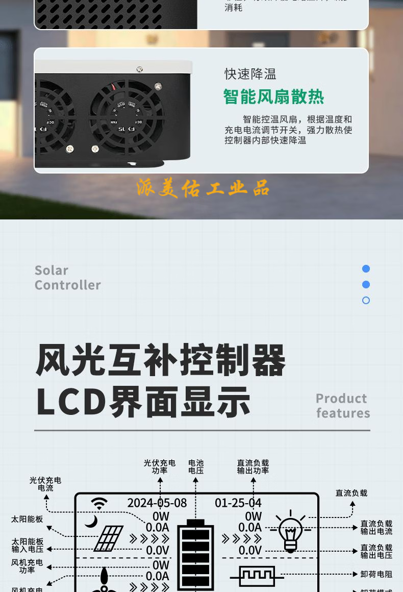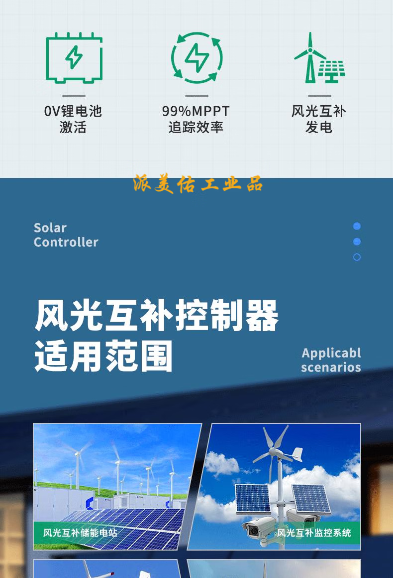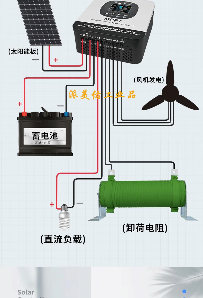 MPPT wind and solar complementary controller 12-48V wind solar photovoltaic intelligent boost power generation charging protector 12-48V wind and solar complementary 20A