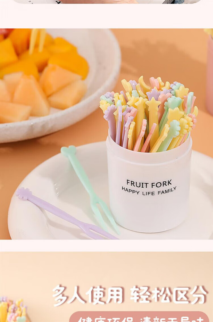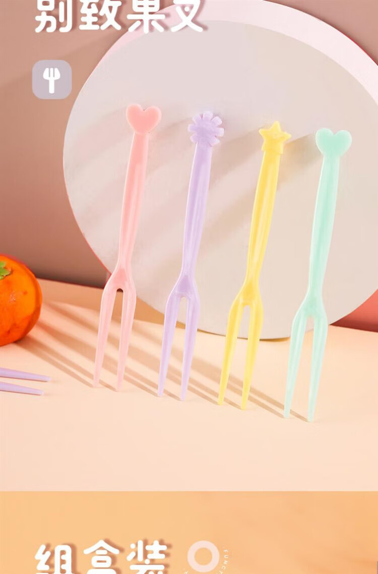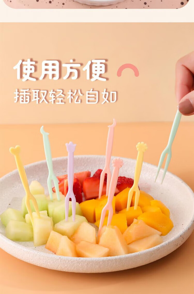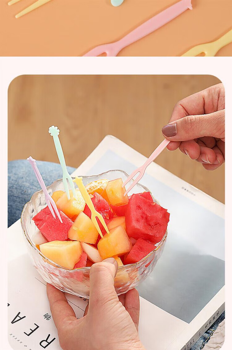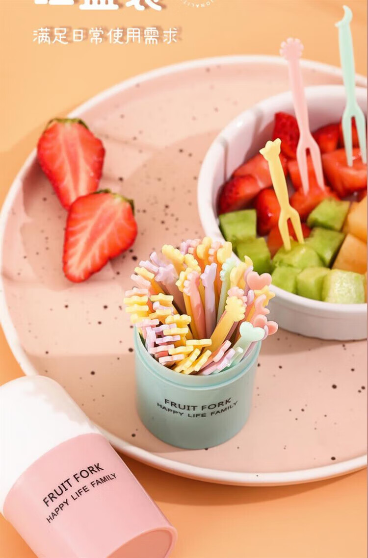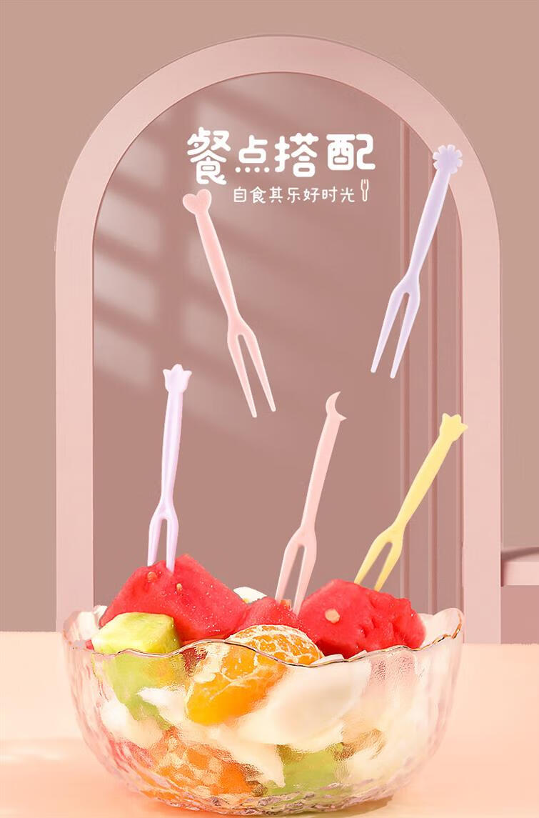 Qingchen Fruit Fork Set Fruit Pick Disposable Plastic Two-Tine Household Fruit Cake Dessert Fork Dessert Small Fork Grass Green + Ocean Blue + Cherry Blossom Pink - Mixed Color 3 Bottles
