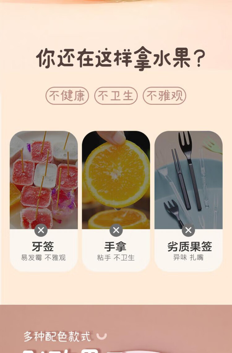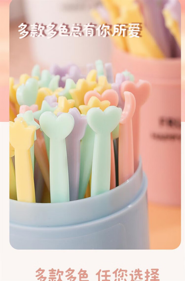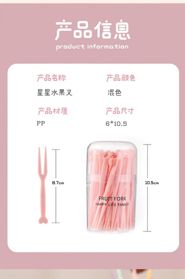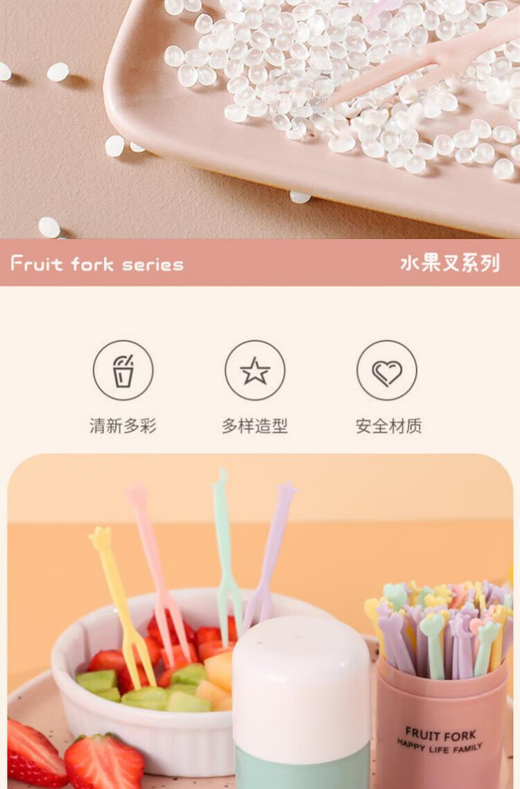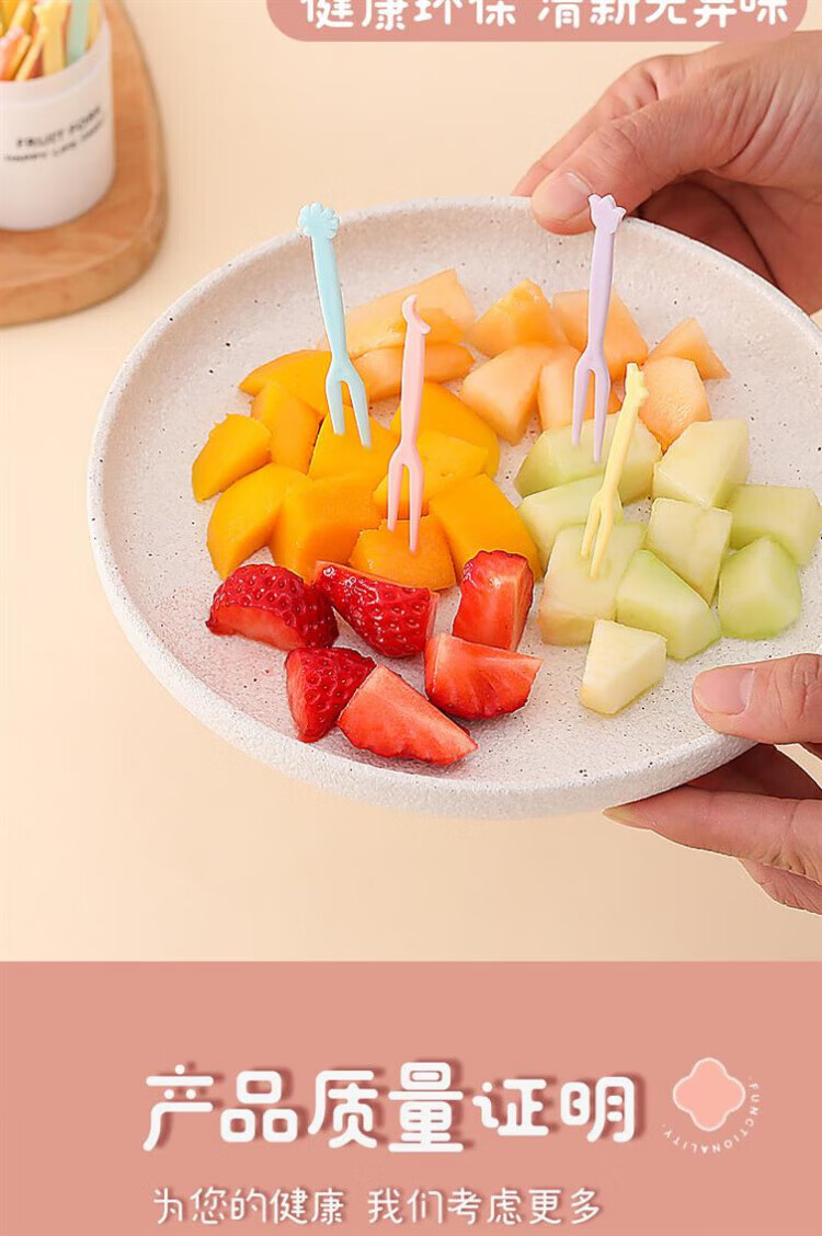 Qingchen Fruit Fork Set Fruit Pick Disposable Plastic Two-Tine Household Fruit Cake Dessert Fork Dessert Small Fork Grass Green + Ocean Blue + Cherry Blossom Pink - Mixed Color 3 Bottles