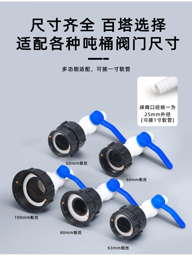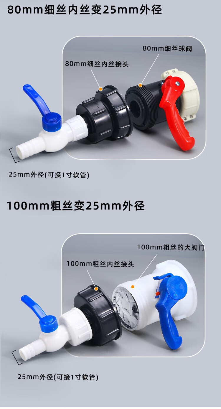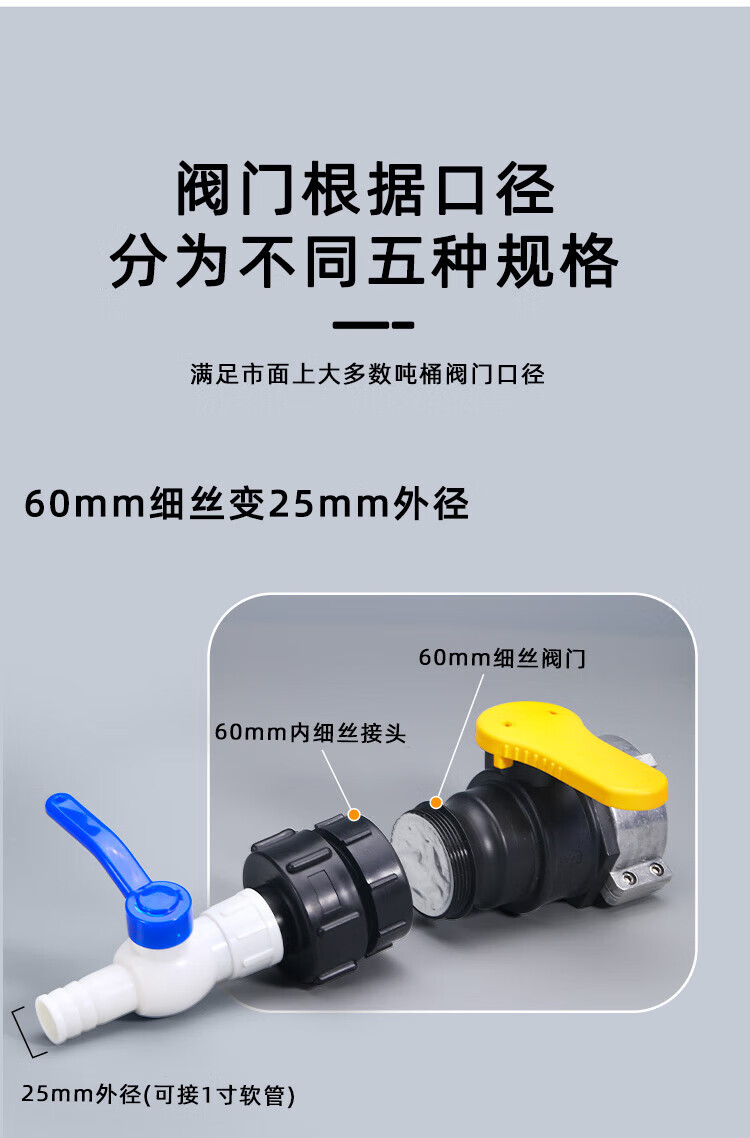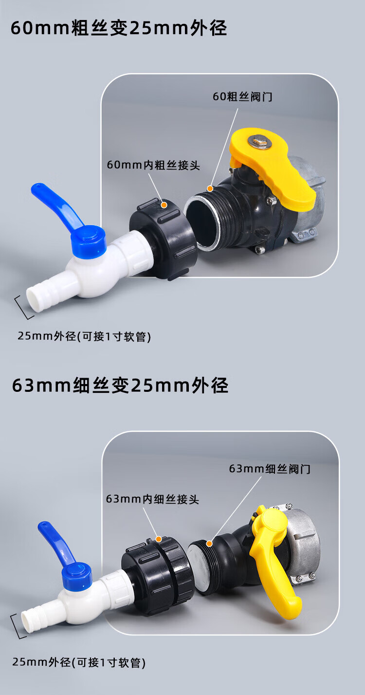 Metasequoia IBC ton barrel outlet joint thin wire to 60 thick wire with valve 25mm 60 thick wire to 25mm outer diameter (can be connected to 1 inch hose)