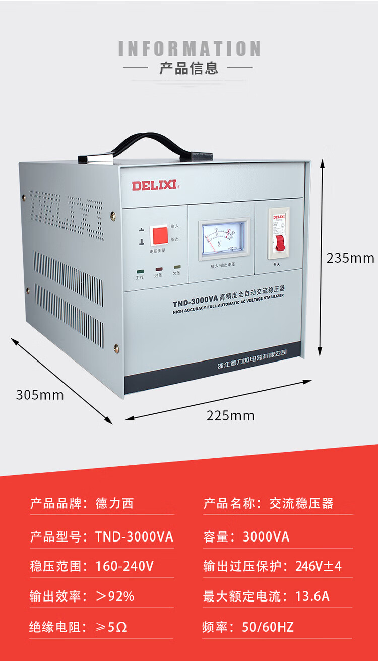 Delixi Electric TND-3KVA 3000W 3K high-precision fully automatic AC single-phase household voltage regulator household TND-1000VA