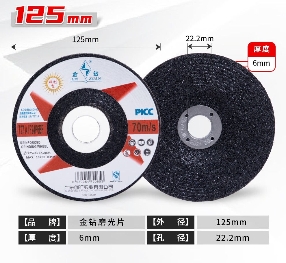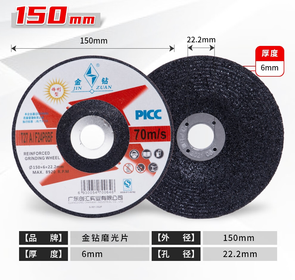 Gold diamond polishing disc 100/125/150/180*6 angle grinding disc metal thickened grinding disc angle grinder grinding wheel disc gold diamond 100*6*16100 pieces four boxes