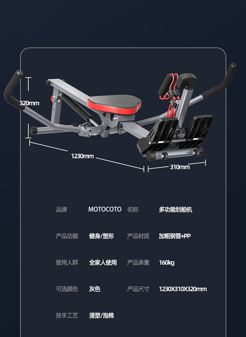 Vinoa 1866 people collect liquid-resistant hydraulic rowing machine, wind-resistant rowing machine, household sports rowing machine, no installation required. The elastic drawstring can bear 160kg.