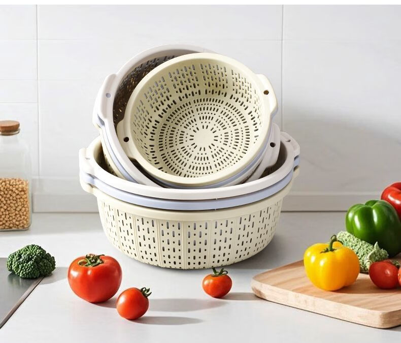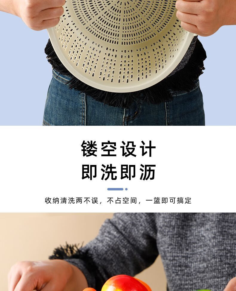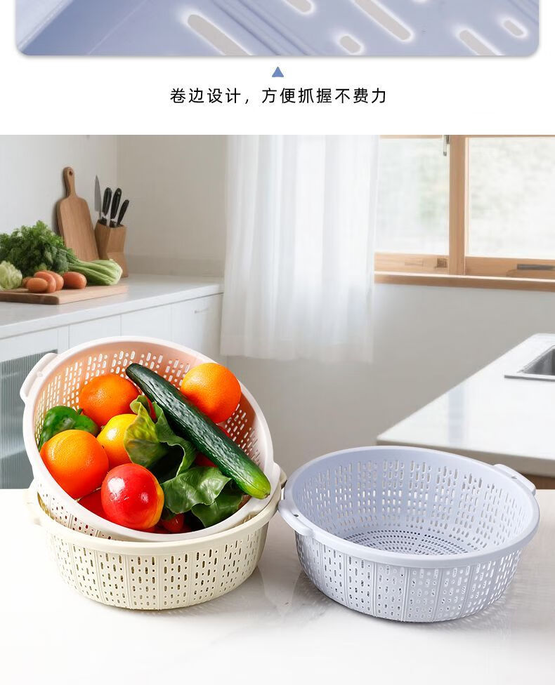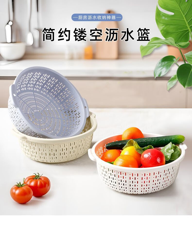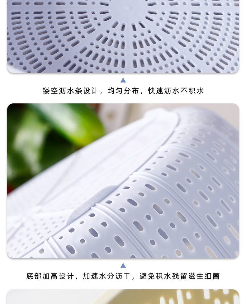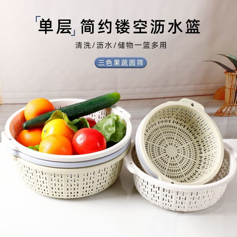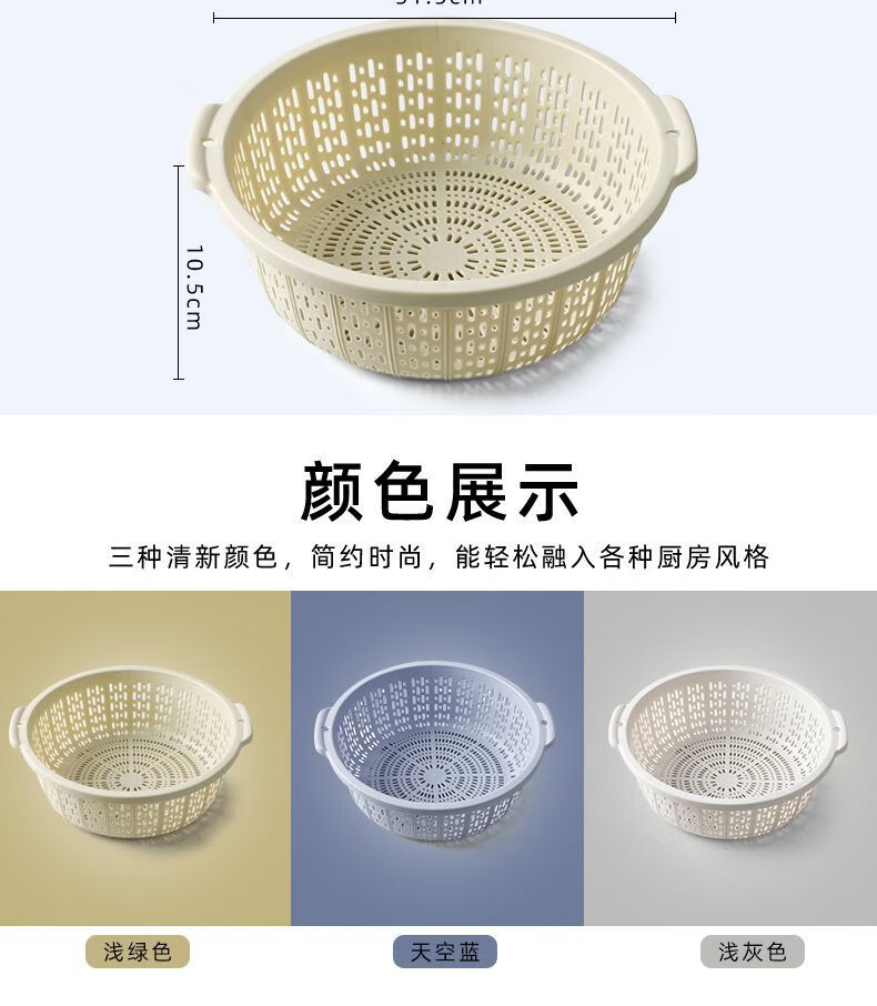 Ye Yugao Ling thickened kitchen steamed bun basket household ultra-fine and thick kitchen household rice washing sieve fruit washing vegetable drain basket single layer Gao Ling light gray large + medium + small got 3 pieces