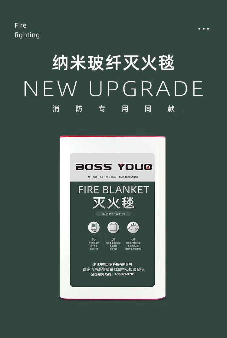 Zhongjia Woan fire-fighting special fire-extinguishing blanket nano household fire-fighting certification 3C fiberglass kitchen household fire blanket cloth commercial flagship fire-fighting style丨Boutique version nano fire-extinguishing blanket