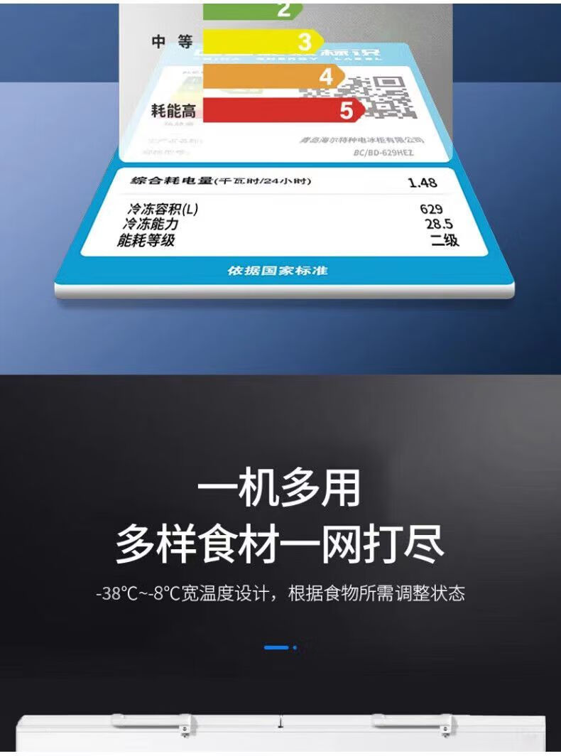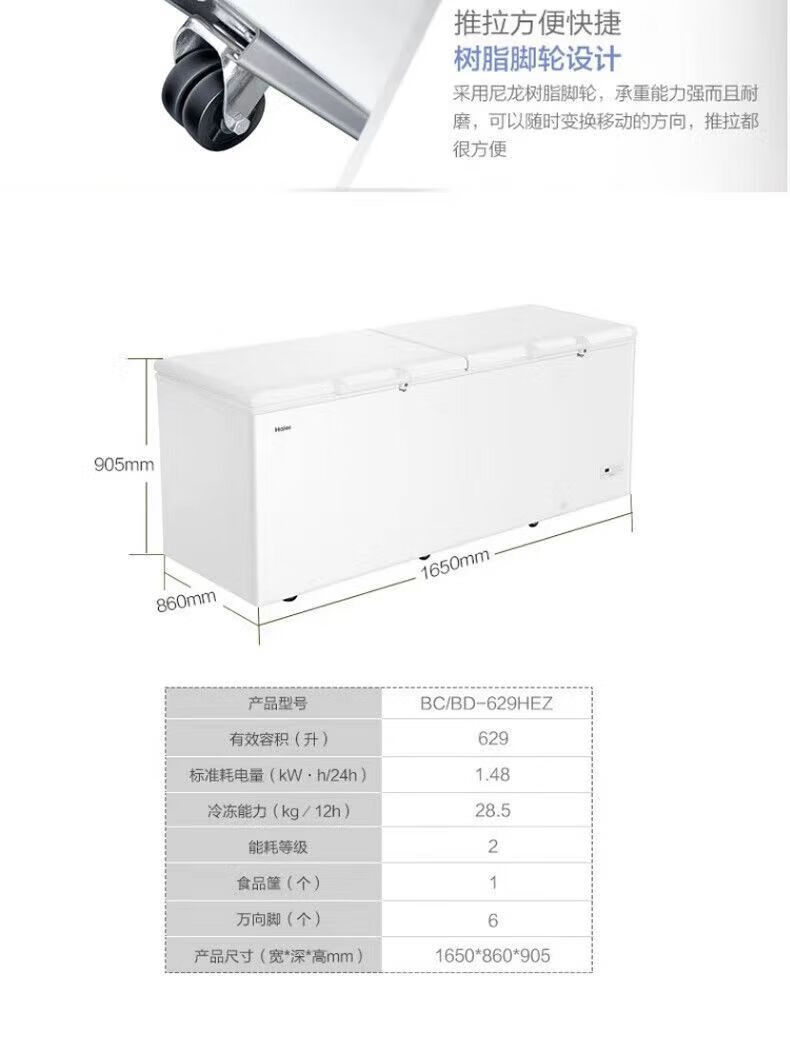 Haier freezer 629 liters commercial large-capacity freezer conversion ultra-low temperature seafood deep-freezing quick-freezing BC/BD-629HEZ 629 liters