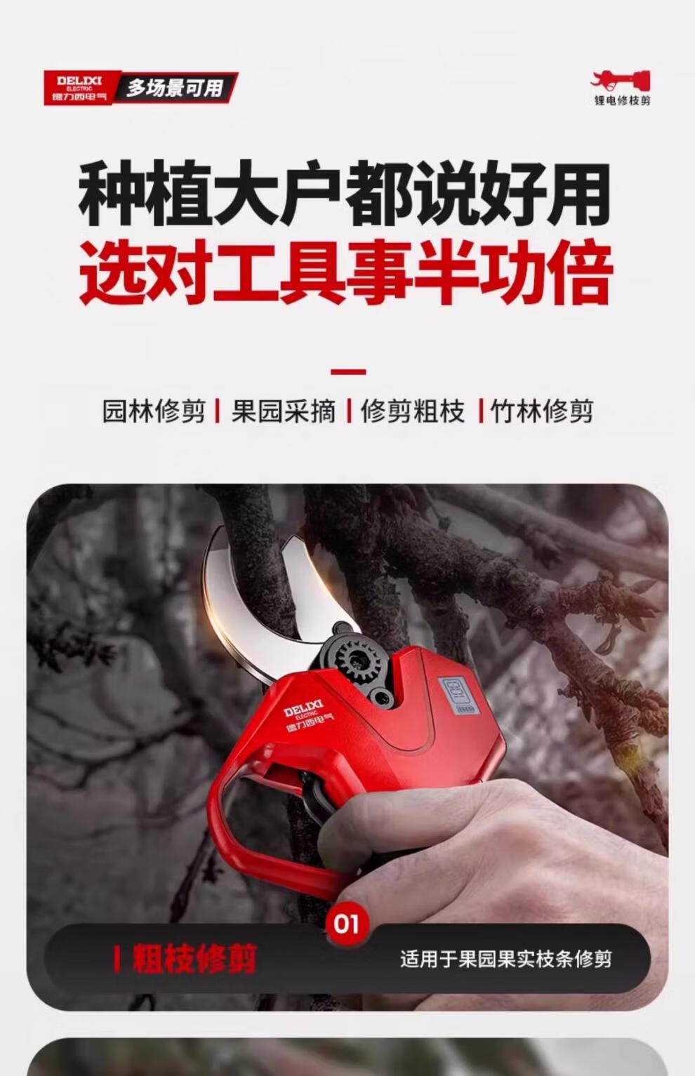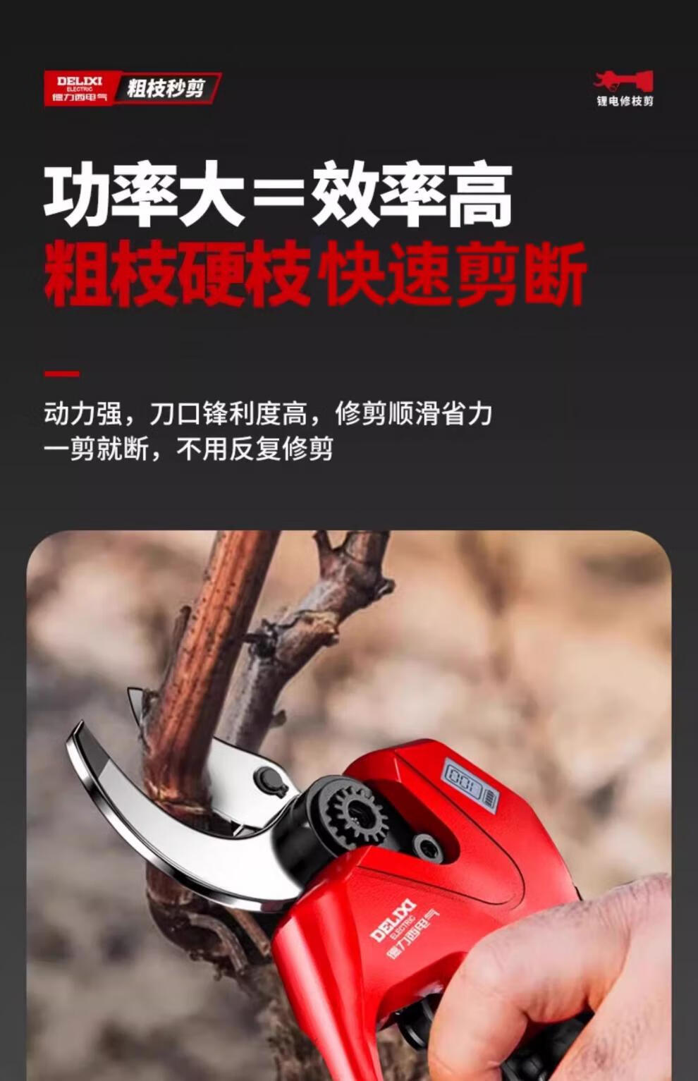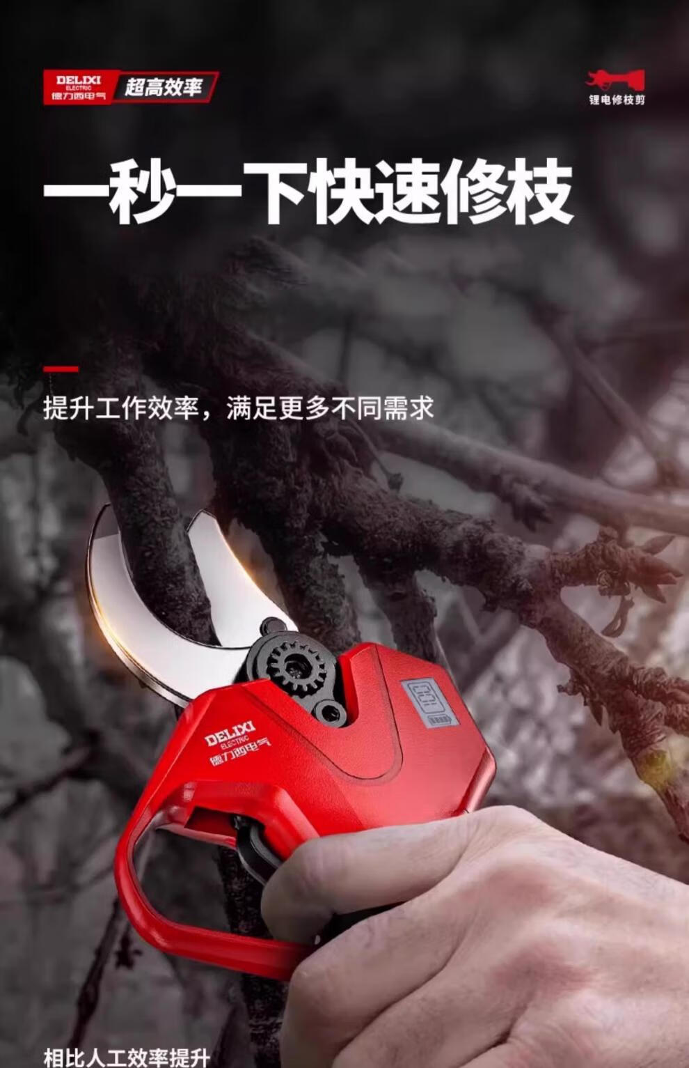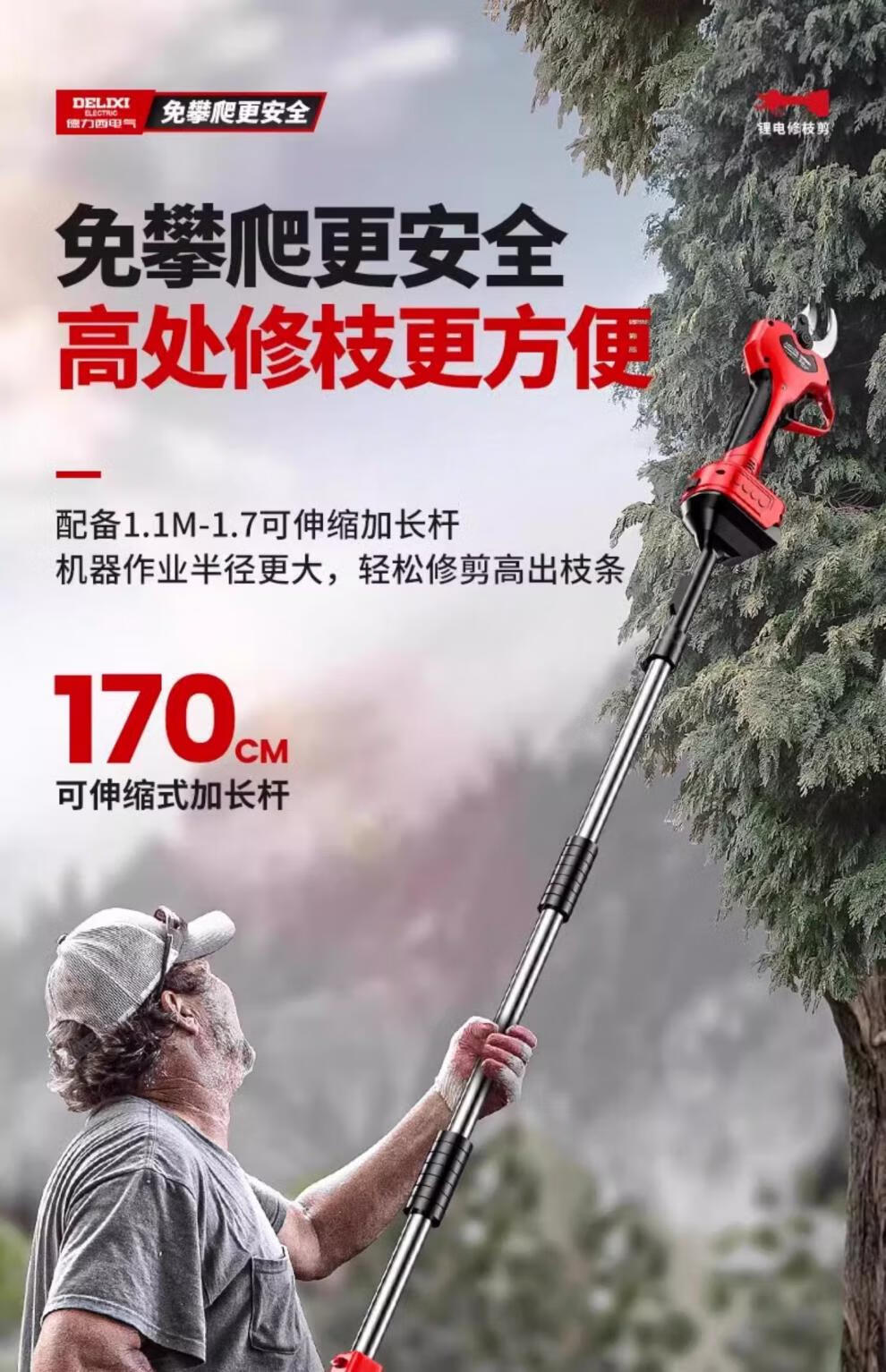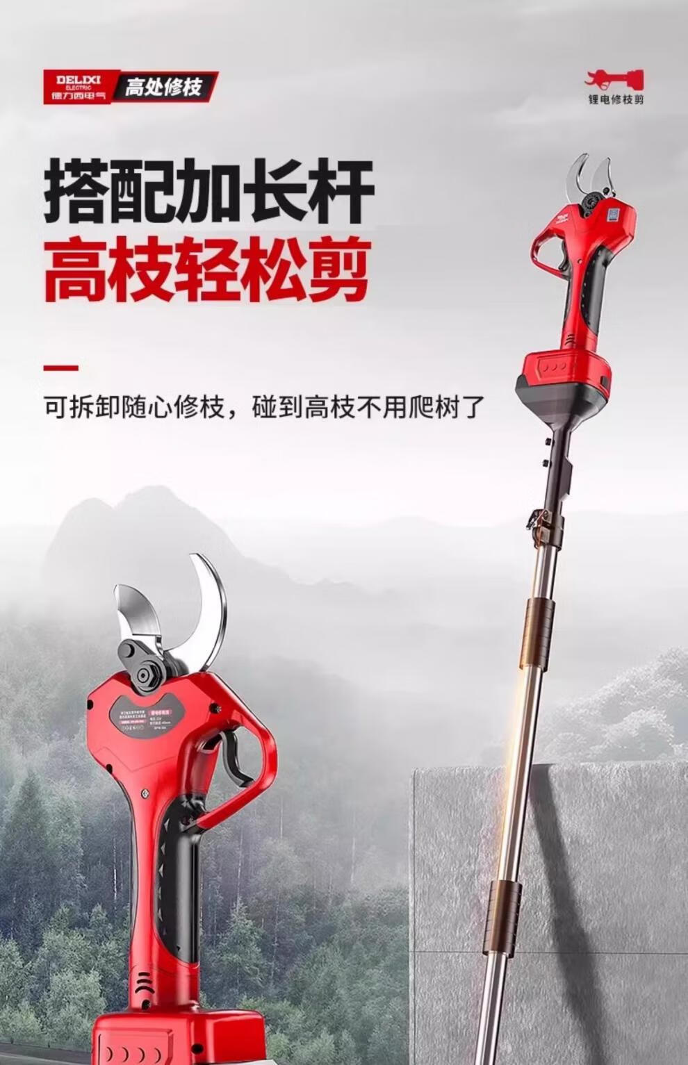 Delixi Electric Electric Pruning Scissors Lithium Battery Electric Scissors for Cutting Branches and Gardens Special Rechargeable Aerial Scissors Brushless Upgraded Model 5 Sections 2.0Ah One Charge One Charge + Liter
