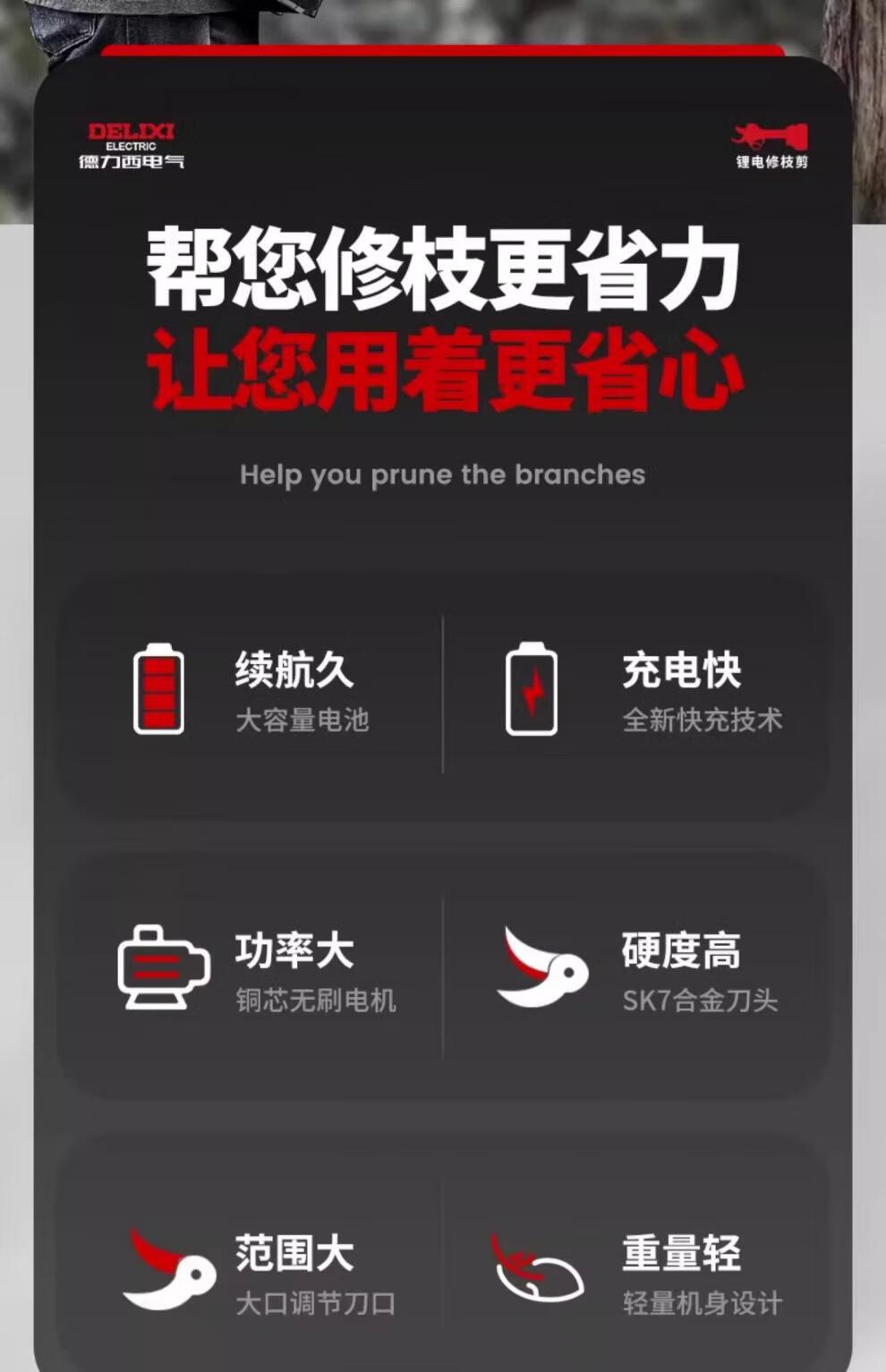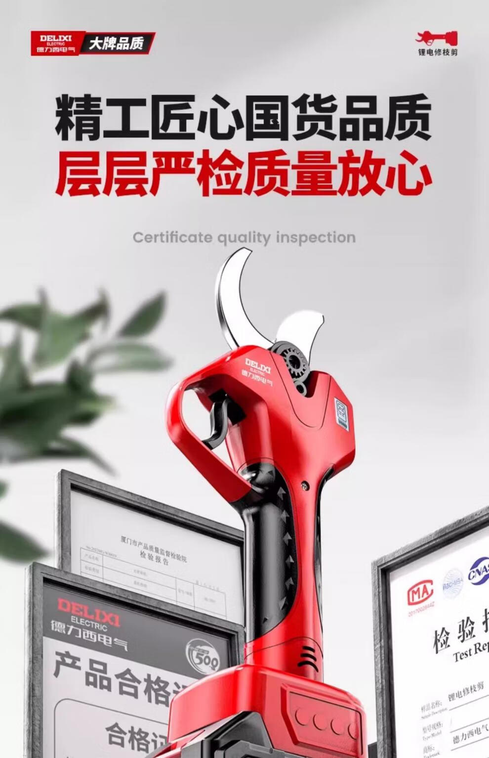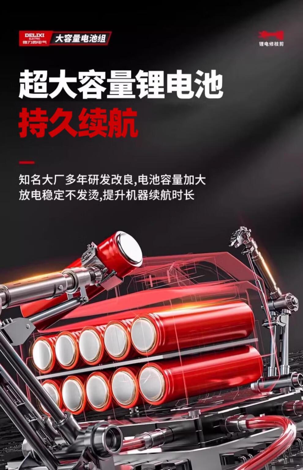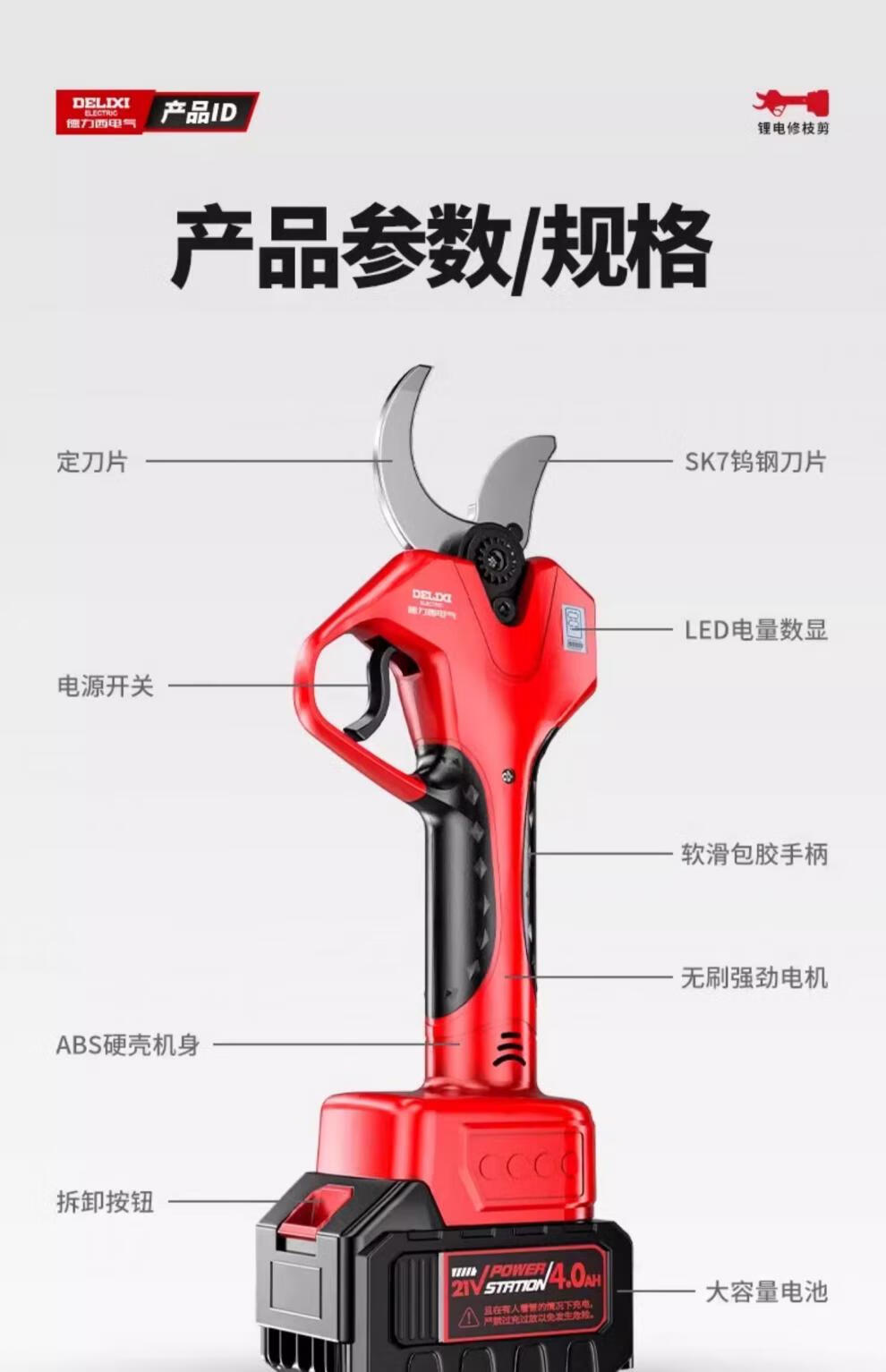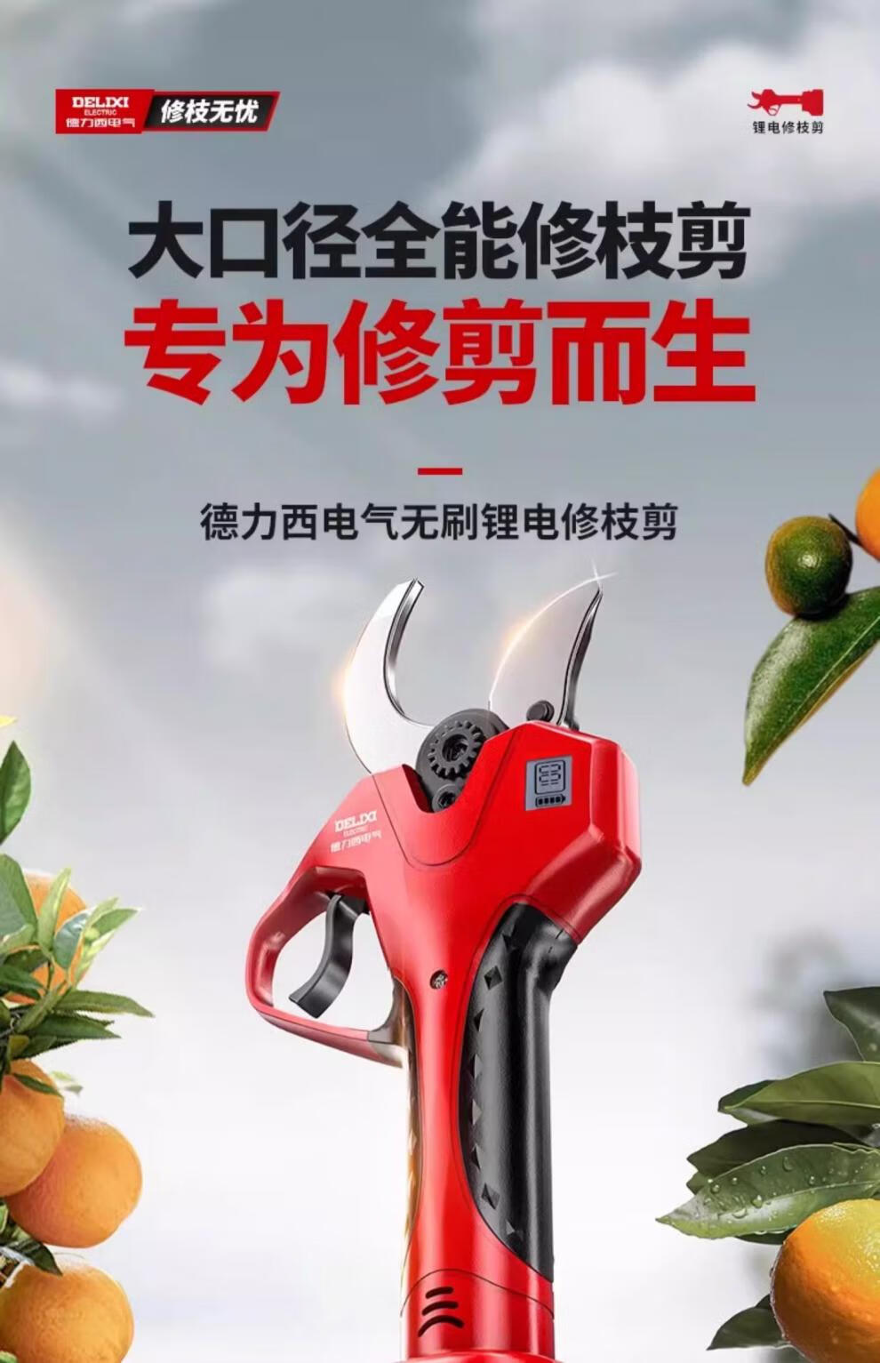 Delixi Electric Electric Pruning Scissors Lithium Battery Electric Scissors for Cutting Branches and Gardens Special Rechargeable Aerial Scissors Brushless Upgraded Model 5 Sections 2.0Ah One Charge One Charge + Liter
