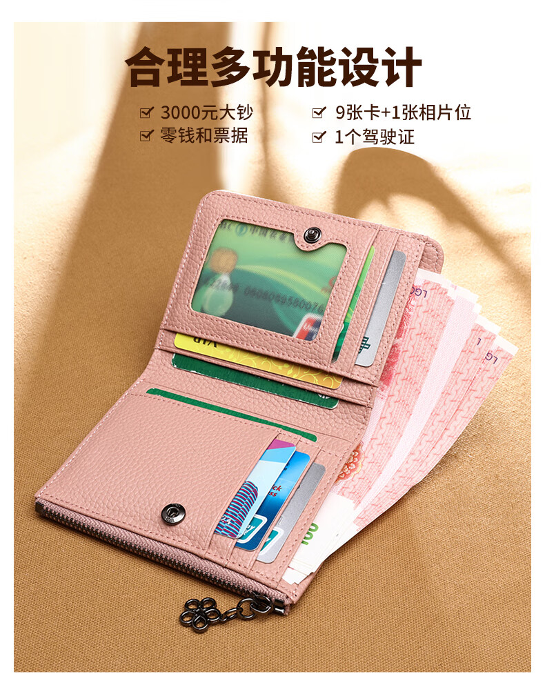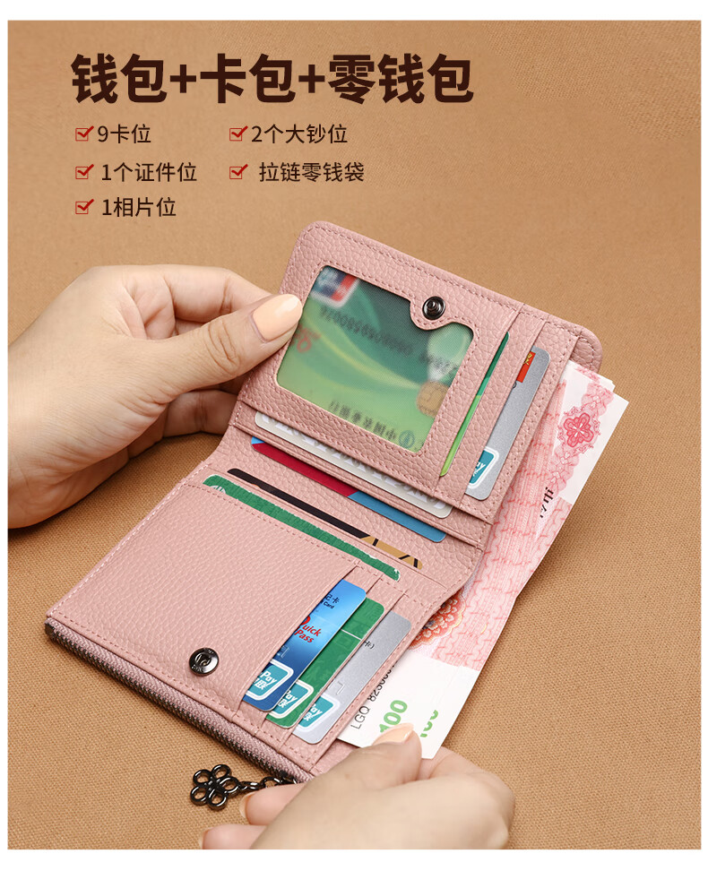 CRTNZO KROEZ Light Luxury Wallet Women's Short 2026 New Coin Purse Women's Card Holder New Year's Day Valentine's Day Birthday Gift Practical Taro Powder - Light Luxury Gift Practical Birthday Gift for Girlfriends Wife Girlfriends