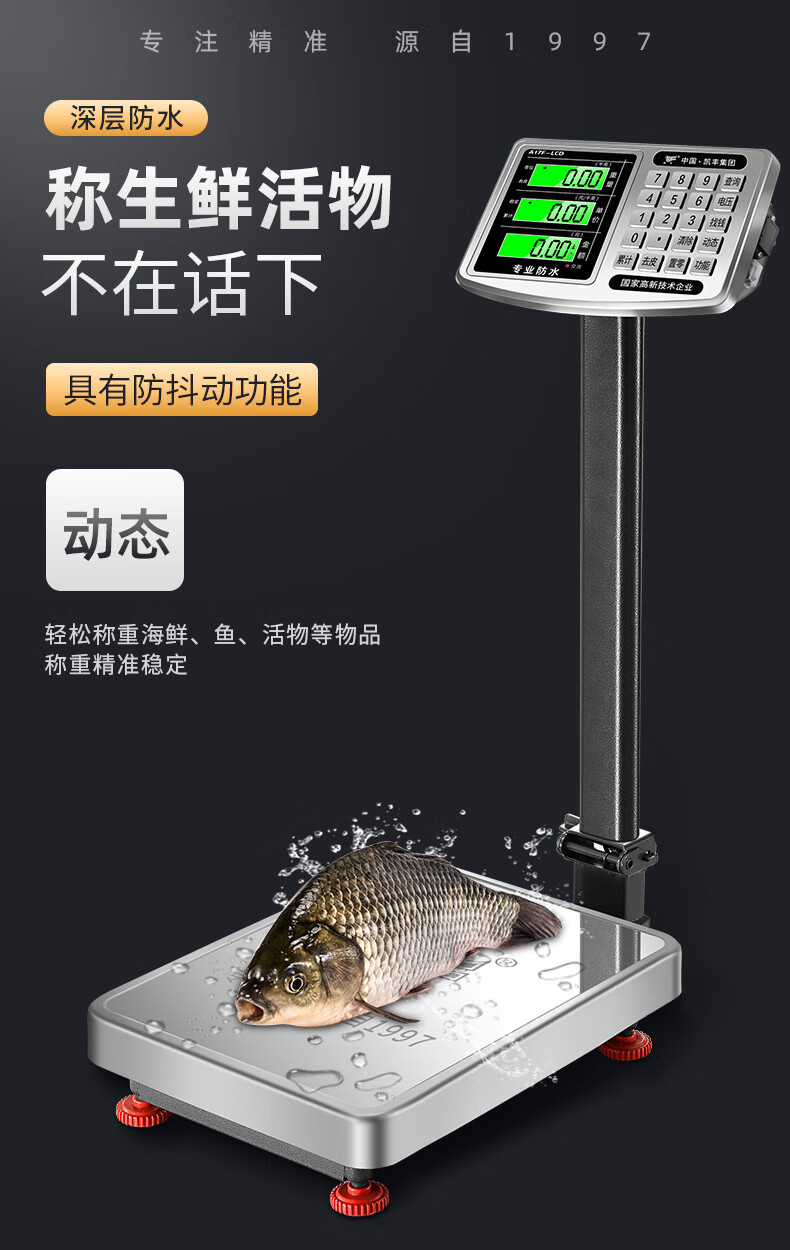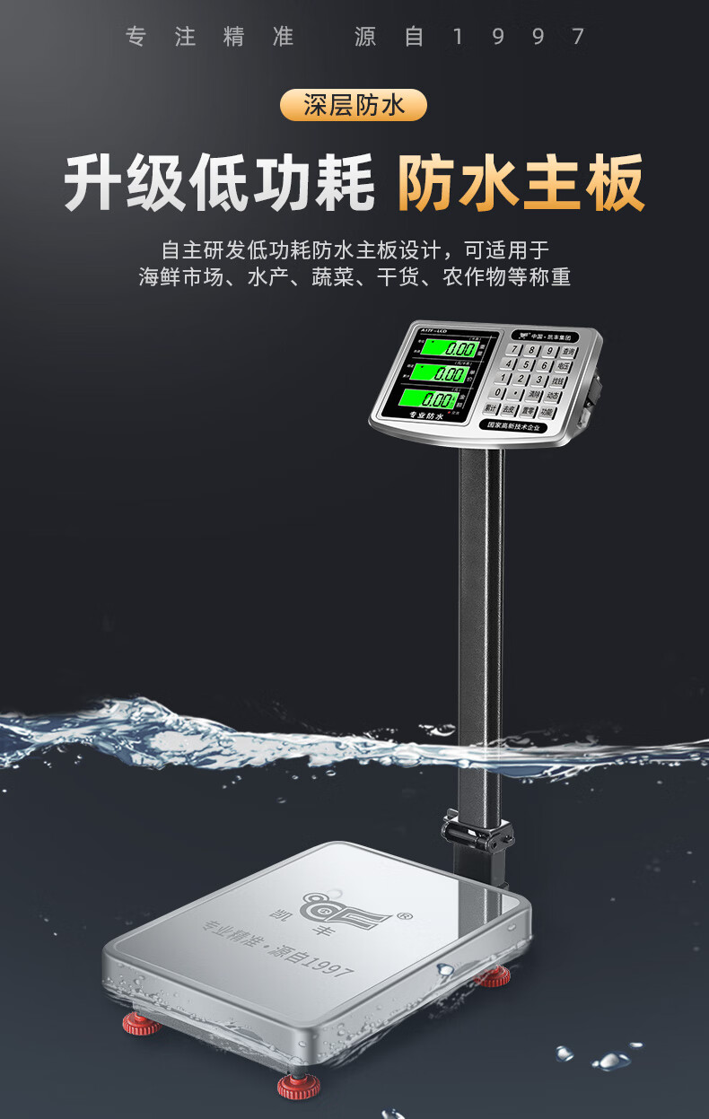Kaifeng Electronic Scale Commercial Small Platform Scale 100kg150kg High-precision Weighing Electronic Scale Stainless Steel Waterproof Scale Store Manager Black Letter 32*42 Foldable Waterproof_ 150kg 10g