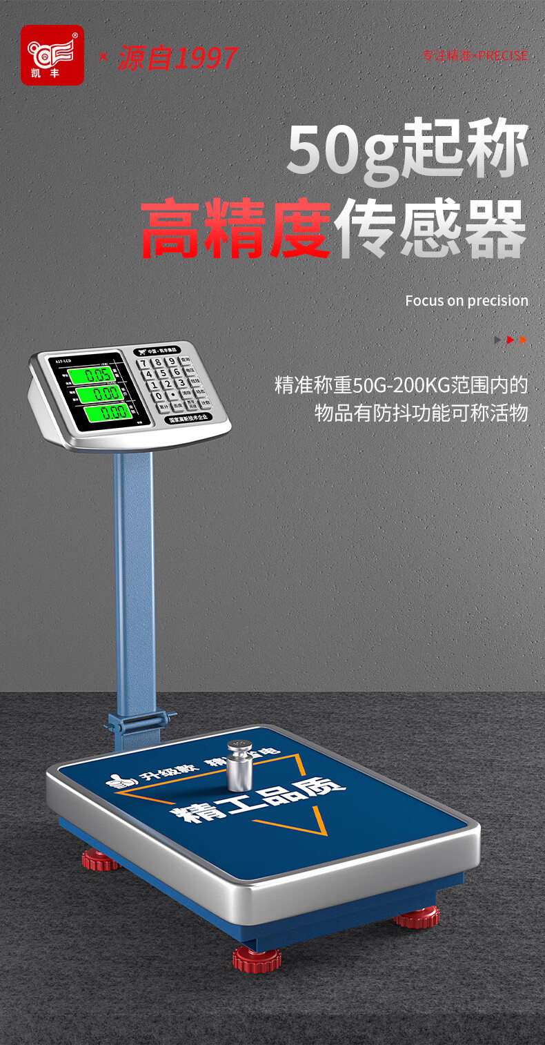 Kaifeng electronic scale commercial small bench scale 100kg 150kg accurate weighing industrial 300kg 200 pound scale extra thick bold red letters 32*42 installation free - 150kg 20g