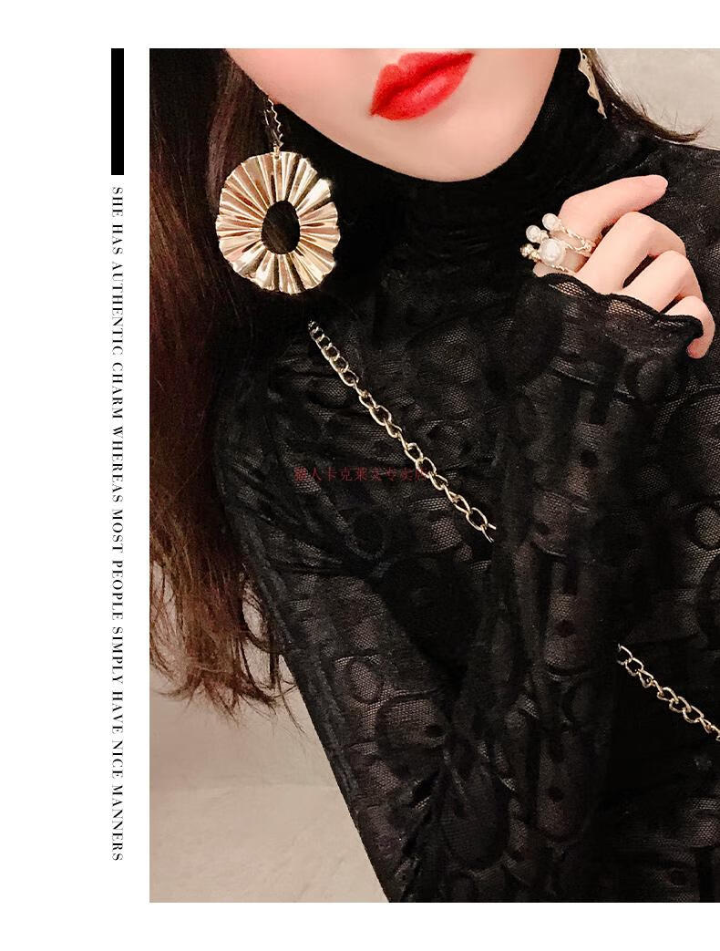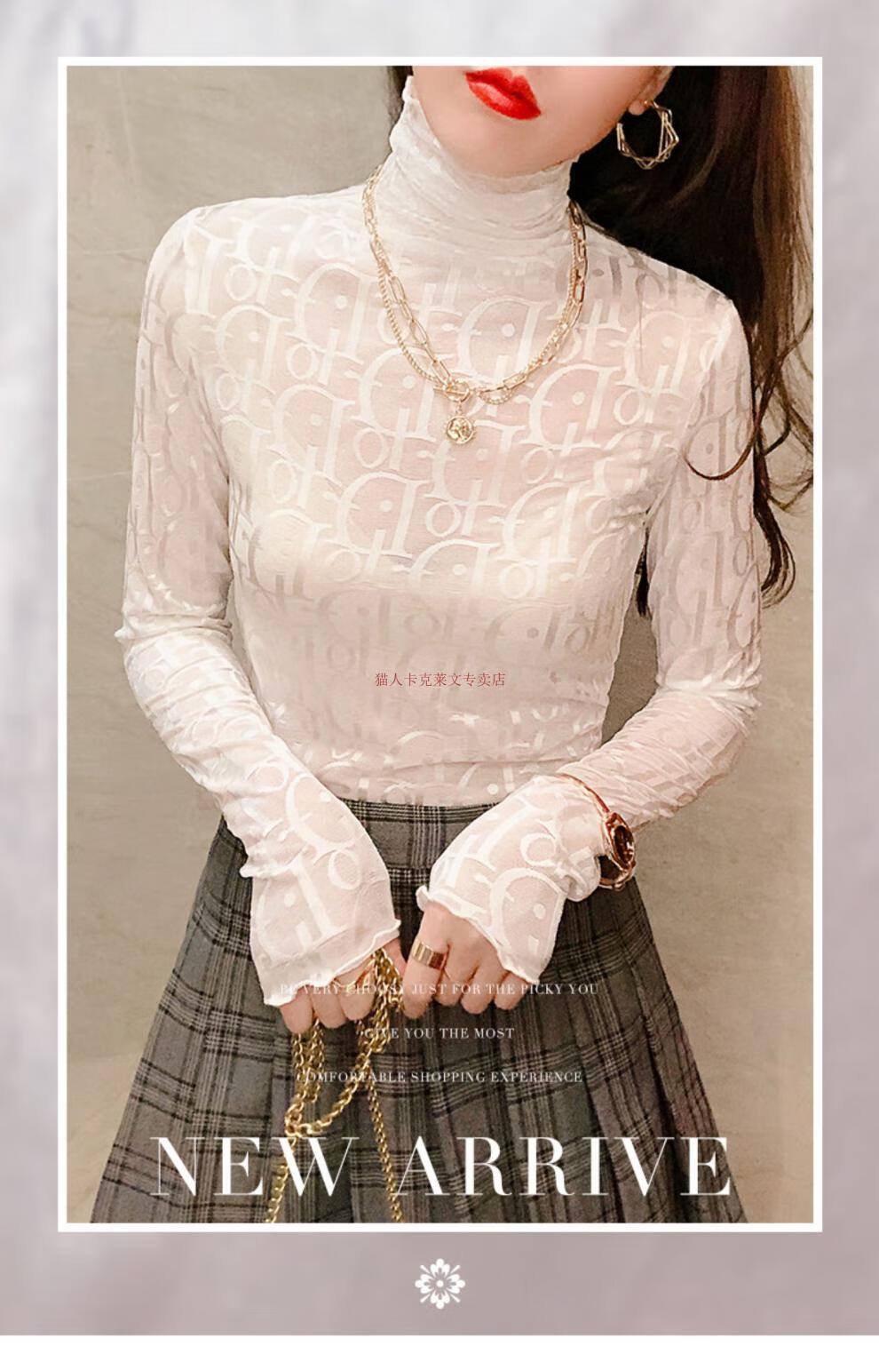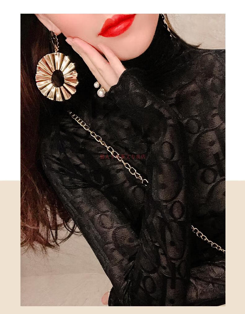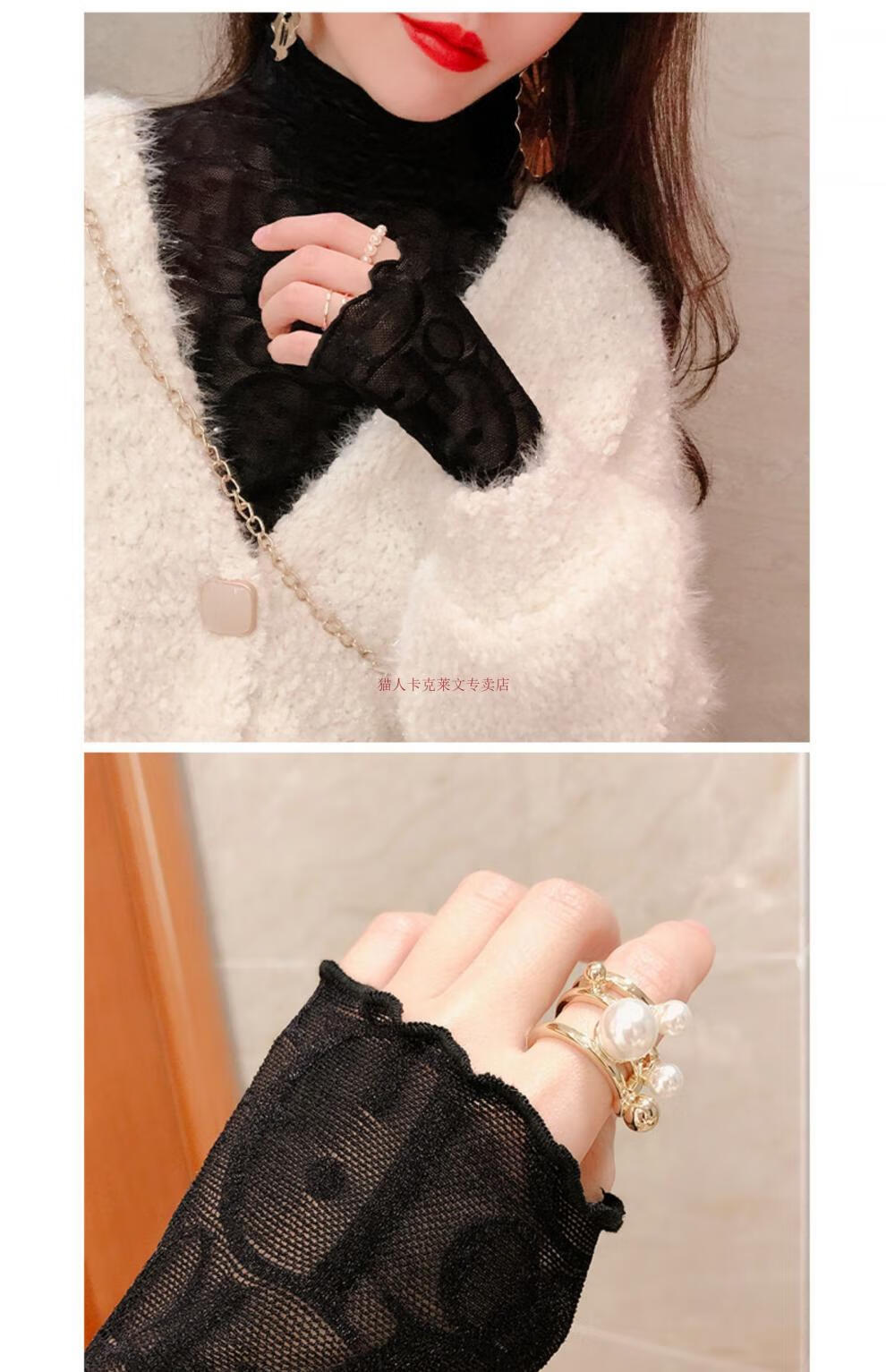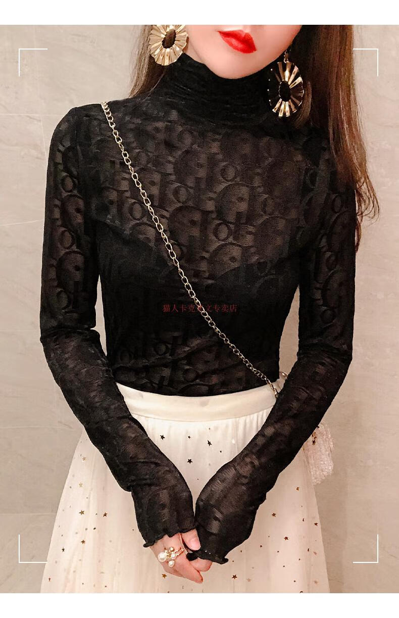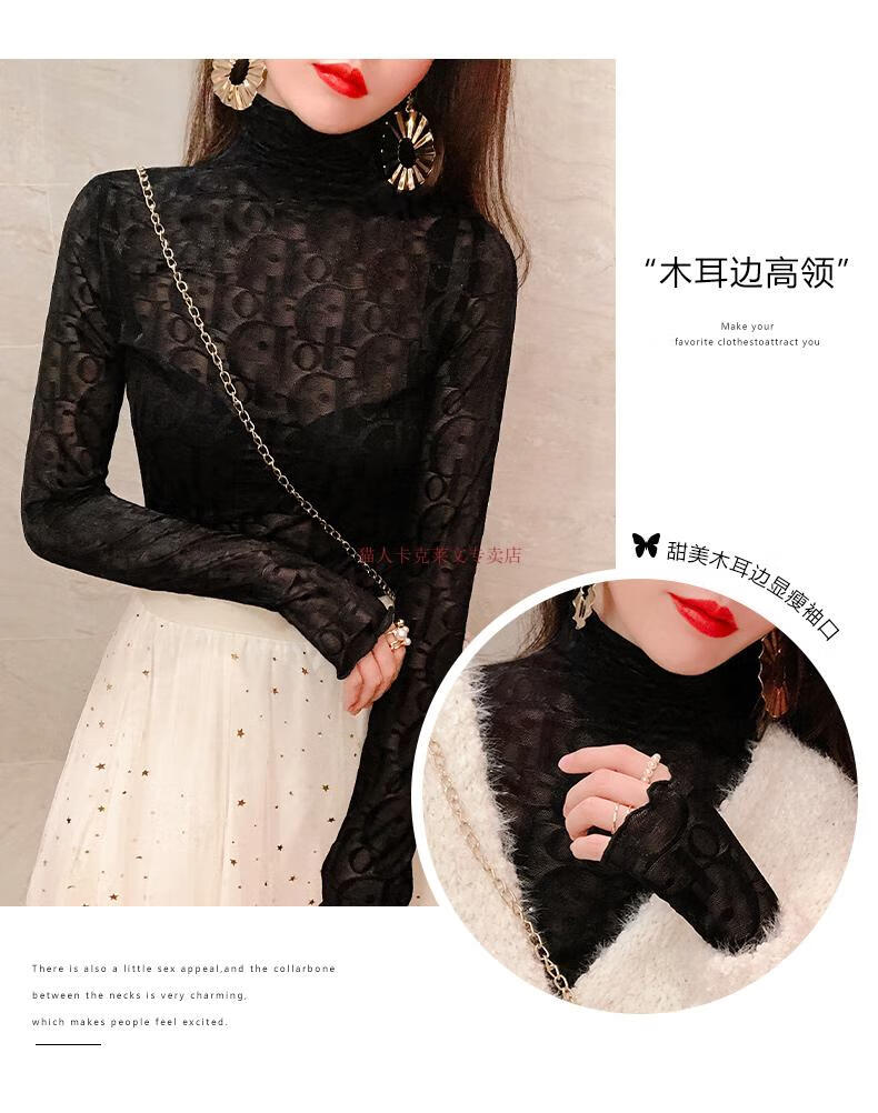 Xia Dian Suding Queen (SE.PSTP) high-neck mesh bottoming shirt for women, autumn and winter style long-sleeved sweater with velvet thickened lace warm fashionable top, white velvet S