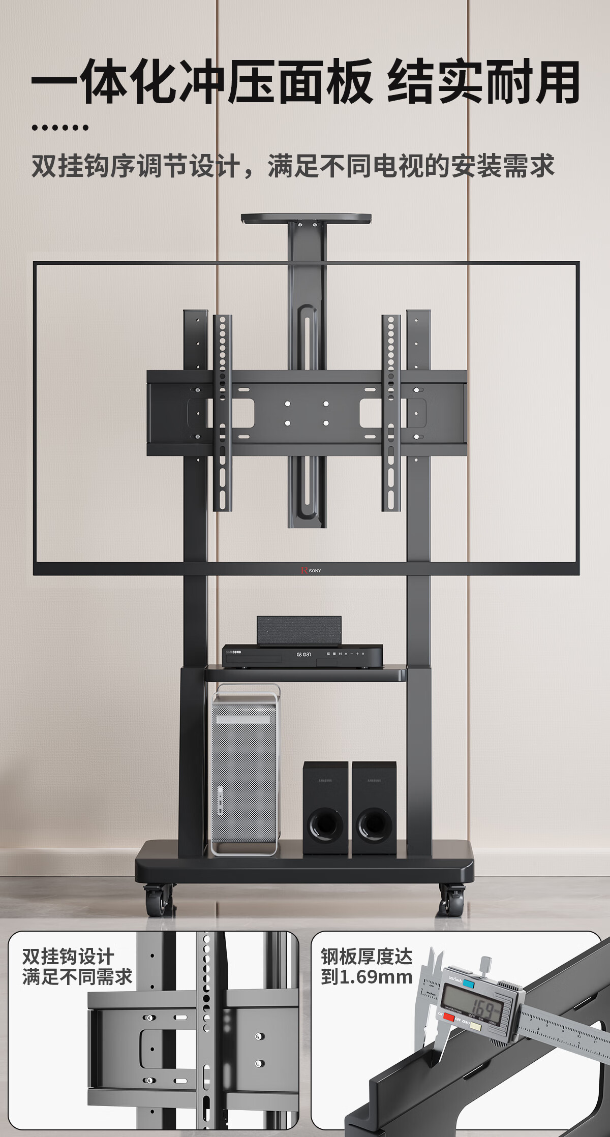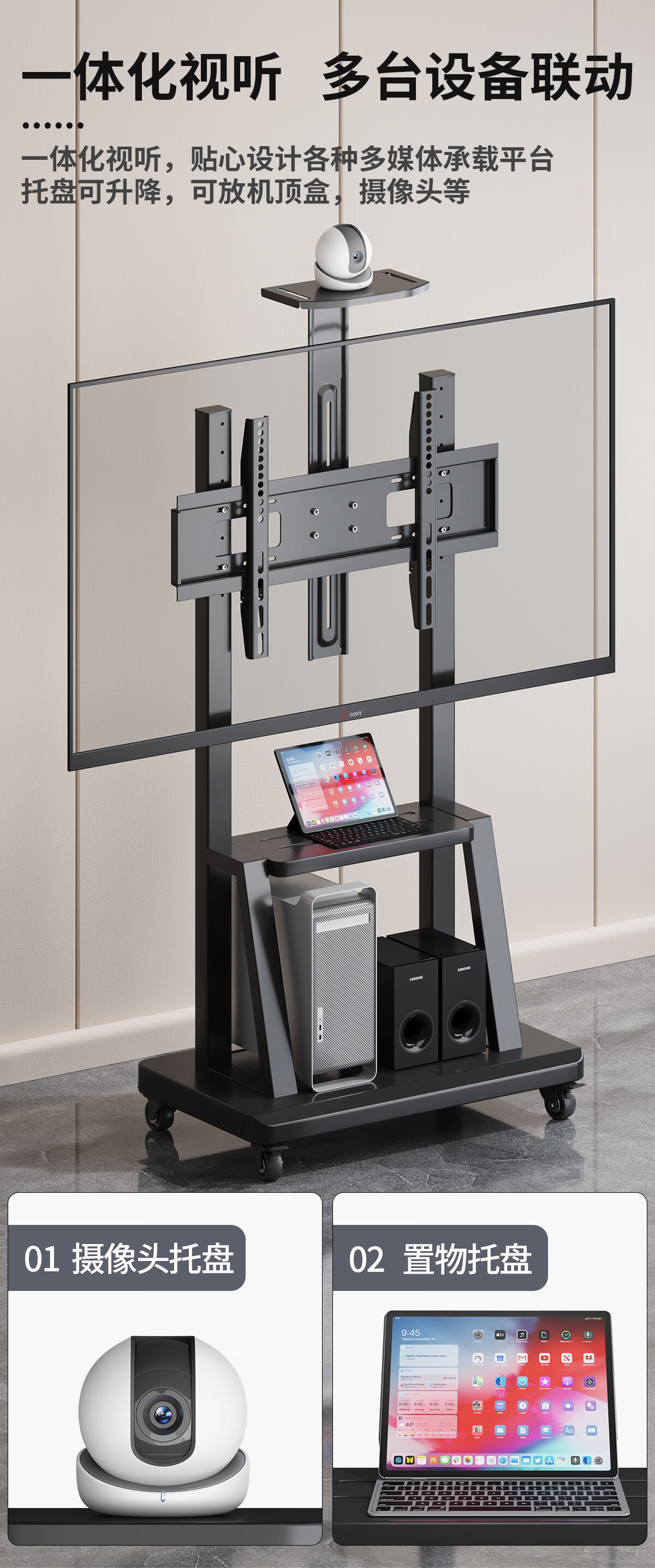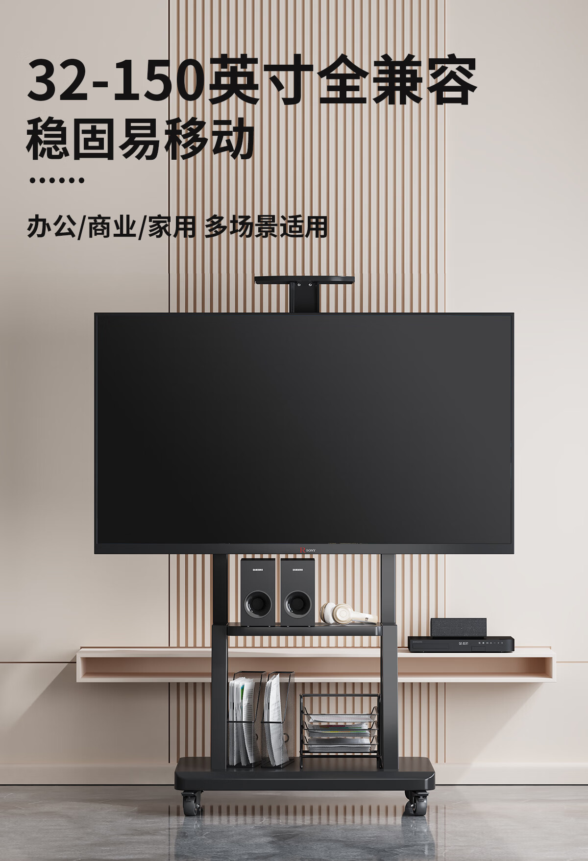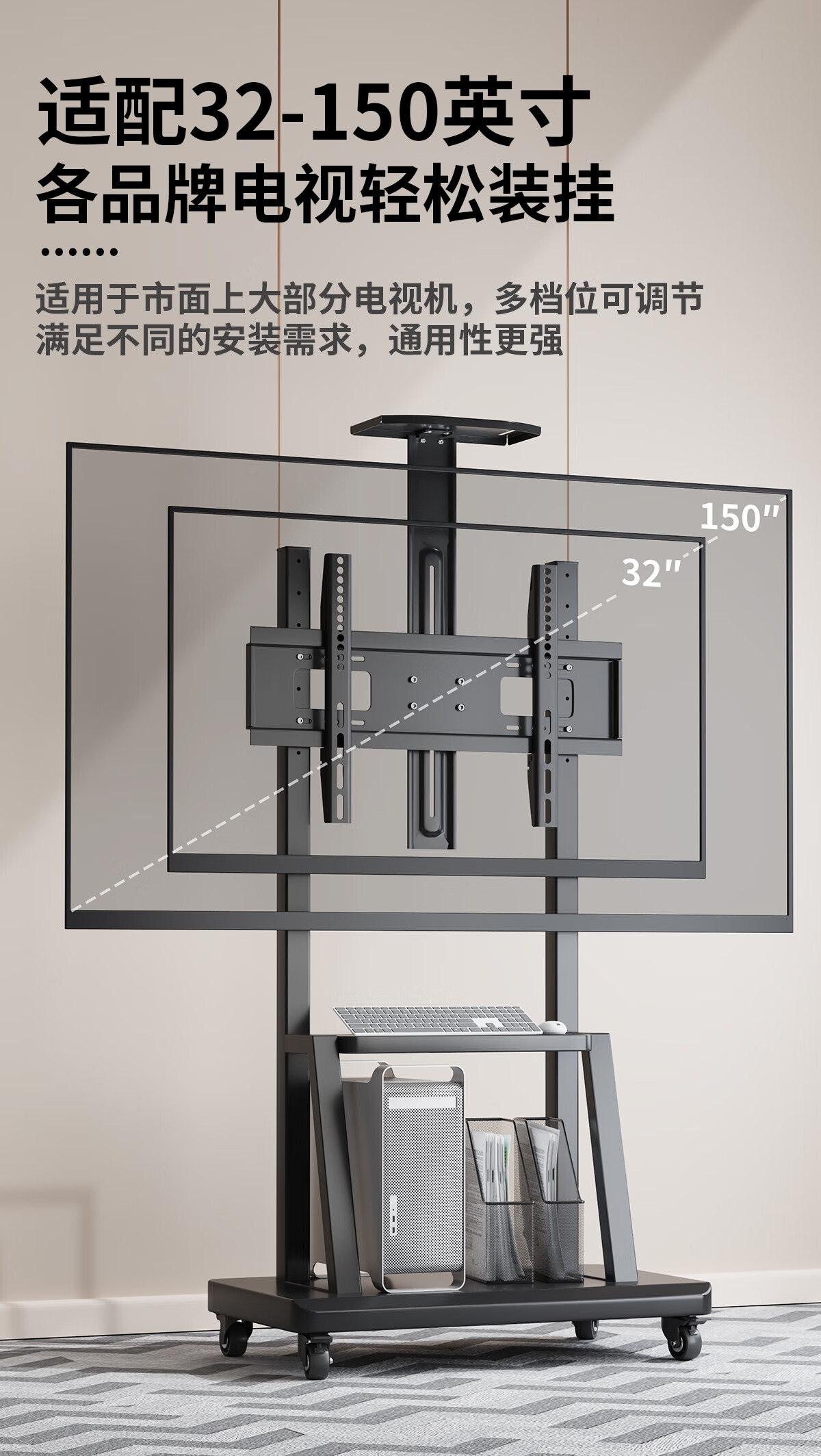 Xingkaishi mobile TV bracket (32-150 inches) universal floor-standing TV hanger TV cart video conferencing live display screen mobile cart floor-standing TV bracket 40-80 inches load-bearing upgrade upper and lower storage tray horizontal screen installation