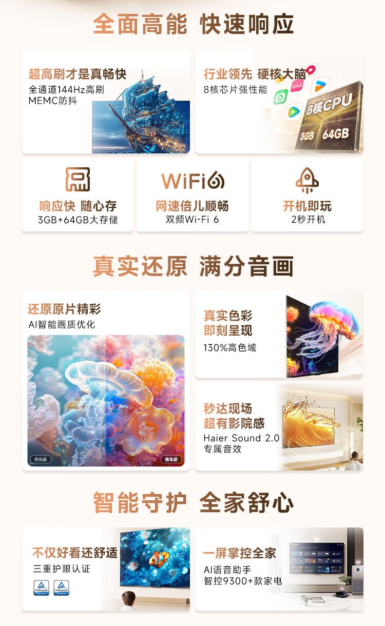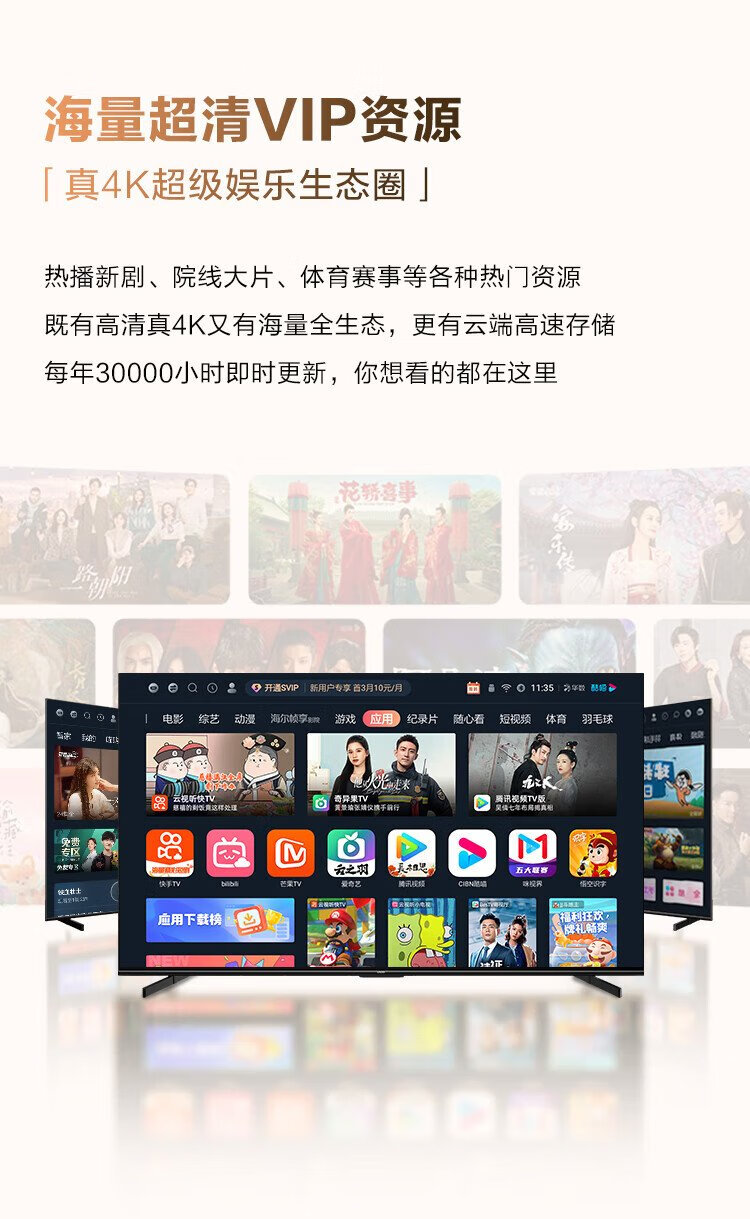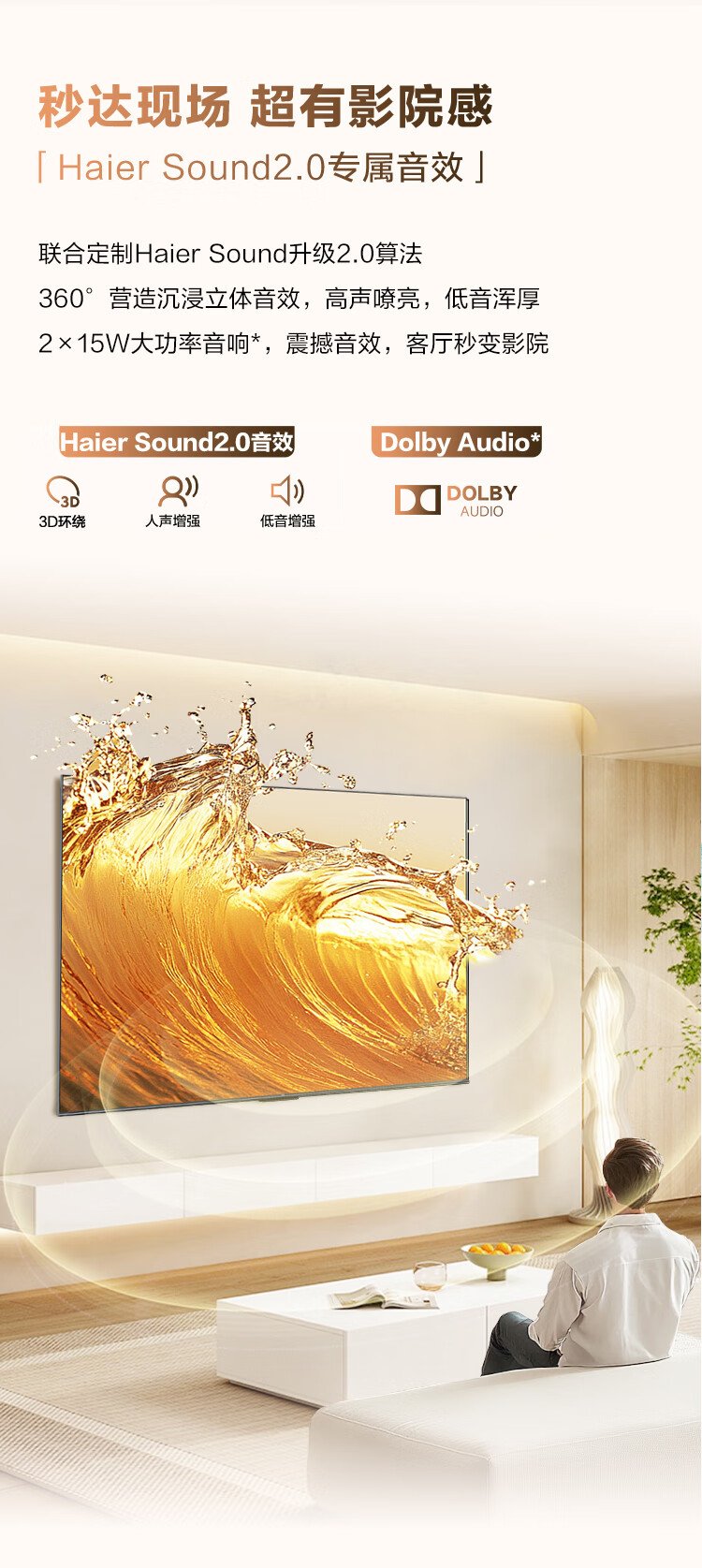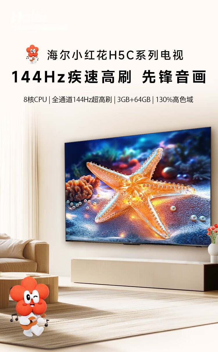 Haier TV 85/75/65/55-inch home H5C state-subsidized smart high-definition 4K flat-panel smart screen 144HZ color TV ultra-thin eye protection trade-in first-class energy efficiency 75-inch new product 3+64G memory 8-core CPU Consult customer service to enjoy discounts